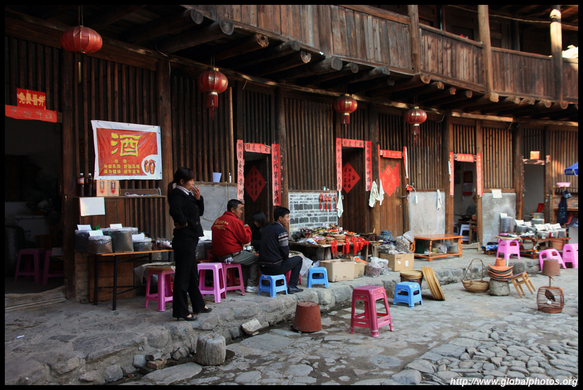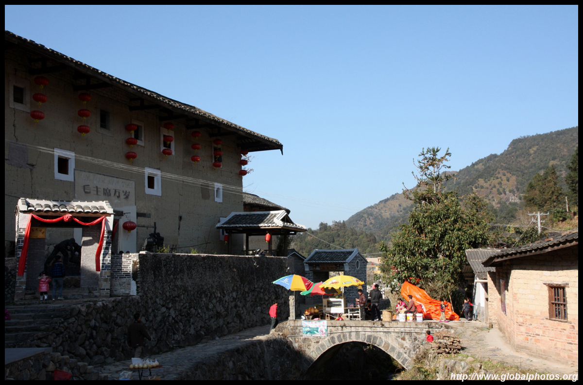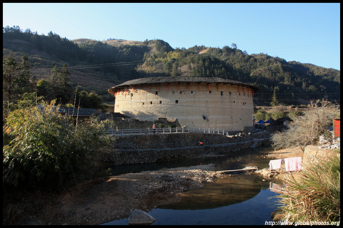 A short ride away from the Tianloukeng Tulou Cluster is Taxiacun, a small village with a distinct tulou set against a river.