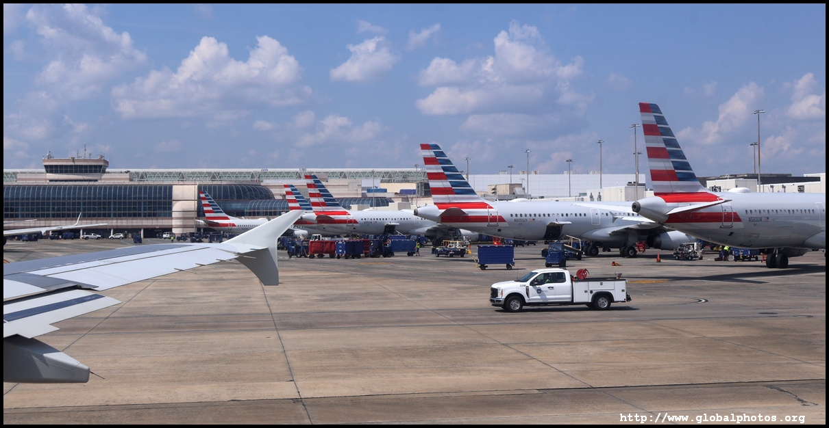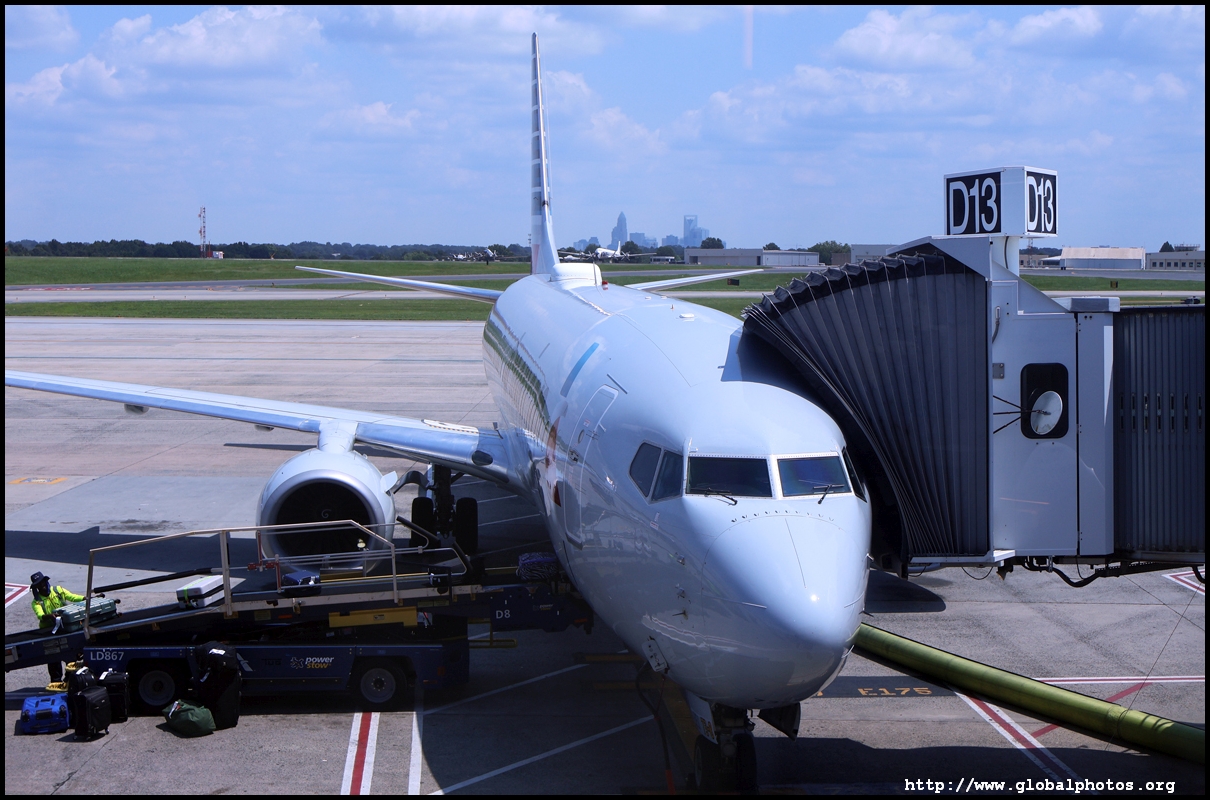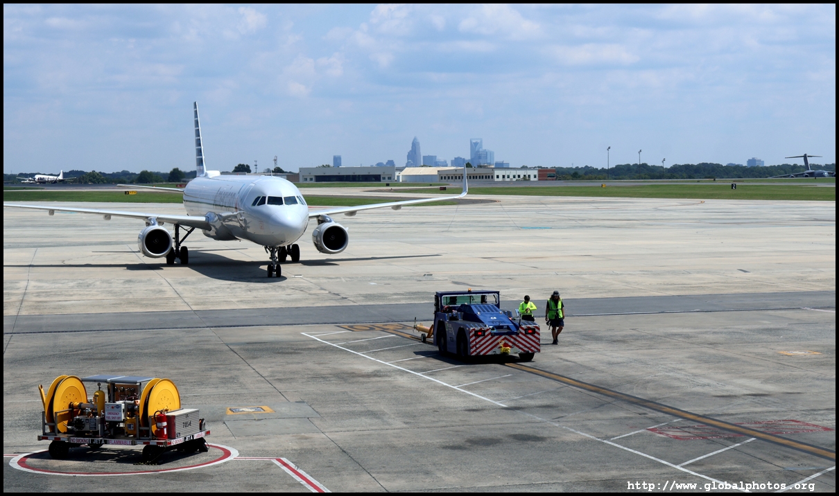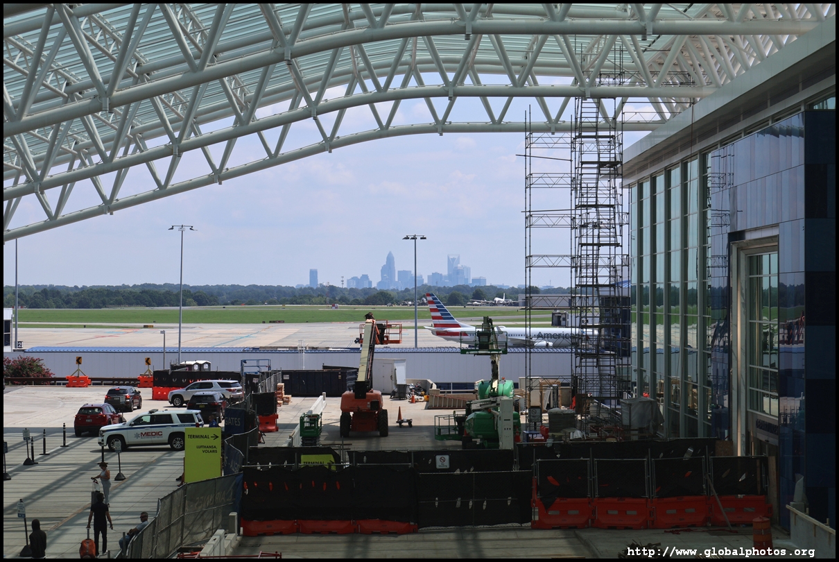 At the end of the D pier, the windows opened up nicely and I could get another grand view of Charlotte's skyline with a plane in front.