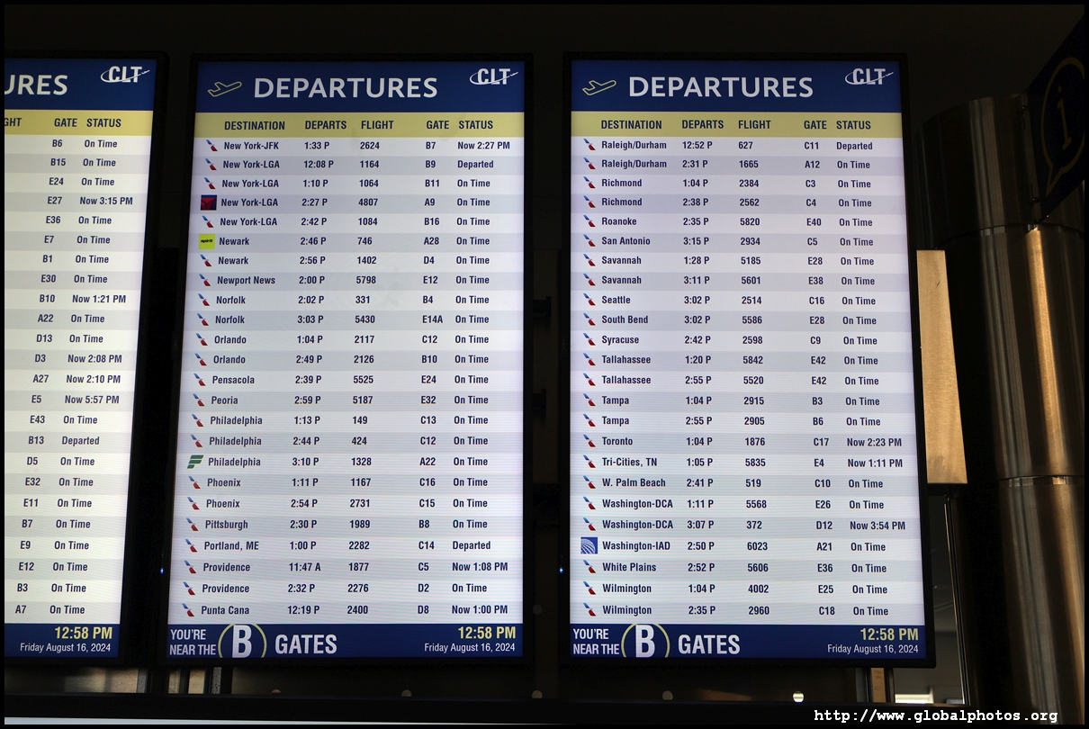 Returning back to the terminal, I monitored the security lines on the website and decided to use checkpoint 1 security, which seems to always show a much faster journey. This part of the terminal serves non-AA airlines, and given Charlotte is a dominant AA hub, maybe that's why this section is quieter. Security was quick and I emerged air-side in no time. It was quite crowded but at least there are plenty of shops and restaurants around. You won't go hungry here. The airport is divided into various piers which are assigned letters. I had a lot of time left so I walked around the different piers. The food areas were not too packed but the gates were very busy with insufficient seating areas to manage the many narrowbody flights. With low ceilings and narrow corridors, it felt quite claustrophobic here and the Friday lunch-time rush didn't help. I thought Charlotte was a relatively small city but post-research revealed its airport was even busier than Newark in 2023! Arriving at my gate at the end of the C pier, there was an announcement that the aircraft was being sent from the maintenance area and should arrive by 2pm. However, that didn't materialize and at 2:01pm, I got yet another email about the departure time pushing to 2:50pm. 15 minutes later, they sent us to another gate on the other side of the pier. Our original departure time was 1:04pm. Spotting is a bit boring here with almost 100% American planes.