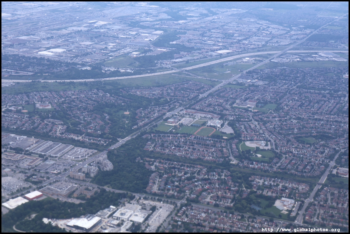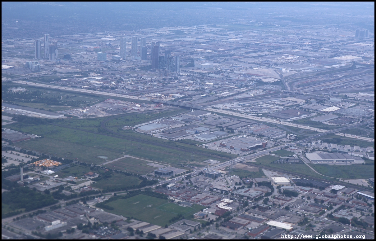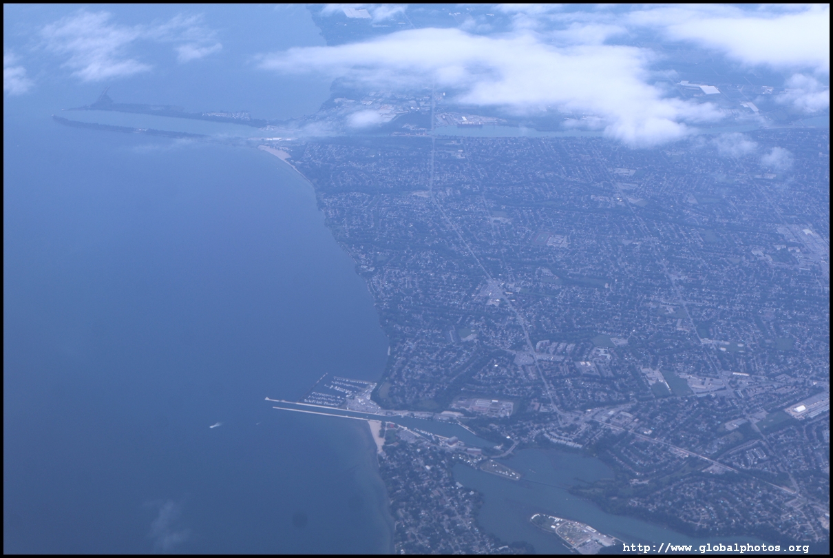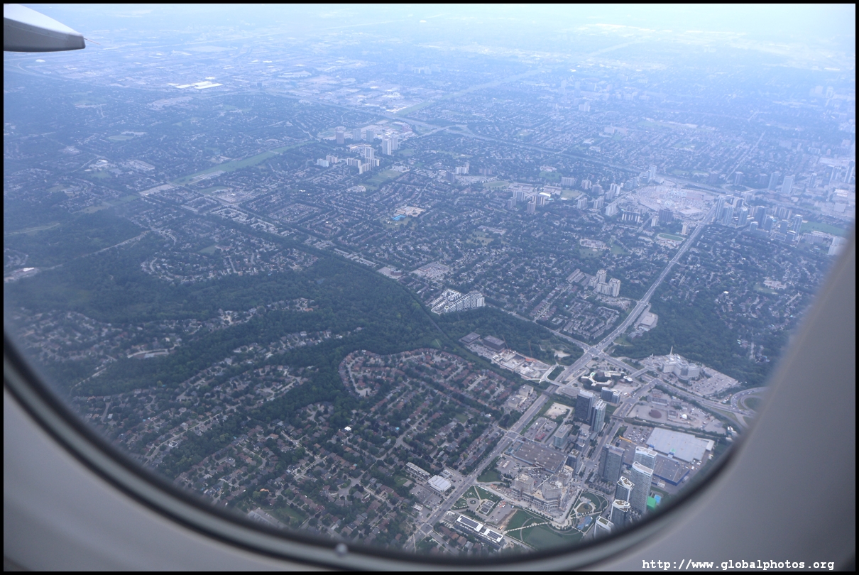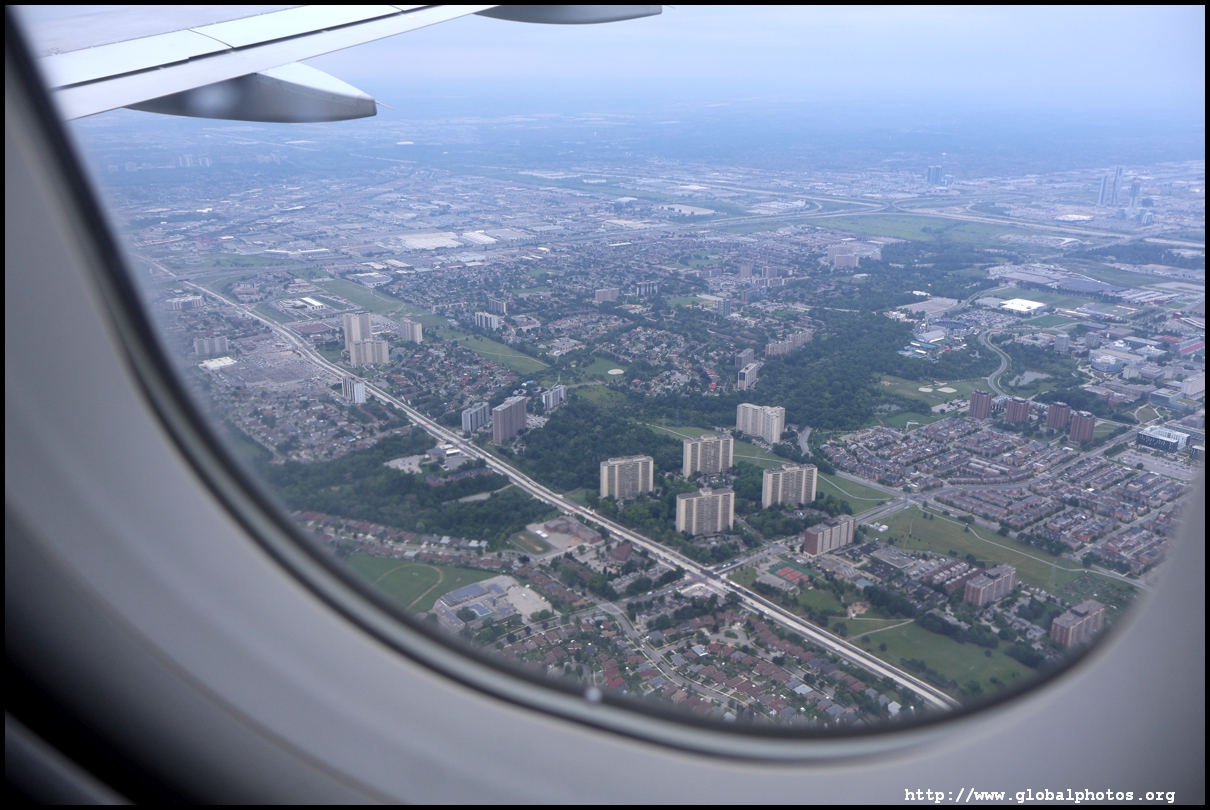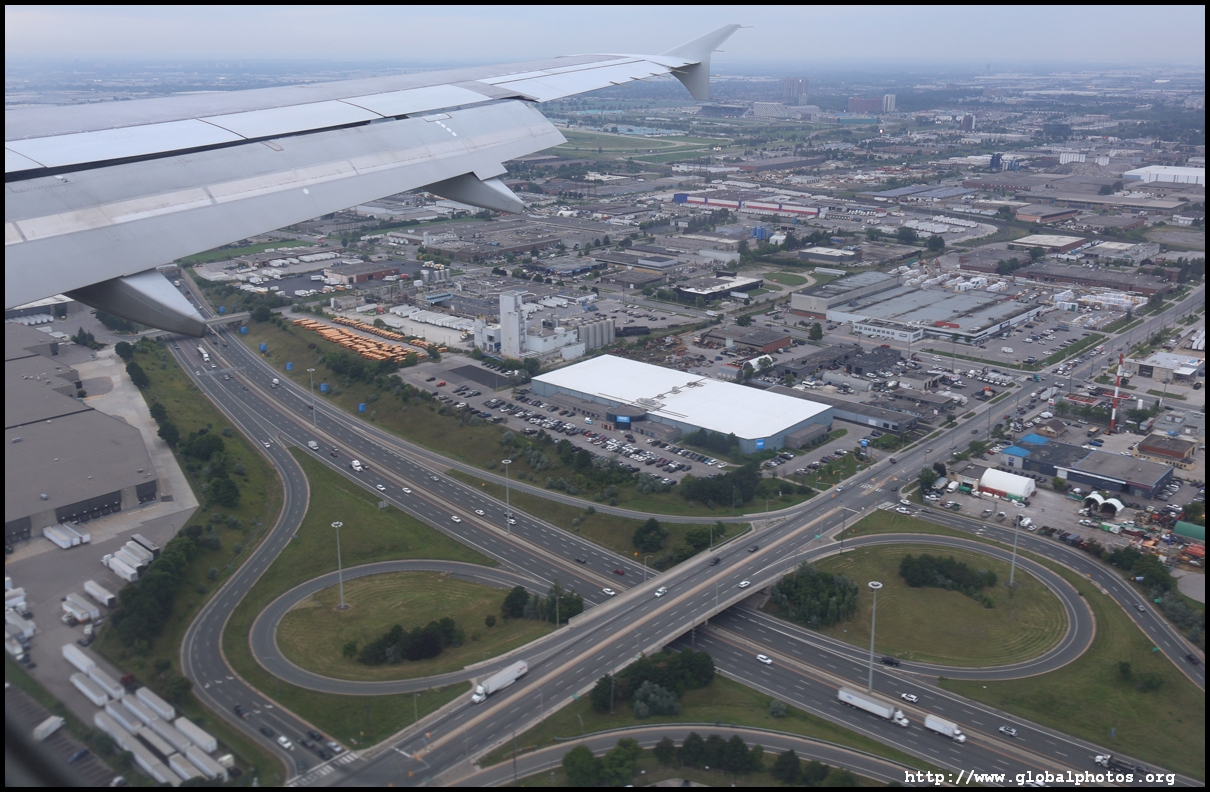 The crew came around with biscuits and a free drink and the flight passed by uneventfully. There were some breaks in the clouds as we started our descent and I could see the Welland Canal and its Lake Ontario exit.