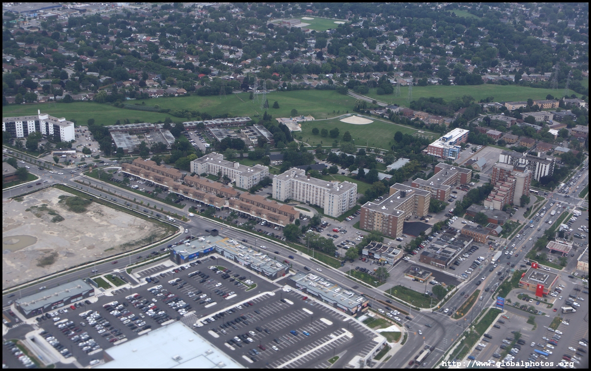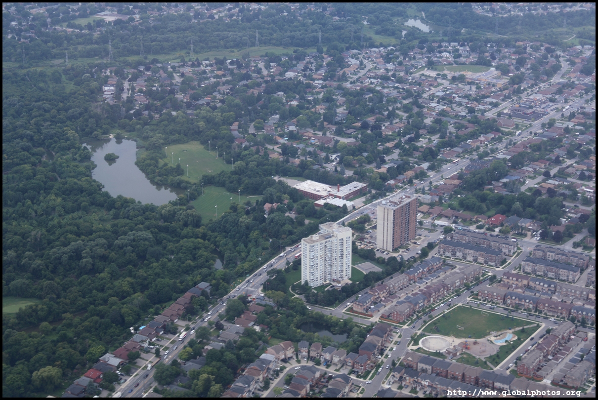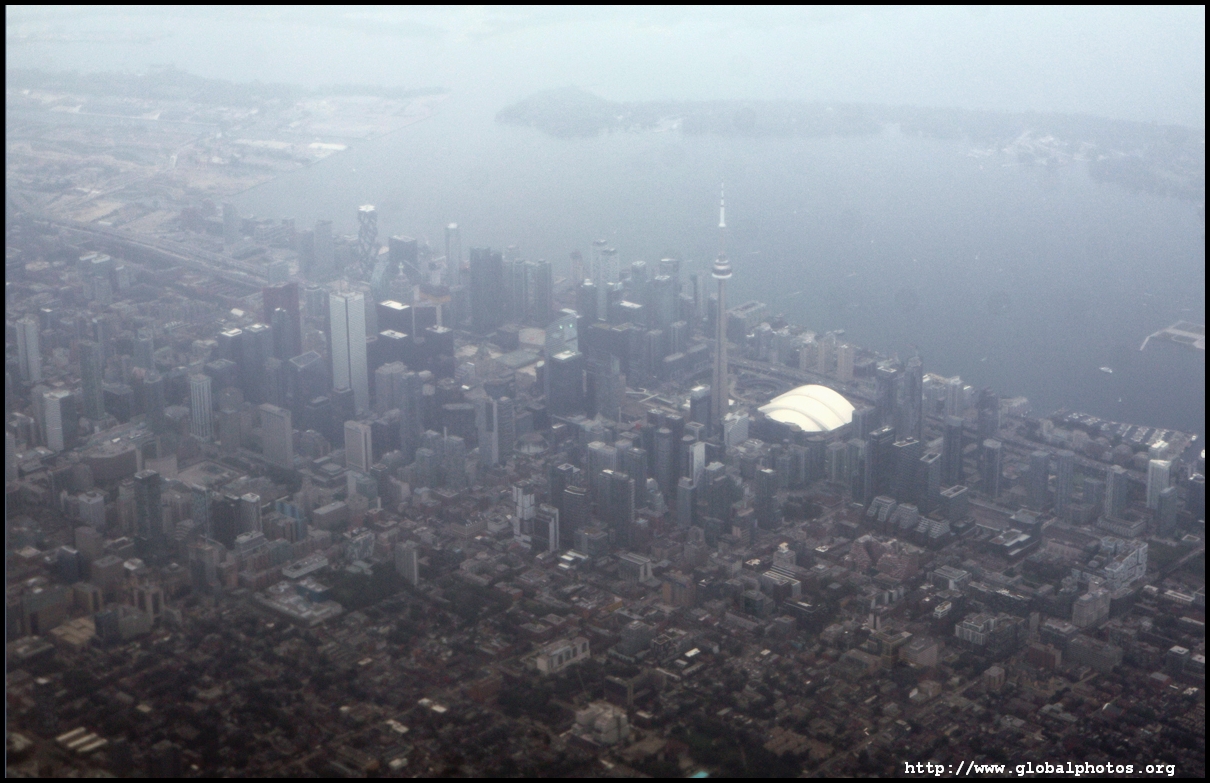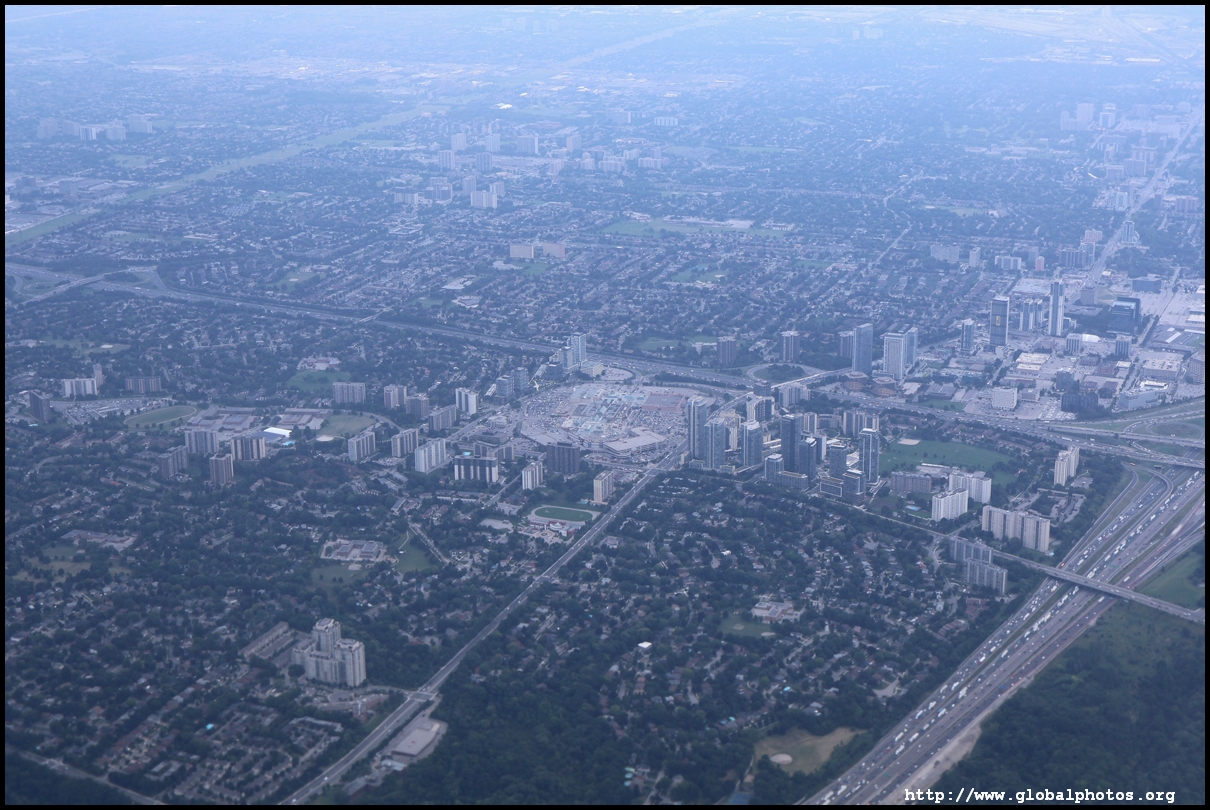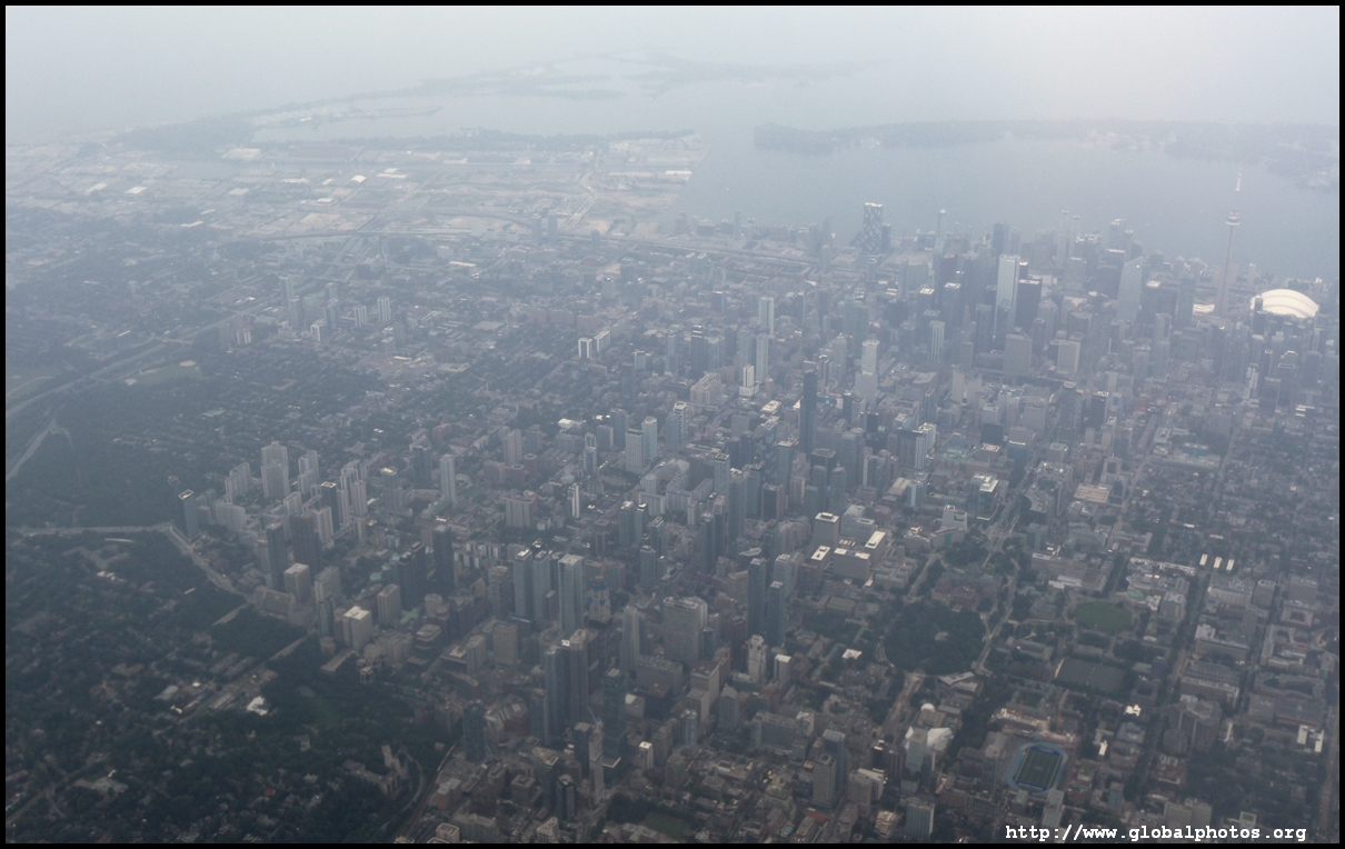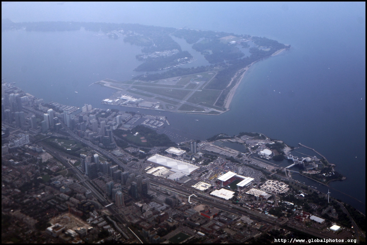 The crew came around with biscuits and a free drink and the flight passed by uneventfully. There were some breaks in the clouds as we started our descent and I could see the Welland Canal and its Lake Ontario exit.