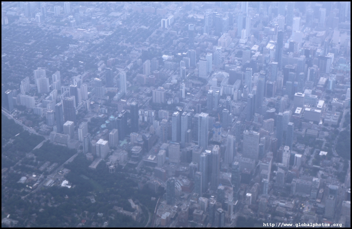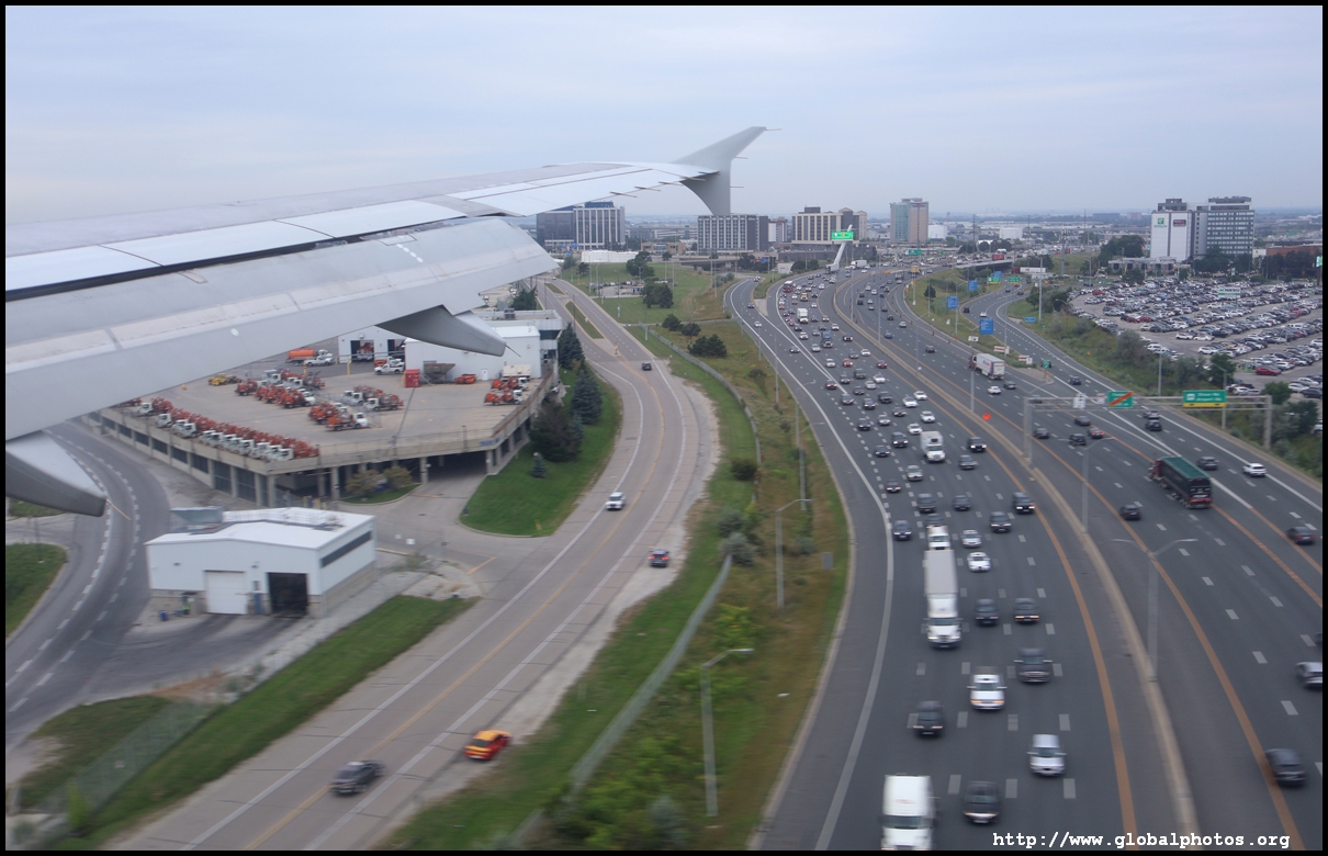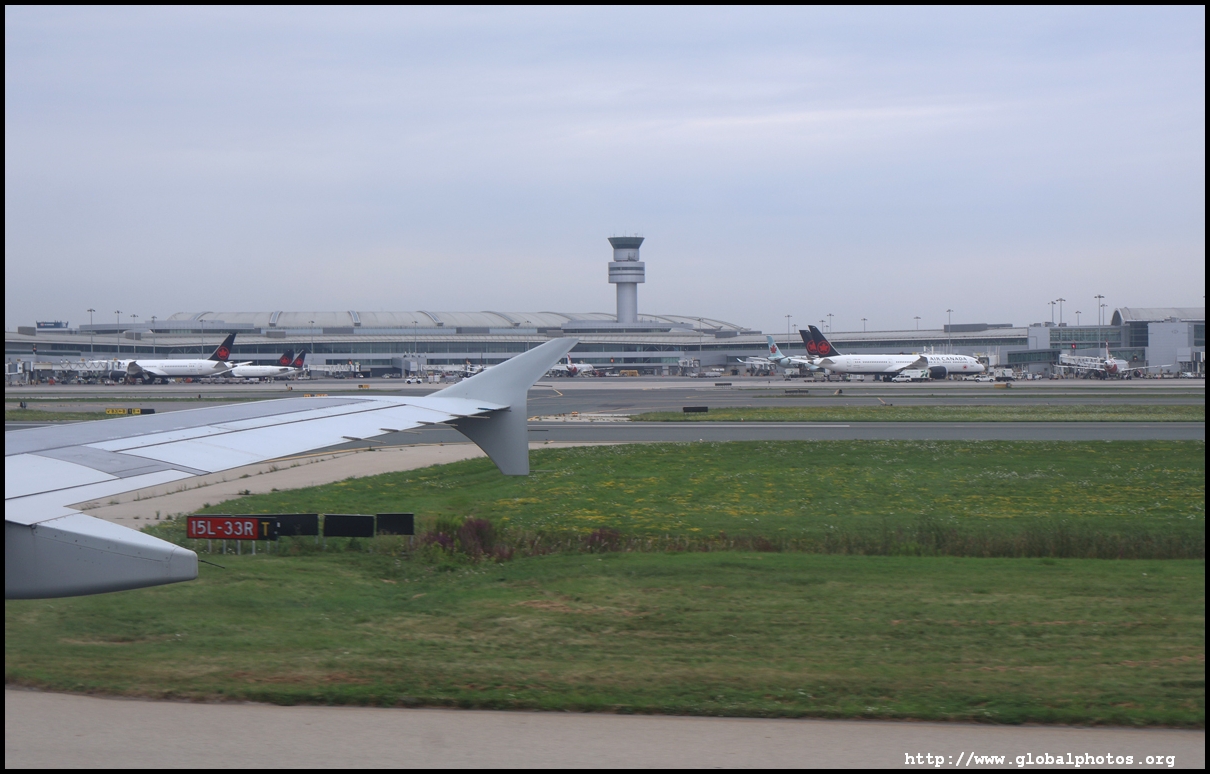 Soon, we turned and passed next to downtown Toronto, but there were some clouds in the way. We looped and then headed west to land, touching down at 5:01pm and reaching a stop 10 minutes later. The crew took advantage and actively sold their new credit card with a big mileage bonus enough to redeem a good set of longer flights and no check-in baggage fees.