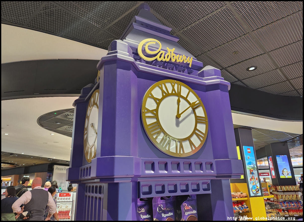 Arriving a little less than 2 hours before departure, it was a fairly painless process to print out my boarding pass and luggage tag at the kiosk, then off to the bag drop. Heathrow's bag tags are well-designed so I just need to fold it and it'll stick automatically on the bulls-eye red dots in the back. There's no need to peel anything off to stick and find a garbage bin to throw out the extra bits. I didn't have to wait in line for a kiosk and barely had to for the bag drop machine. Heading upstairs, there was a short wait for security but with the new machines where I didn't have to take out my electronics, processing was seamless. I emerged into a very busy shopping mall with lots of fancy upscale retailers and restaurants, including a conveyer belt sushi restaurant.