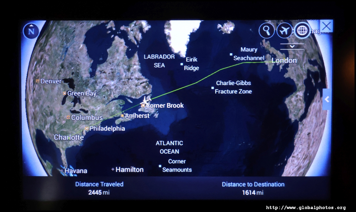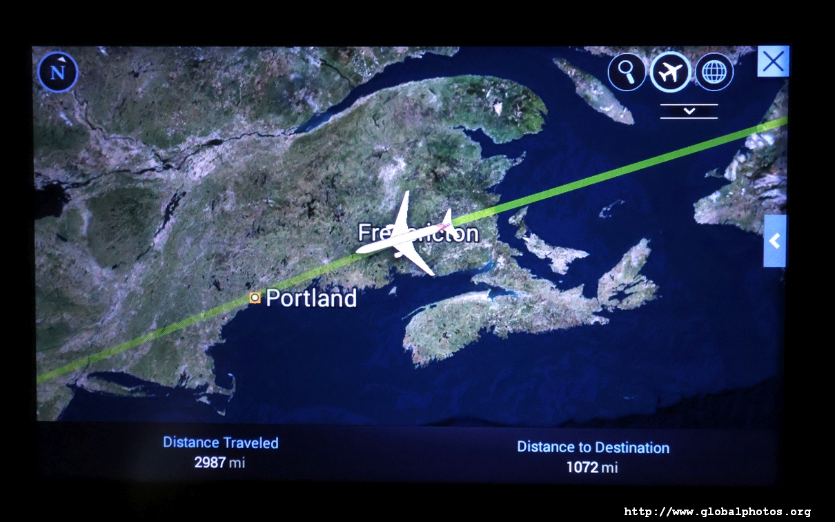 About 5 hours in, we reached Newfoundland and I opened my shade every now and then to check out our progress. The weather was quite good over the Maritimes.
