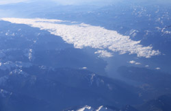 It was a windy day in Toronto and there were initially expectations of flurries in the area. The strong wind was very noticeable during the initial ascent although things calmed down very quickly once we went above the low cloud cover. It would be cloudy until we neared the Rockies.