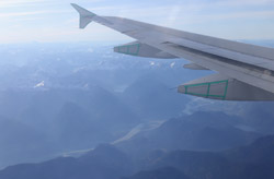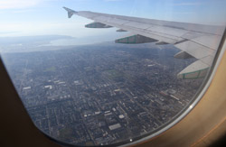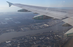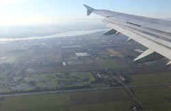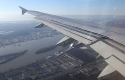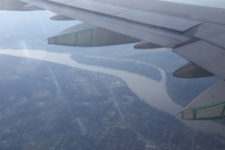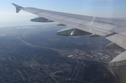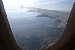 The flight eventually filled up and some passengers had difficulty finding space above the seats. With checked baggage costing an arm and a leg, this seems to be an increasingly problematic situation that could result in departure delays. Luckily, we pushed back a few minutes early and made a quick run for take-off towards the west.