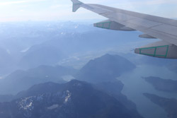 With an hour to go, we crossed the Rockies, a spectacular sight with some snow cover already. Every time I fly across North America, I always try to secure a window seat to enjoy the view. The weather continued to be lovely as we descended into Vancouver but the best views of the city were from the right windows. I could only see the suburban sprawl.