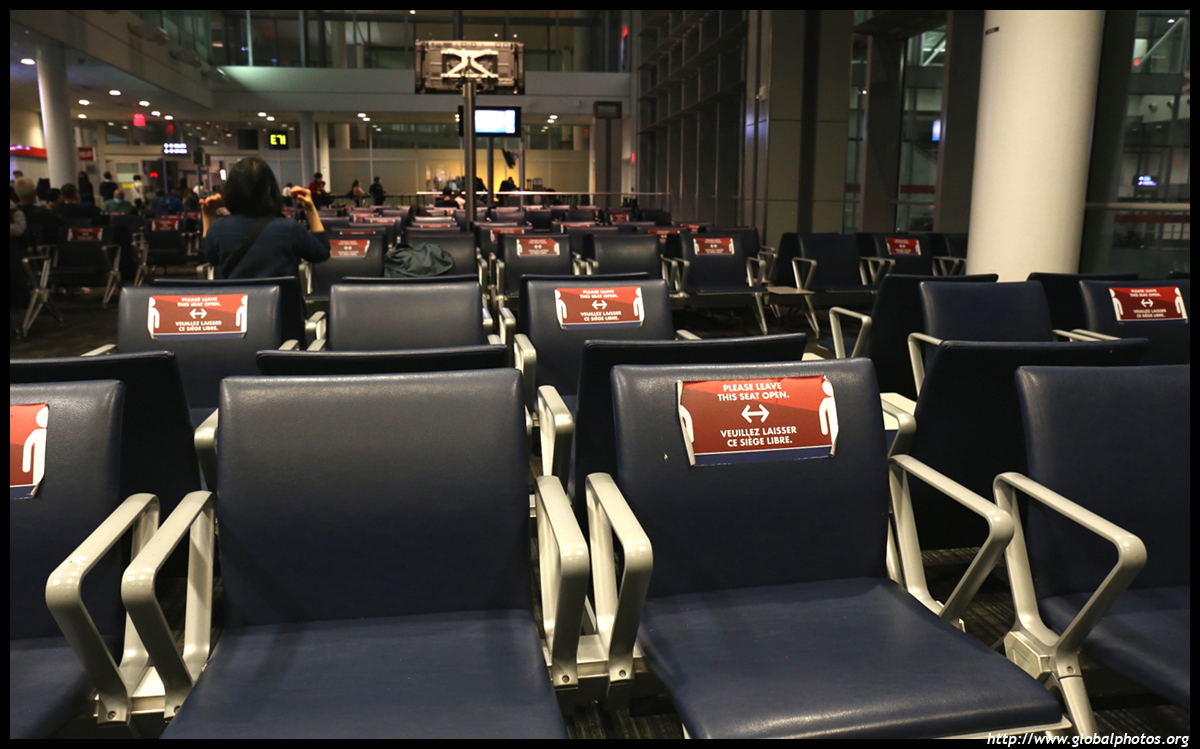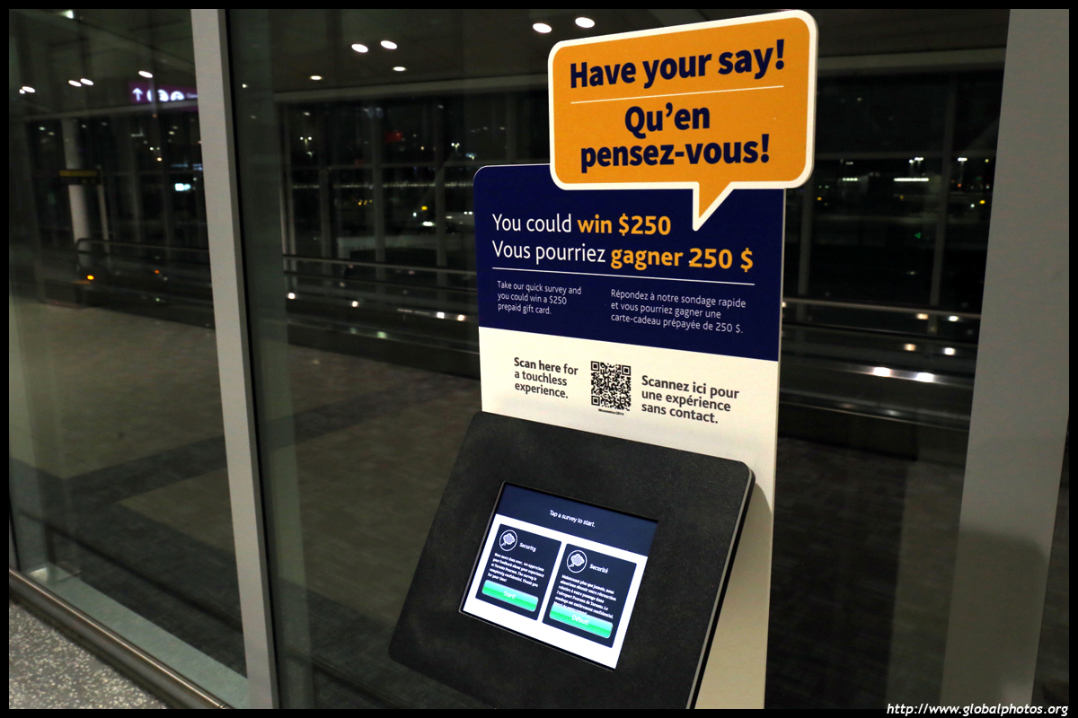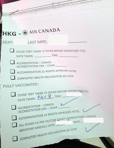 Staff were meticulous to check my documents using a paper checklist and then proceed to check your bag in the old manual way. I was quite organized with my folder to speed up the process but there were older passengers who didn't know how to get the QR code so had to fumble with the airport wifi to get that going. I had heard some passengers actually input the details on arrival in Hong Kong but I suppose Air Canada is taking no chances after the Vancouver fiasco to require it for check-in.After sending my big suitcase off, I was directed to a 2nd line where my documents were checked again. There were 2 agents working there and the wait was shorter this time. By then, it was just an hour before departure and there were still a few people waiting in line to check in. I guess at this late hour, they don't need to enforce the 90 minute bag drop cut-off anymore. That agent told me the gate staff would take that completed checklist so not to lose it. It was stapled to my boarding pass. International departures now use the domestic security gate (follow the D gate entrance). There was no line there and I was air-side quickly. Then it was a long, long walk across the connection doors to the international pier, with very limited escalators to help break that journey.