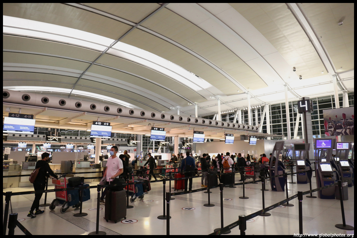 As with my inbound flight, flying during the pandemic is unpredictable. My return flight back to Hong Kong got cancelled and changed multiple times, causing a lot of stress and phone calls to rebook my itinerary. The complications arise from the Hong Kong side, where the government's COVID-zero strategy means one of the strictest quarantines in the world even for fully-vaccinated passengers. Foreigners are still pretty much shut out while residents coming in are subject to up to 21 days quarantine in a designated hotel. Contrast to Canada, which has opened its borders with no quarantine needed for fully-vaccinated visitors and citizens.There is a list of designated quarantine hotels that we can book, which range from a super-expensive 5 star hotel to cheap inns where a 14-night stay will likely end in a mental breakdown. There aren't too many choices for the middle range group, but luckily I was able to secure a room early on. But things will get chaotic as Air Canada changed my itinerary in the lead-up to my departure. I was originally booked on AC15 in early September, the direct flight from Toronto to Hong Kong. Air Canada then added a stop en route in Seoul for a crew change to avoid the crew from staying in Hong Kong and being tested for COVID. However, that entire route was cancelled and I was rerouted through Vancouver on AC7 by late September, resulting in 1 day's delay. Luckily, my quarantine hotel had availability so that was an easy change. I also chose a longer transit in Vancouver so I could leave the airport and dinner with my ex-colleague who recently relocated back to Canada. Things took a sudden turn for the worse in mid-October when there were 2 passengers with issues on AC7 on arrival in Hong Kong. The official protocol was to suspend the entire route for 2 weeks from October 16-29, meaning my return would be cancelled. While this was blasted on the news and my friends were busy messaging me of the news, Air Canada didn't cancel my flight until the next week. In the meantime, I had researched alternative routings to see if I could proactively cancel and rebook, since cancellations are free anyway. AC15 was eventually re-opened for booking and I could redeem a seat a few days after my original AC7 flight. However, my quarantine hotel was out of availability by then and a few others in my budget range were also full. The first open date available was November 12th, so even though there were plenty of seats to redeem before that, I had to settle for November 11 to leave Canada. To enter Hong Kong, I have to produce a PCR test, proof of accredition for that laboratory, hotel booking for my quarantine period, QR code from my health declaration, and vaccination record. Expecting a lot of paperwork to check at the airport, I set off early to reach Terminal 1 at 9:40pm, well ahead of the 12:20am departure time. Taking the escalators from the bus stop, I emerged at an empty domestic check-in section and attempted to use the kiosk to print my boarding pass and bag tag. An error came up so I then searched for the international check-in counter. International check-in was in row 4 and there was a much bigger crowd around. Staff directed passengers to separate sections for the 2 late night flights to Asia - Hong Kong and Shanghai. A long line snaked out of both, and it took an hour for me to get processed.