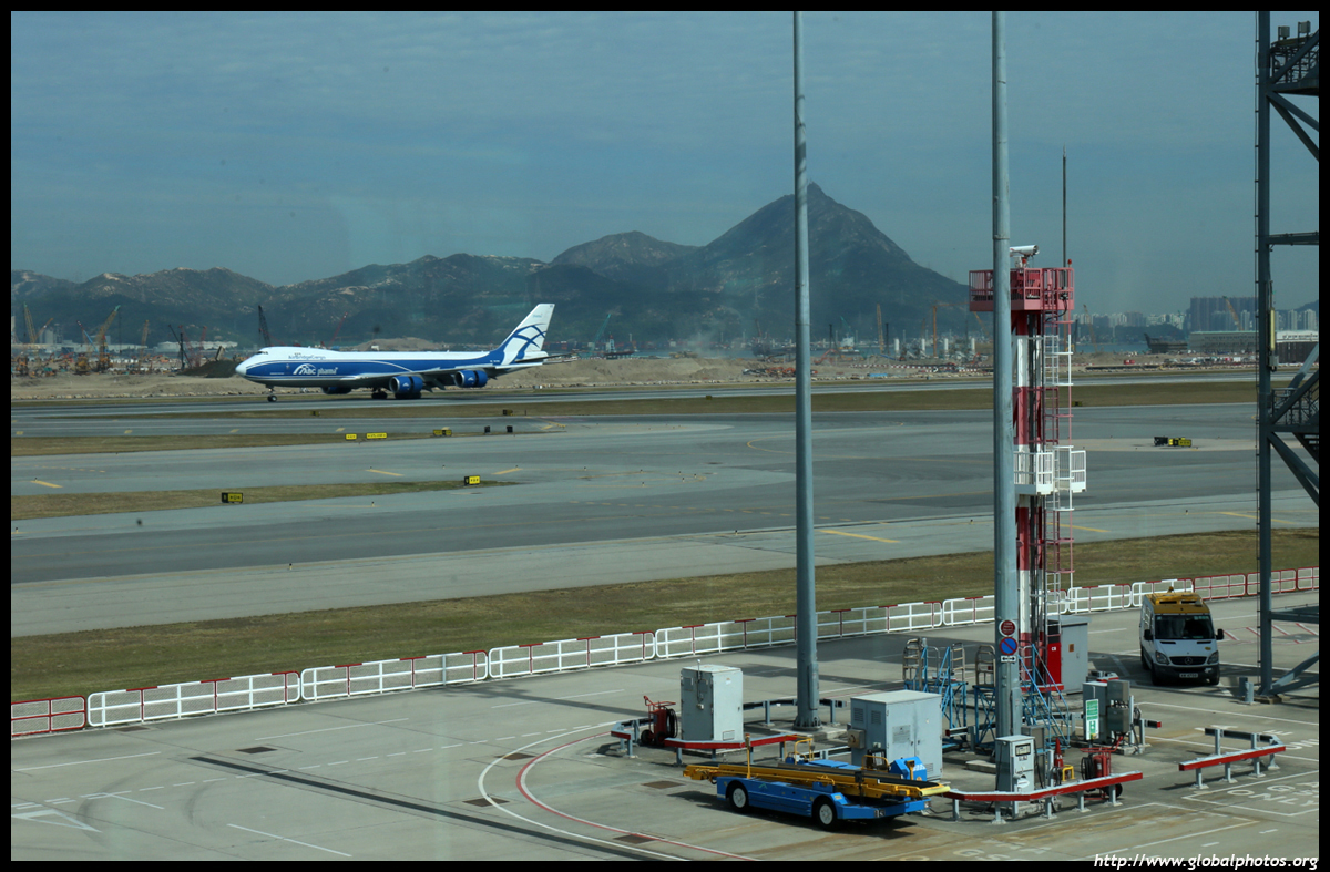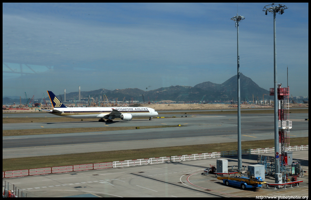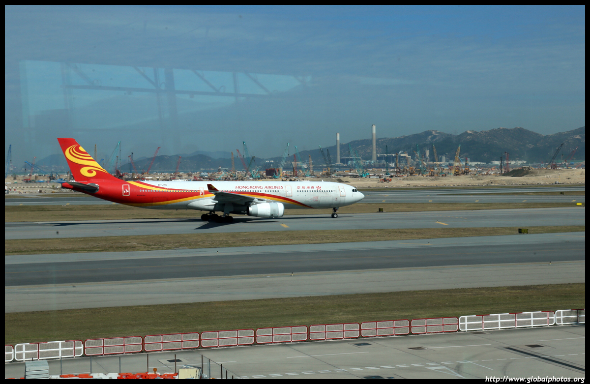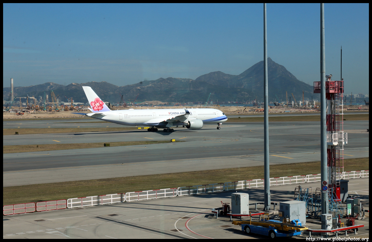 By now it was 9:45am, about an hour and a half since landing. I was happy I got a window seat that looked to the north runway and Tuen Mun in the distance. The landing runway switched direction by the time I sat down so I could see planes coming in and taxiing to the gate. There wasn't a lot of activity but that kept me busy for a while.