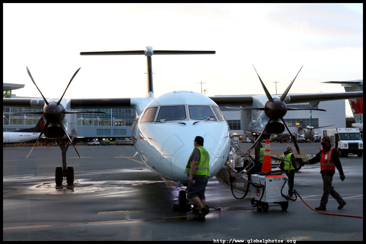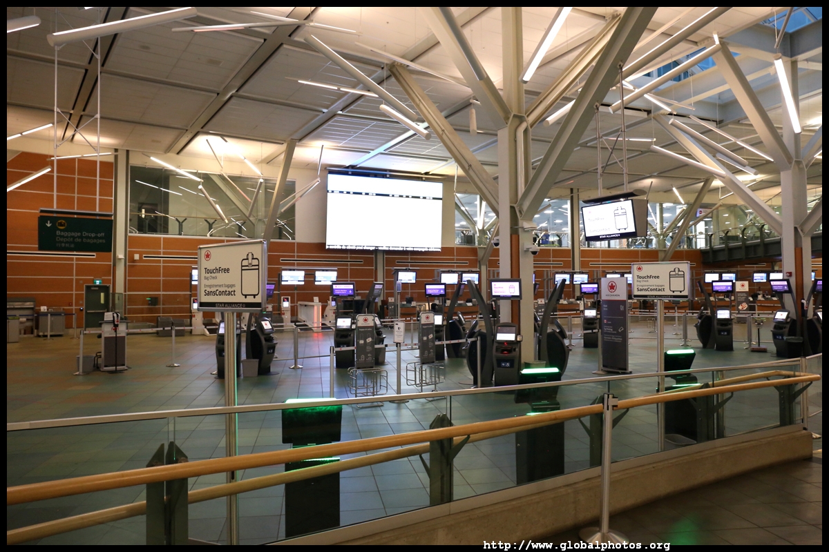 Normally, people would take the ferry or even a seaplane between Vancouver and Victoria, but my complicated itinerary from Hong Kong to Toronto with an overnight stop in Vancouver would require hopping over to Victoria by plane today to connect to a 2nd flight to Toronto.Happily rested after a day of sightseeing amidst the rain, I took the first hotel shuttle of the day ay 6:30am to reach the airport 1.5 hours ahead of departure. Since my bags were tagged all the way to Toronto (even had I gone straight through, I still need to haul them out to go through Canadian customs in Vancouver), I asked an agent whether those barcodes were still valid. The agent took a look and directed me straight to the drop-off belt, bypassing the machines and I didn't need to print a bag tag again. The typical check-in experience would be to use a machine to print the boarding pass and bag tags, affix it yourself, then haul it to the belt to manually drop off. I noticed a different type of machine for hand baggage.