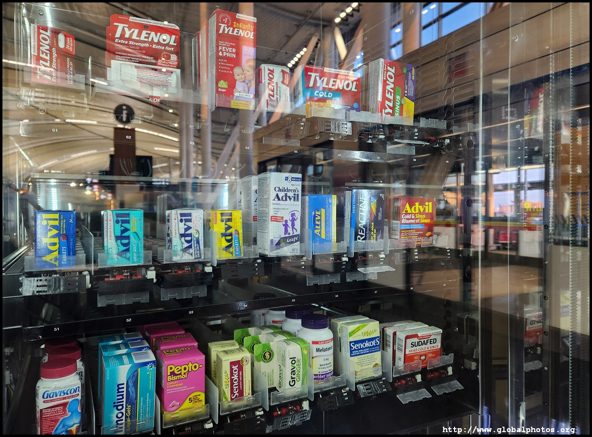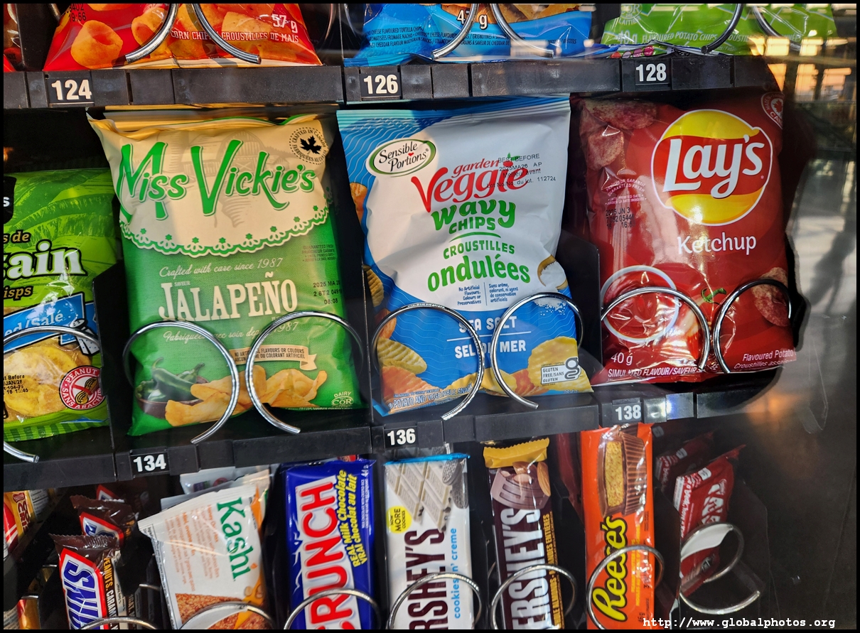 Vending machines sell the typical unhealthy stuff but a few distinctly Canadian items such as Miss Vickie's and ketchup chips, as well as useful essentials such as medications.