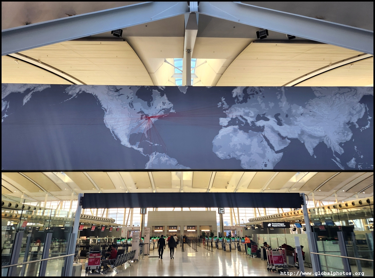 Security was quick but they're still using the old style machines where you have to take out your electronics. Nevertheless, I was out air-side in no time for the long walk to the international pier. There are no moving walkways for half the stretch as you loop around the terminal so if you have mobility issues, don't shy away from requesting wheelchair or buggy service. Along the way, I scanned the sea of Air Canada planes of various sizes beyond. They have a number of liveries on their planes from the older neon blue base to the more classic new dark blue tail and the red-and-white-only Rouge colours for the discount arm.