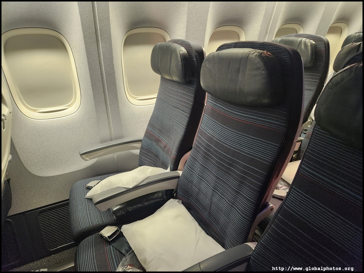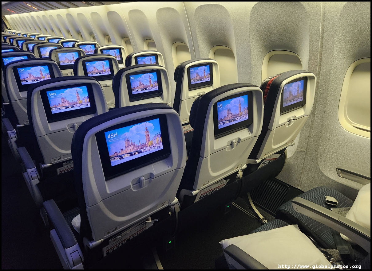 This high-density 777 isn't the nicest place to be for a transatlantic flight, but my travel hack is to find a place at the back of the plane where the row of 3 becomes 2, so it's a bit more spacious and there is a little nook between the window and my seat that is big enough to store a backpack and to stretch out a little more. Luckily, it wasn't a full flight and I got the whole row to myself.