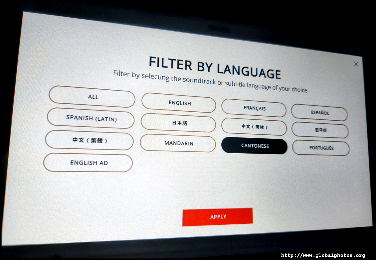 The IFE has improved over the years but still doesn't offer as much as BA. However, they do have a wide range of international content and there is a neat feature that can classify by language, including Cantonese.