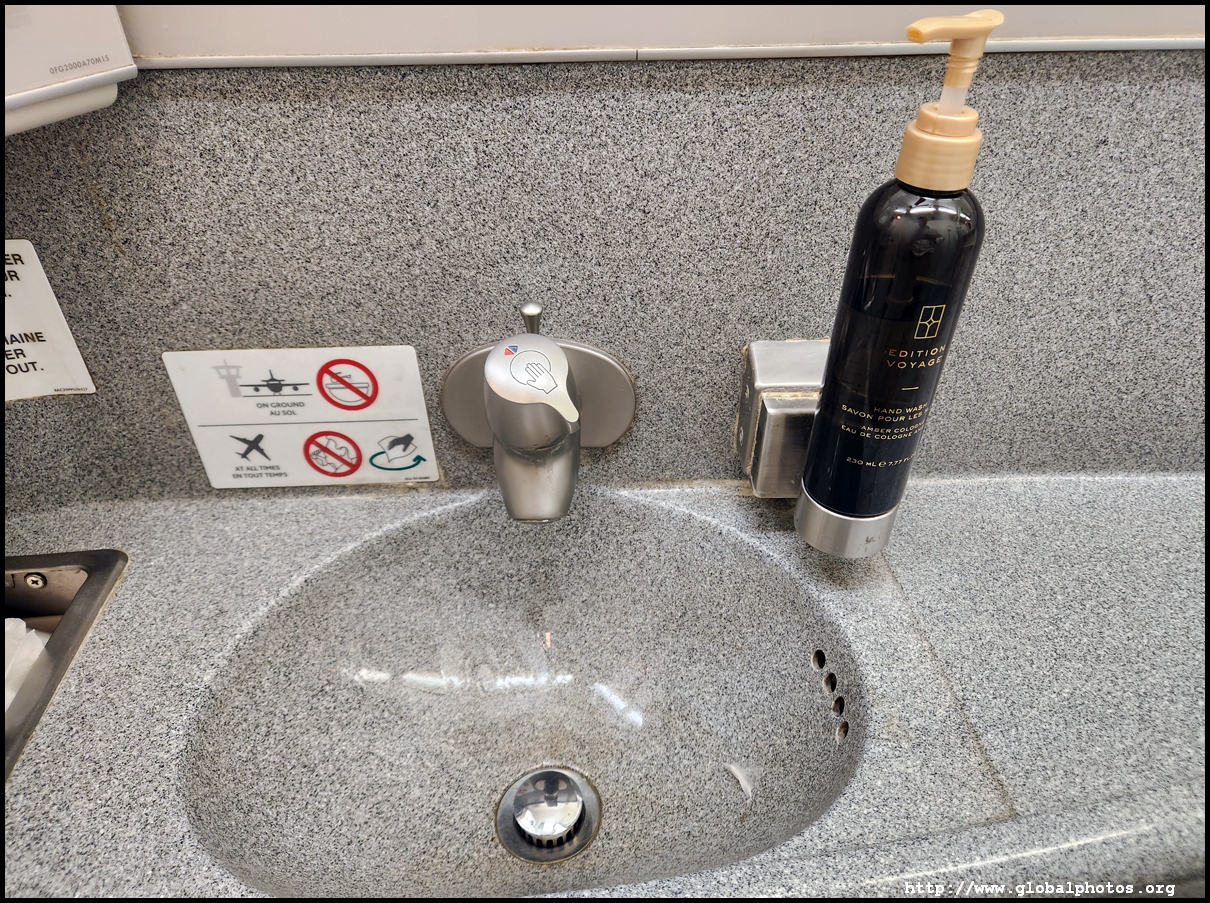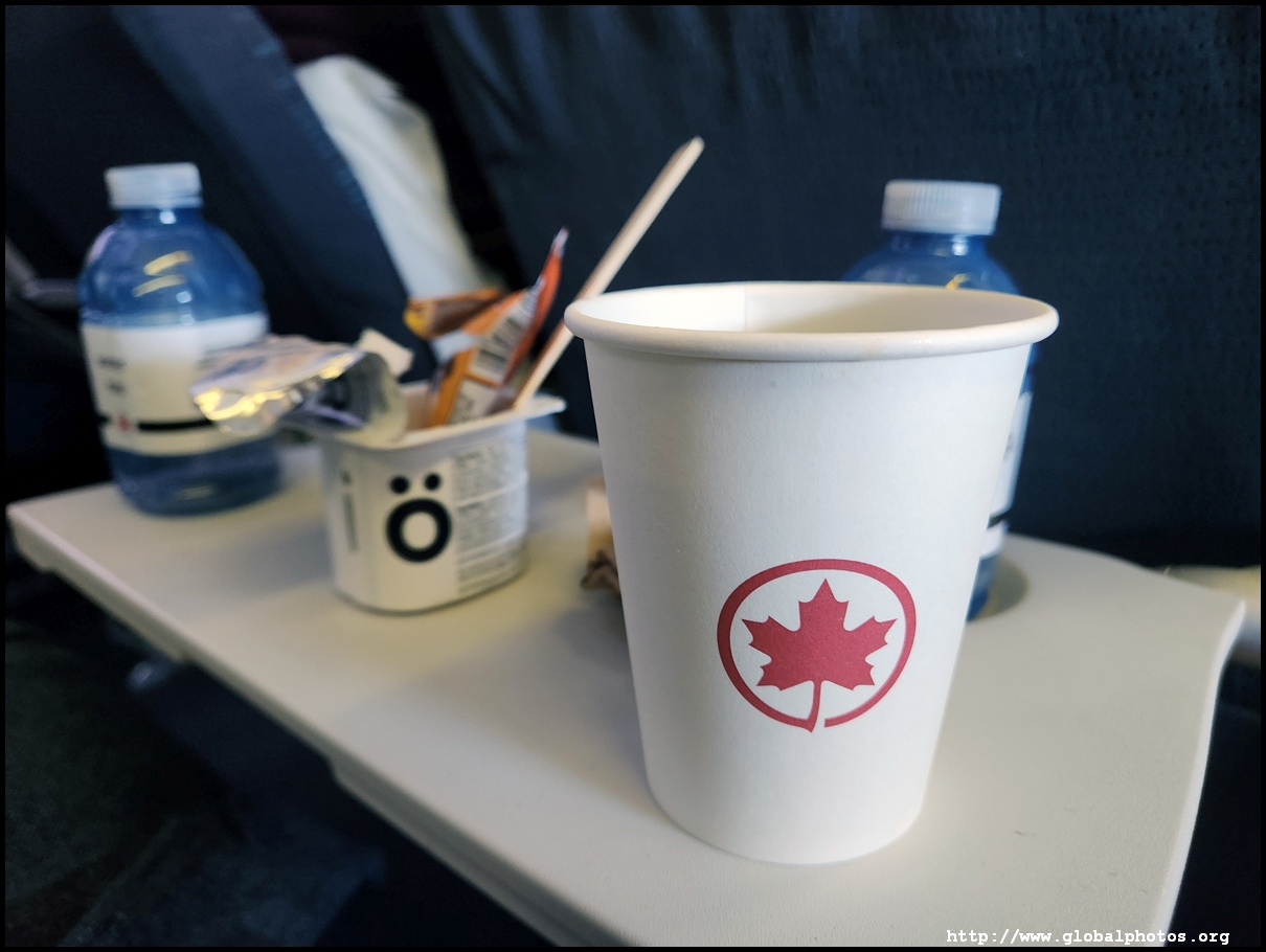 Most late evening departures are headed for Europe, with a Heathrow flight an hour before me and another one 2 hours after. The international pier was quite busy with insufficient seats for everyone. The airport tried to give more spacious desk spaces to make the wait more comfortable, but the section is not big enough to handle multiple widebodies at once so I kept browsing along the windows instead of trying to find a seat. Luckily, it wasn't busy at the Tim Horton's for your last fix before leaving the country. Passengers also don't clean up after themselves so there are plenty of remnants and crumbs lying around.