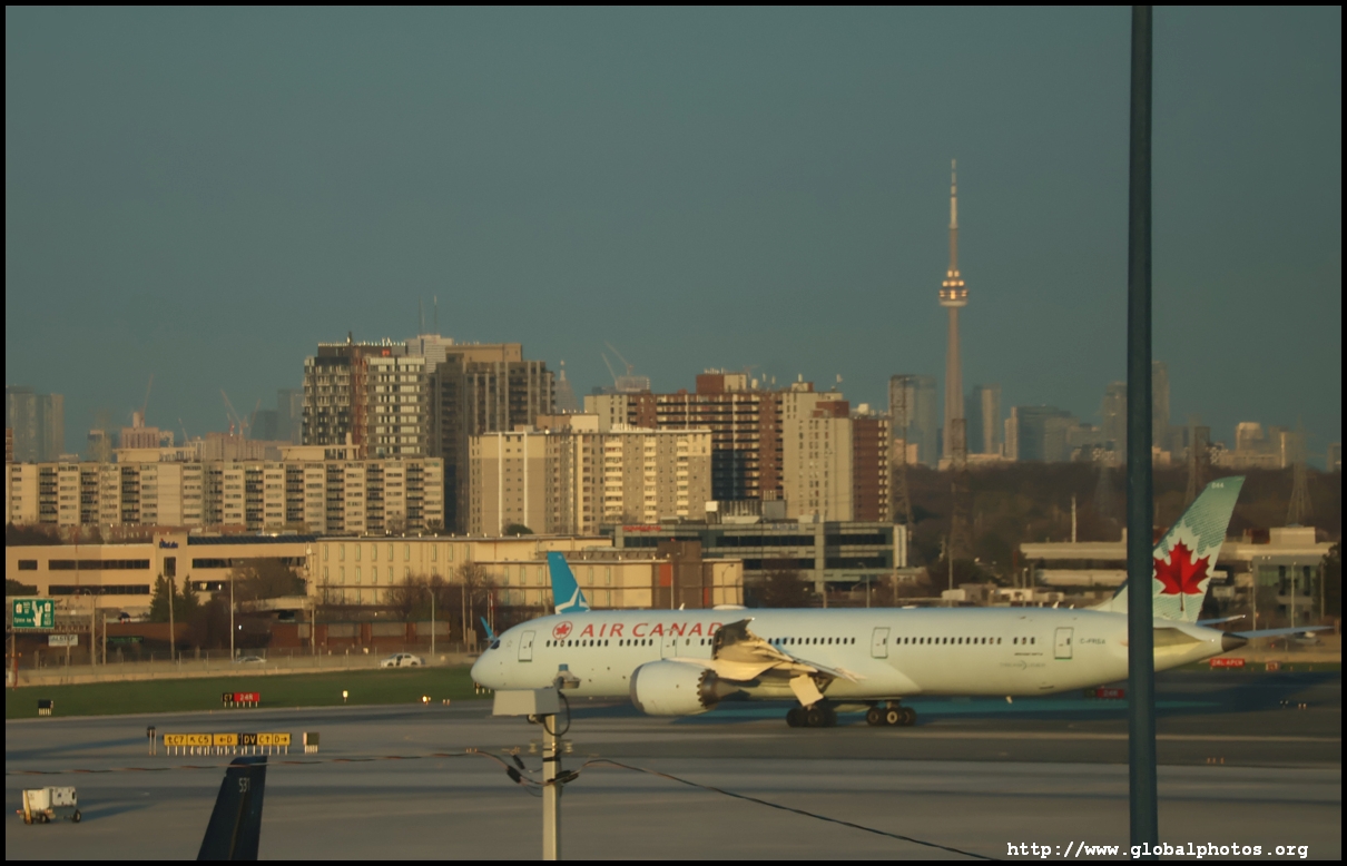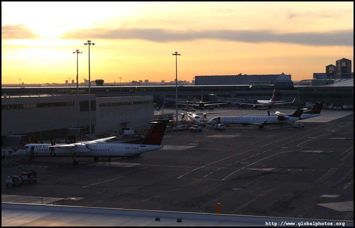 With some time left, I looked around land-side hoping to spot some skyline views amidst the sunset. The drop-off curb at one end of the building opens up with a good view of smaller Air Canada planes.