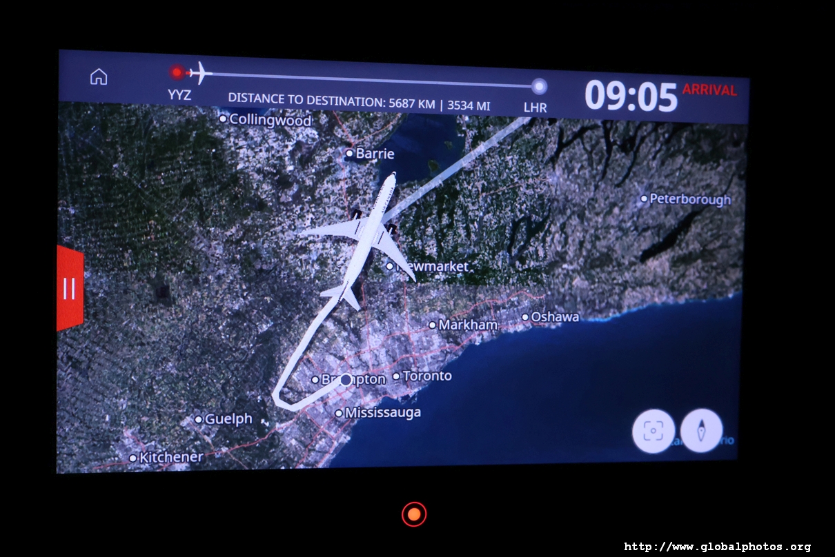 We pushed back a minute ahead of schedule and headed towards the north runway. There was no cockpit announcement but it looks like a short transatlantic flight of less than 7 hours tonight. We took off towards the west and looped around for a northeasterly trajectory towards Europe.