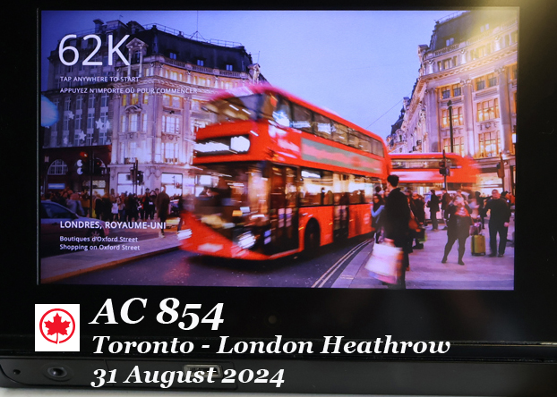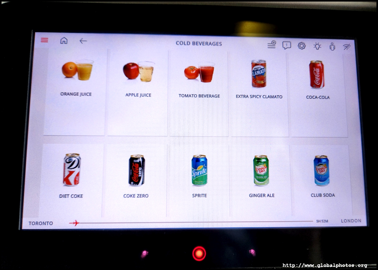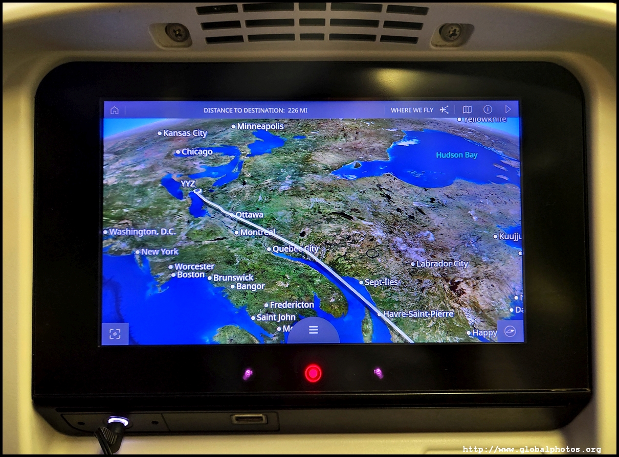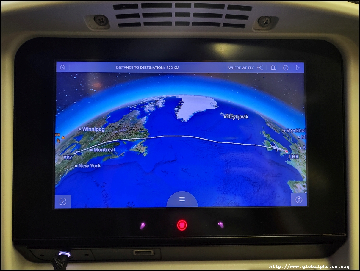 We departed towards the west over Mississauga and looped around to fly over Lake Ontario just south of Toronto, so the left window would have had a spectacular view of the downtown skyline. The sun was starting to set at the dinner hour and the weather was beautiful. Tonight's transatlantic crossing will take just 6 hours, only a little longer than a westbound flight to Canada's west coast.