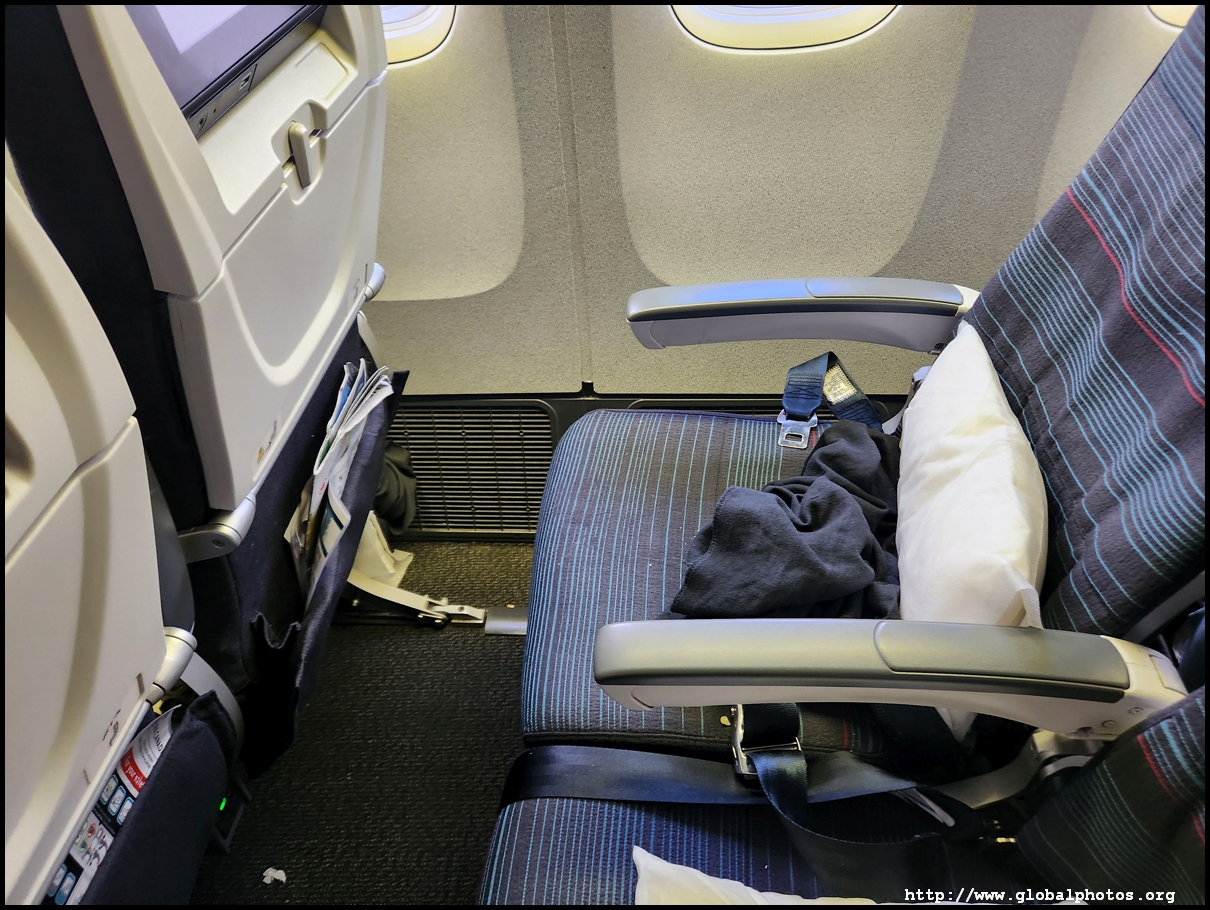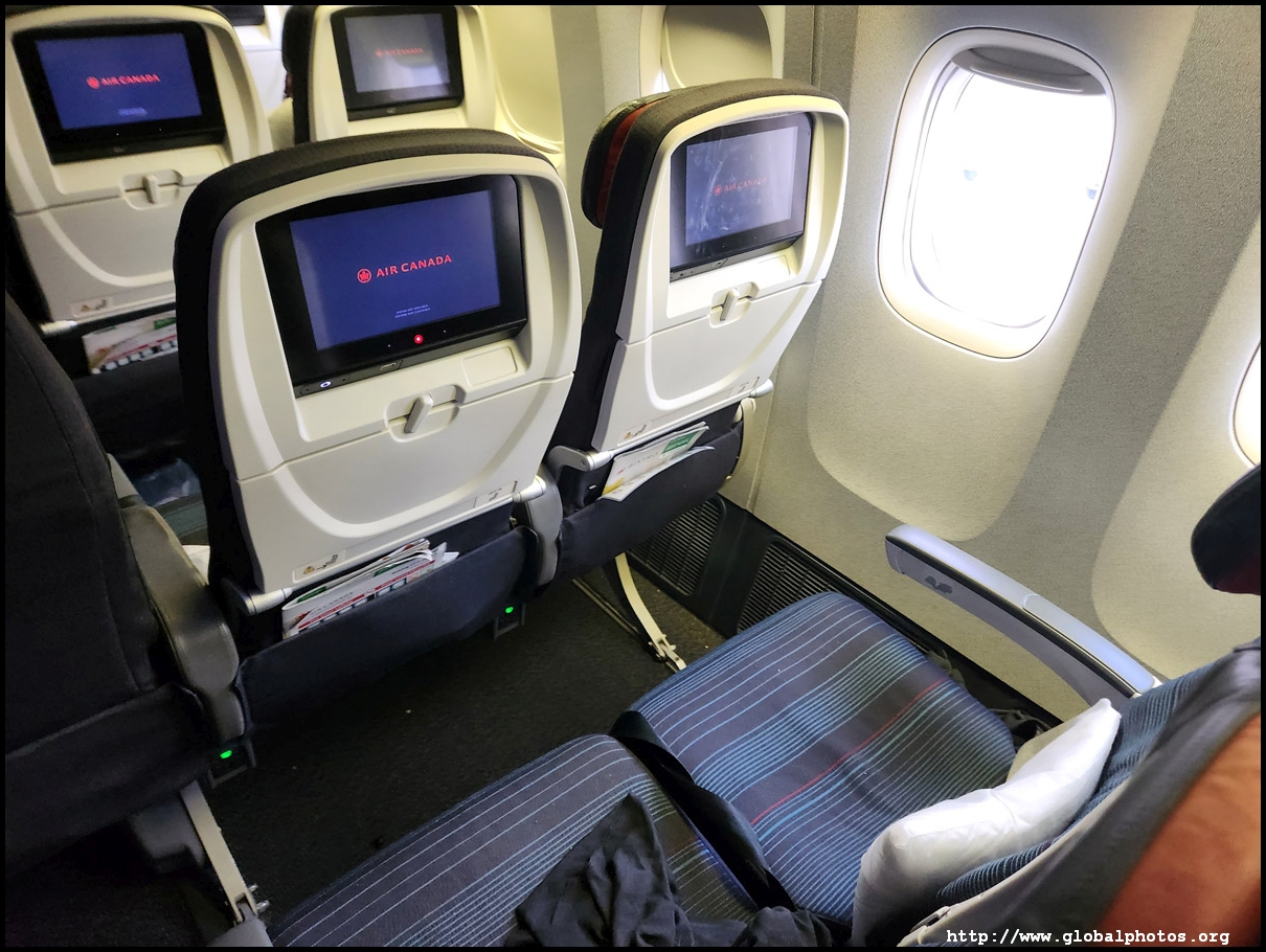Air Canada really packs the 777 full with a huge Economy cabin and a 3-4-3 high-density configuration for some 400 passengers. I had my doubts over how pleasant a full plane would be like and the first signs of trouble arrived even before sitting down. Each seat already had a blanket and pillow placed on it and as I lifted both up to get in, I noticed plenty of crumbs and even a candy wrapper right on my seat. There was more garbage off to the side by the wall. I wonder if the cleaners forgot about the entire row and the crew didn't bother to check.