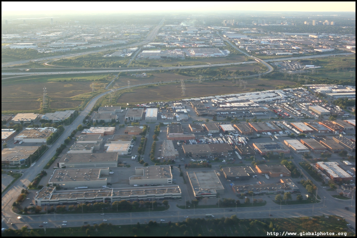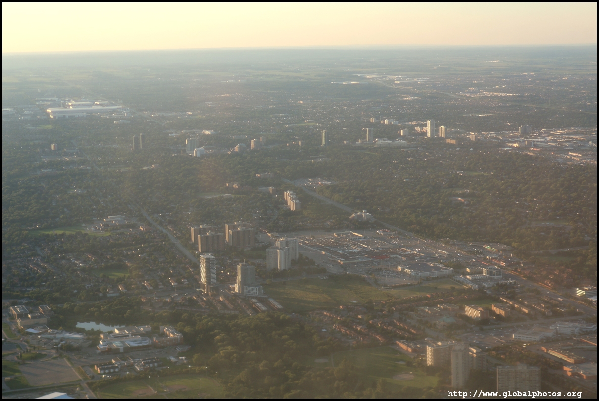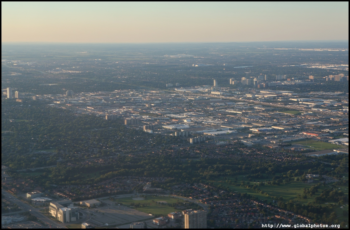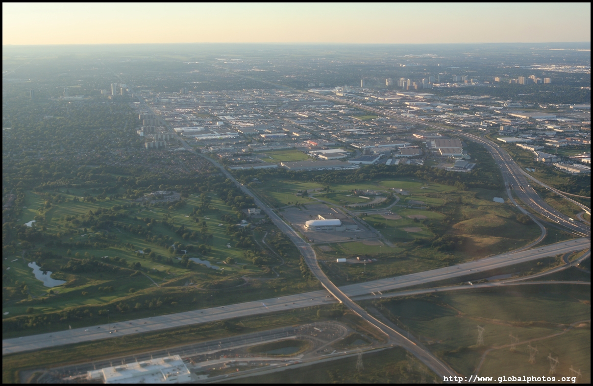 Mississauga's growing skyline is easily visible in the distance. The airport is actually not located in the city of Toronto but just outside the municipal boundary.