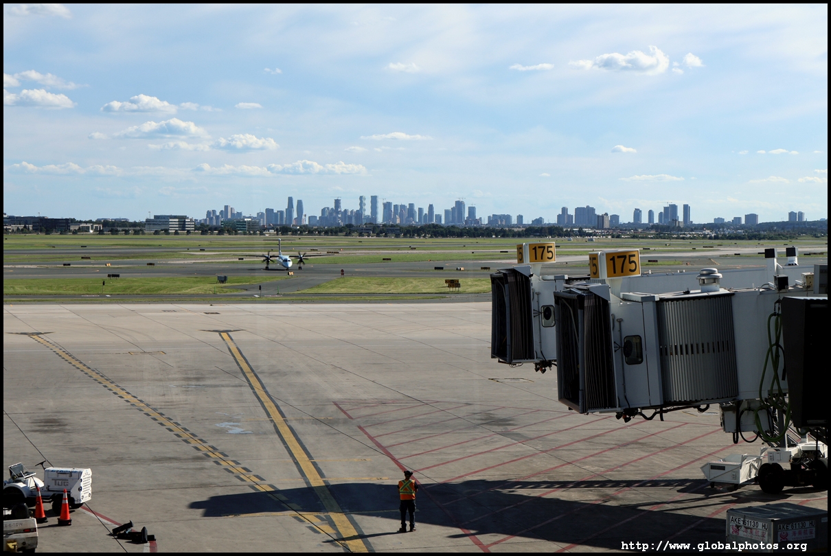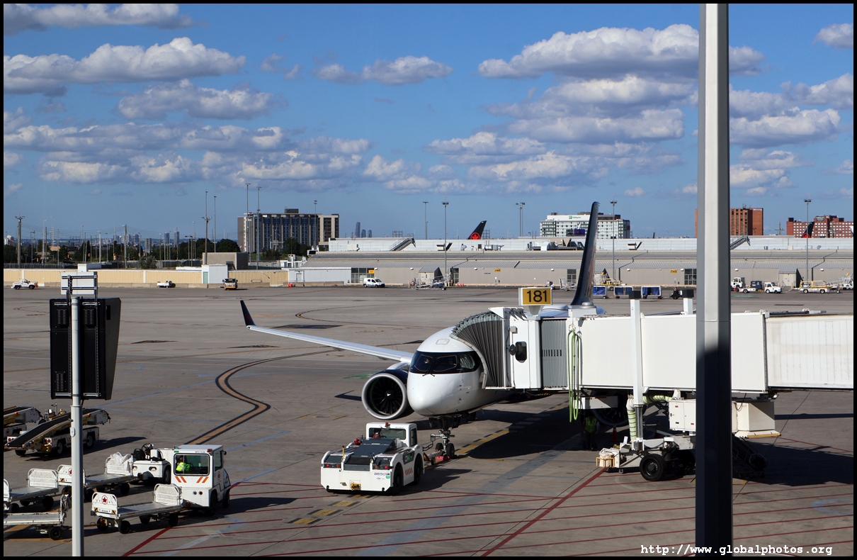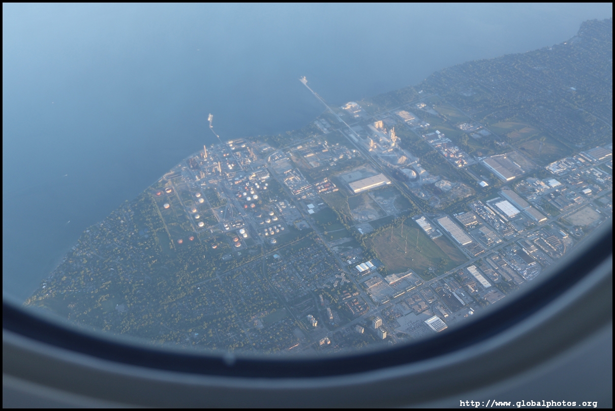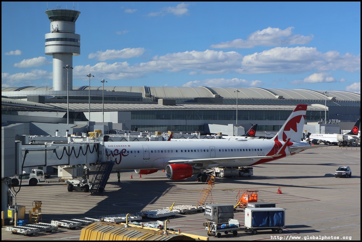 Mississauga's growing skyline is easily visible in the distance. The airport is actually not located in the city of Toronto but just outside the municipal boundary.