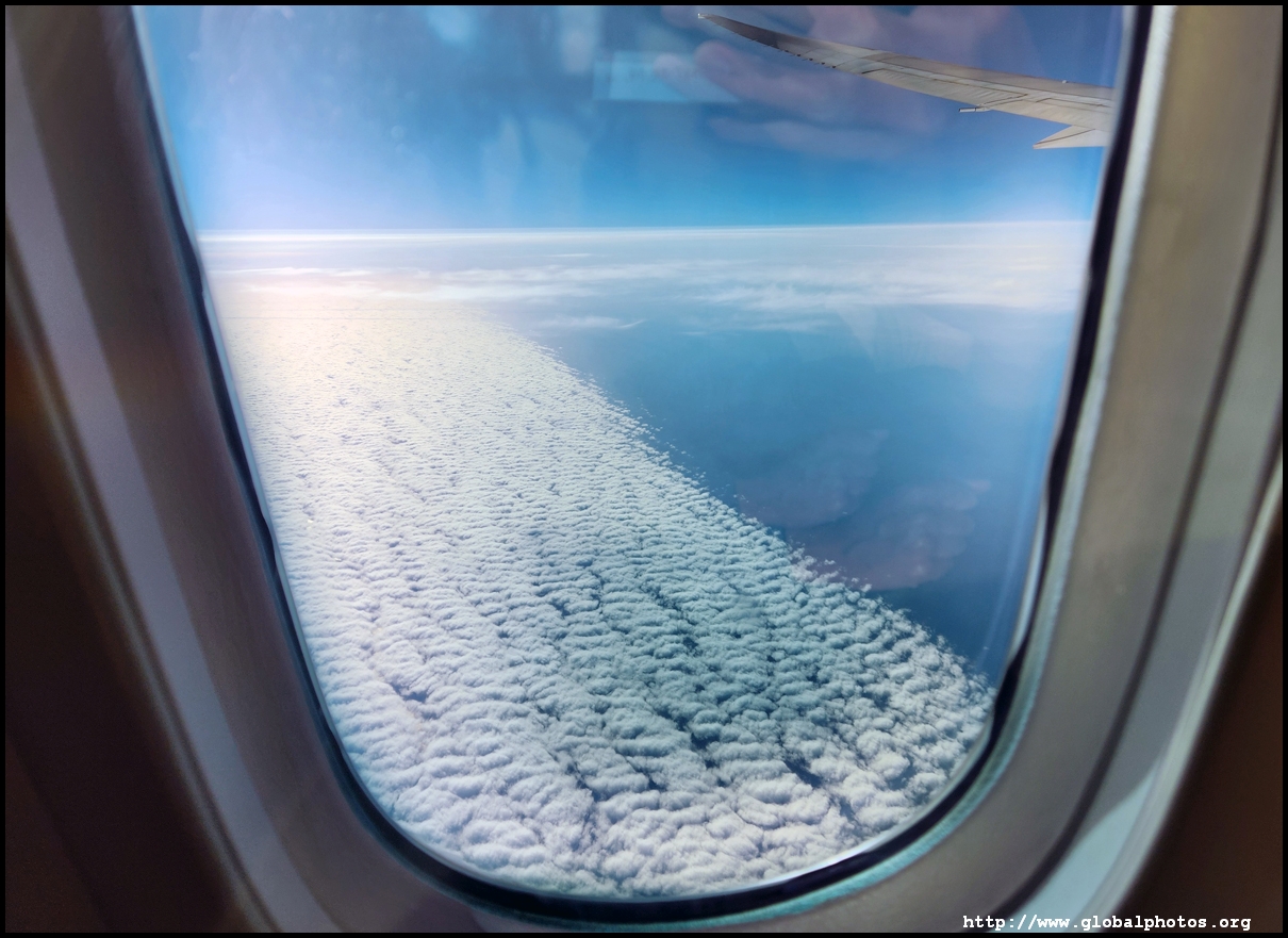 The Dreamliner's windows don't have shades but a control panel to dim it to various levels. While the crew did not force dim these to the darkest mode for this daytime crossing, even at the most liberal setting, there is still a yellow tint.