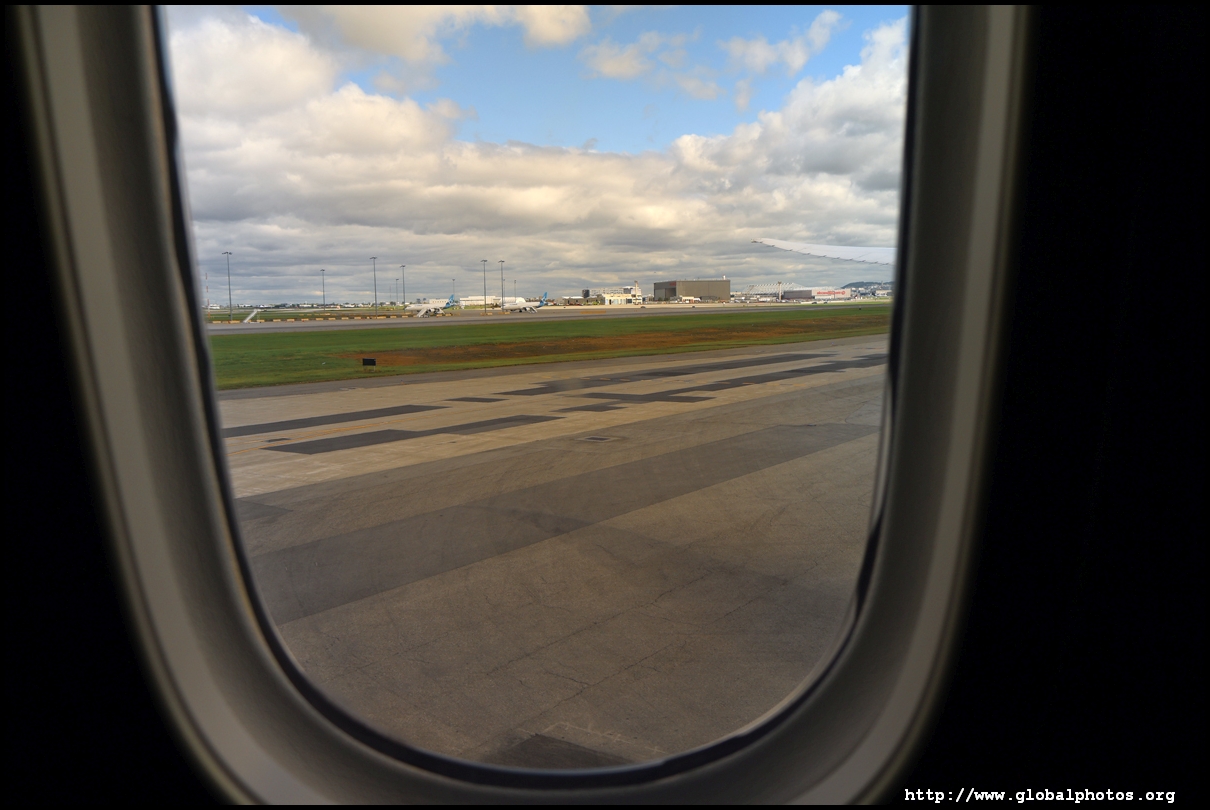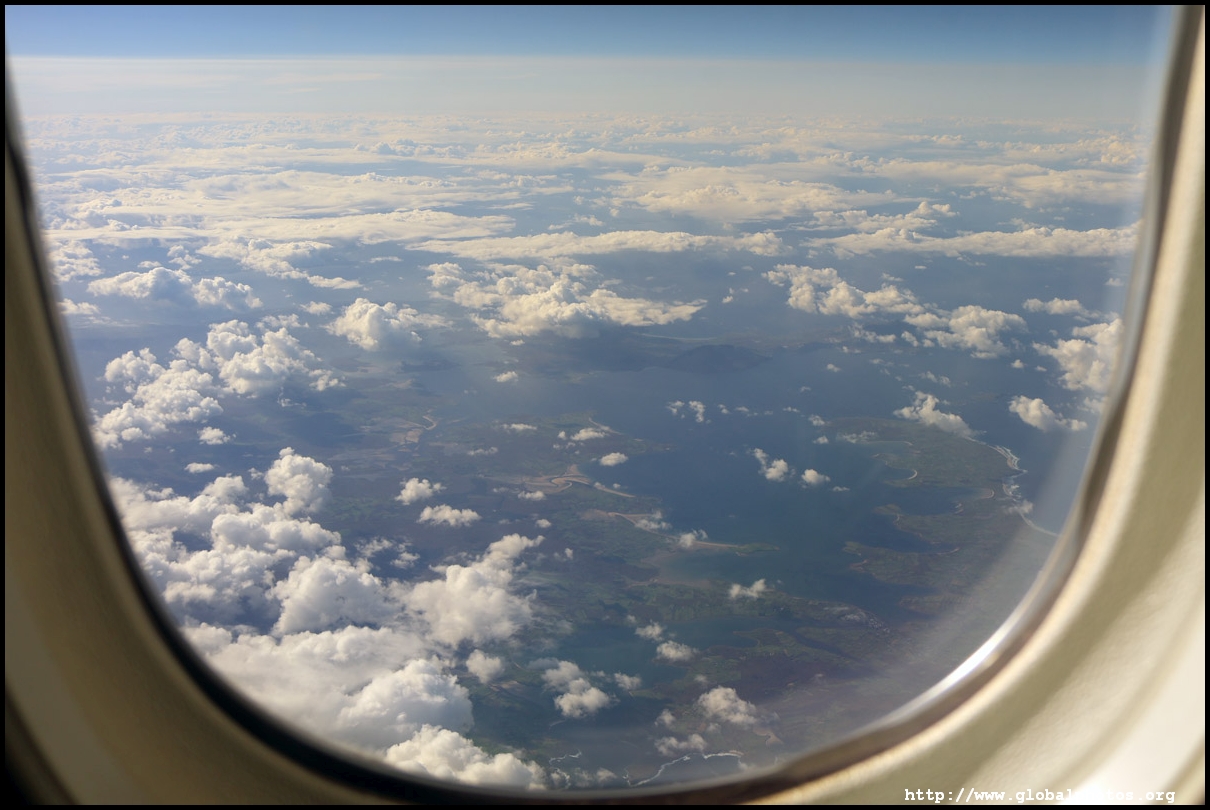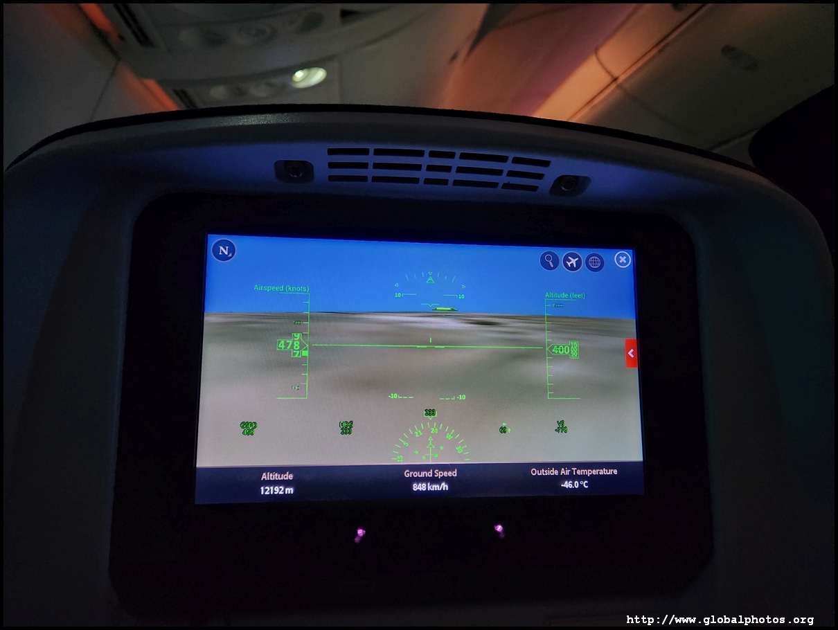 I was in the last row by the window. With only 2 seats and a narrowing fuselage, I had a huge storage space next to me and 2 seats of legroom to stretch out. That being said, there wasn't much space between me and the row ahead. We were a full flight while the last middle row in Economy was reserved for crew rest. The flight deck gave 2 updates, with the last one suggesting the rain outside was causing it, and eventually pushed back at 9:51am. It was a short taxi to the eastern end of the runway for take-off at 10:08. It wasn't raining heavily but we were in the clouds for quite some time to just shy of 20,000 feet.