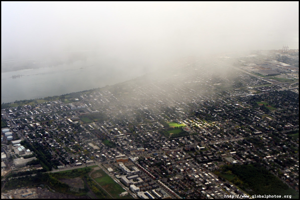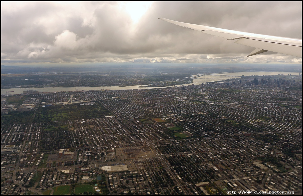 Even as we were on final approach into Montreal, the windows still had a little tint to it. With a left window, I had a beautiful view of the city from the Olympic Stadium to Mont Royal and the skyline.