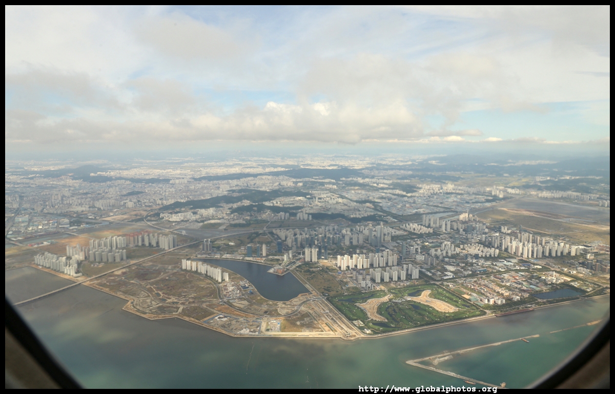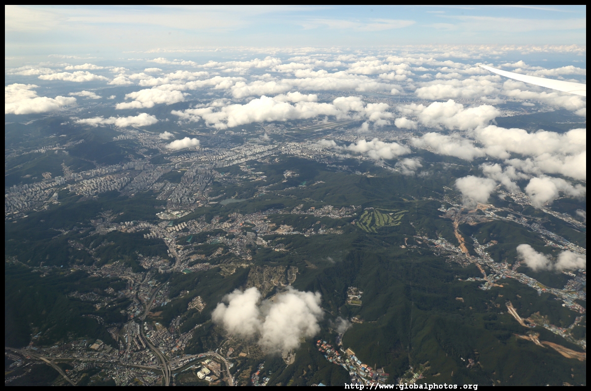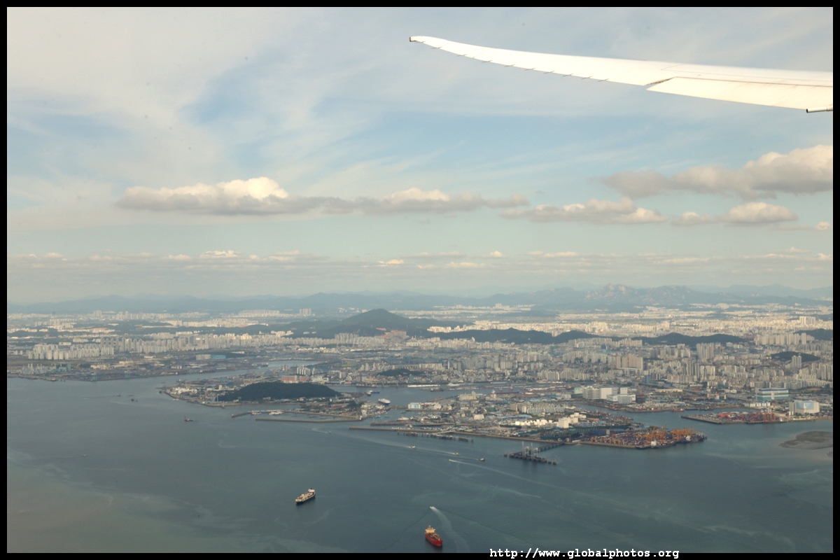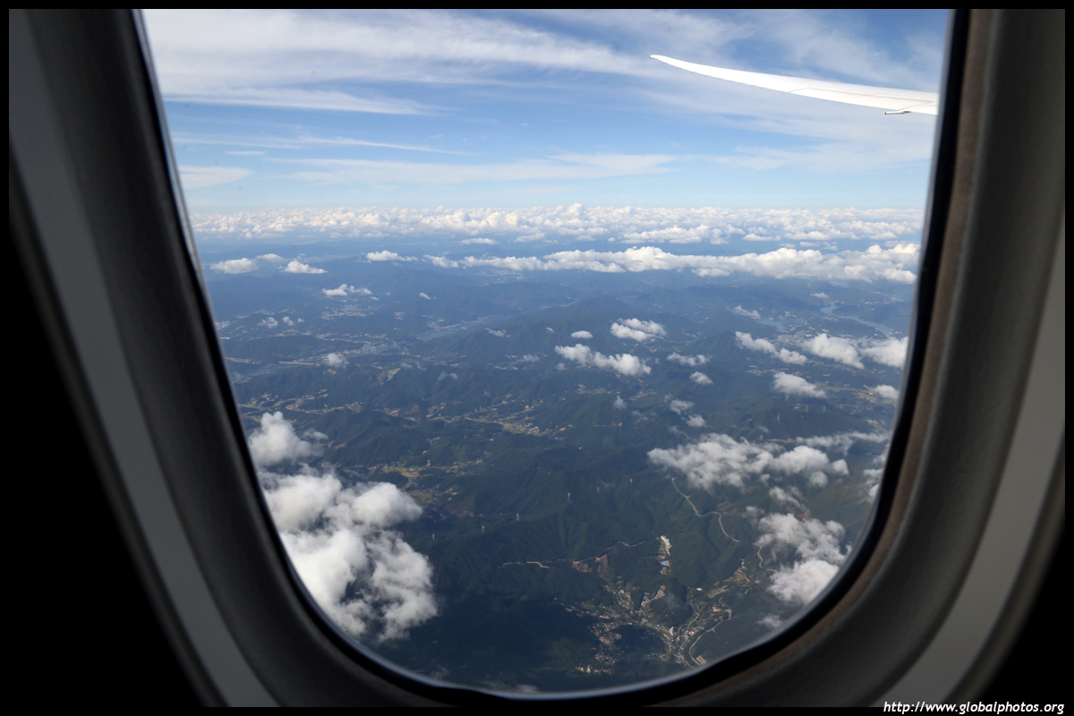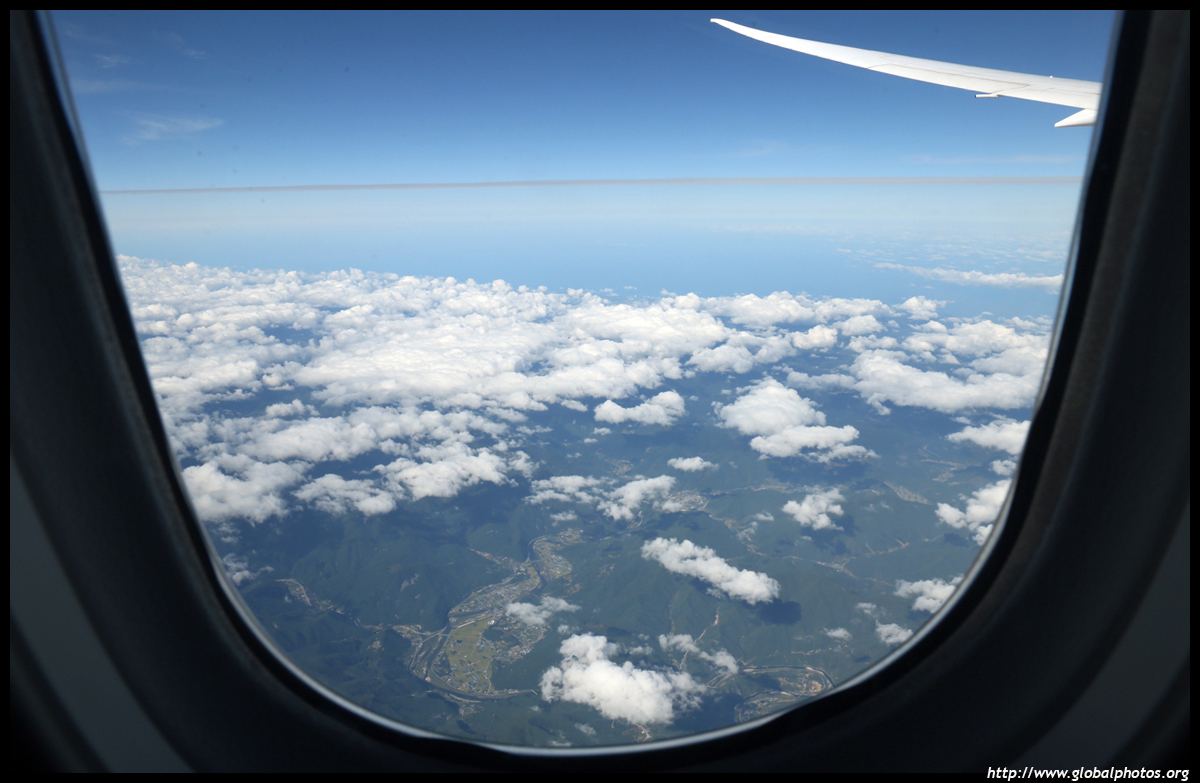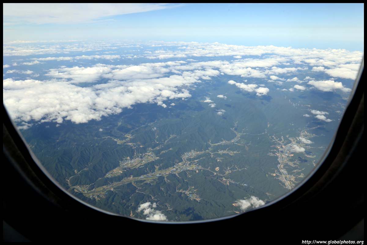 We flew across the Korean peninsula and spotted the ocean 25 minutes after take-off.