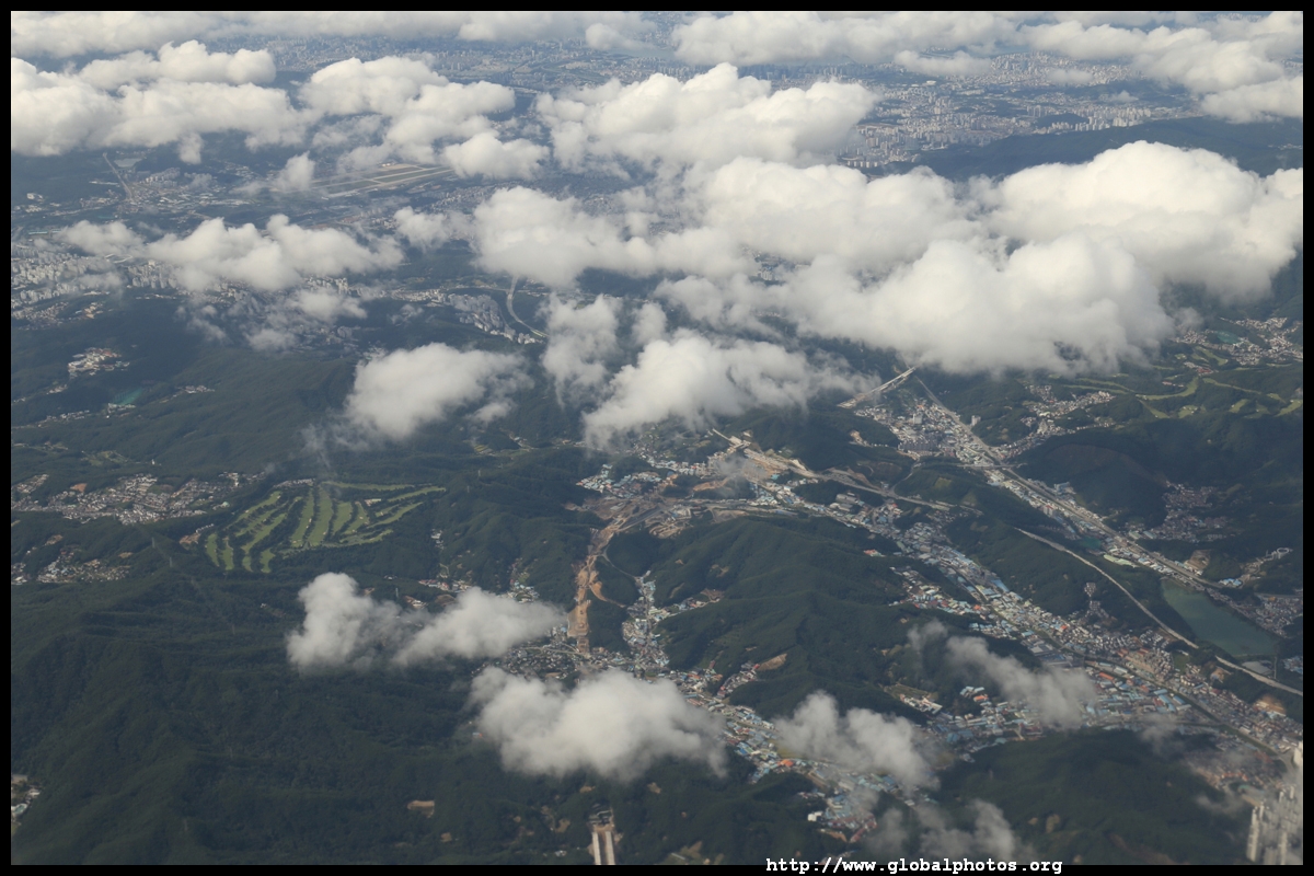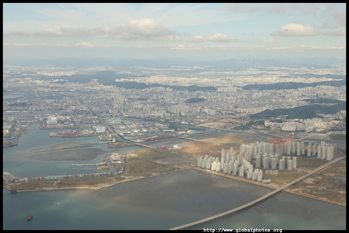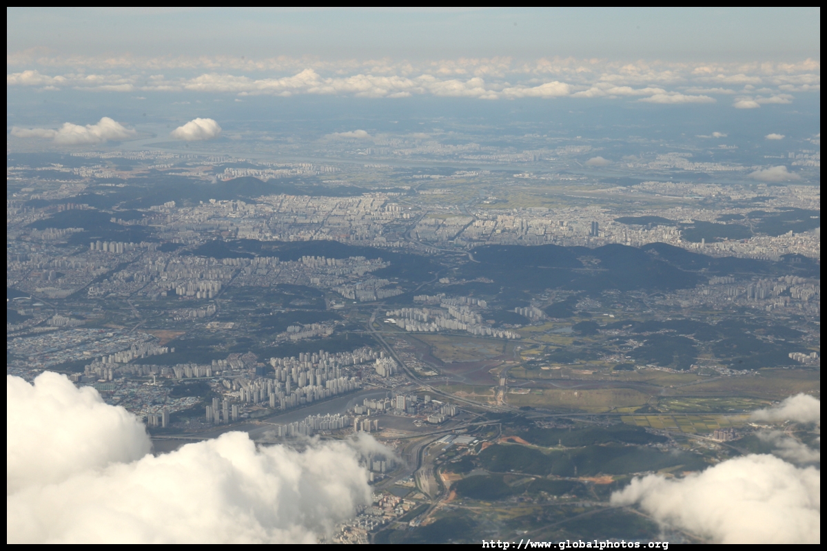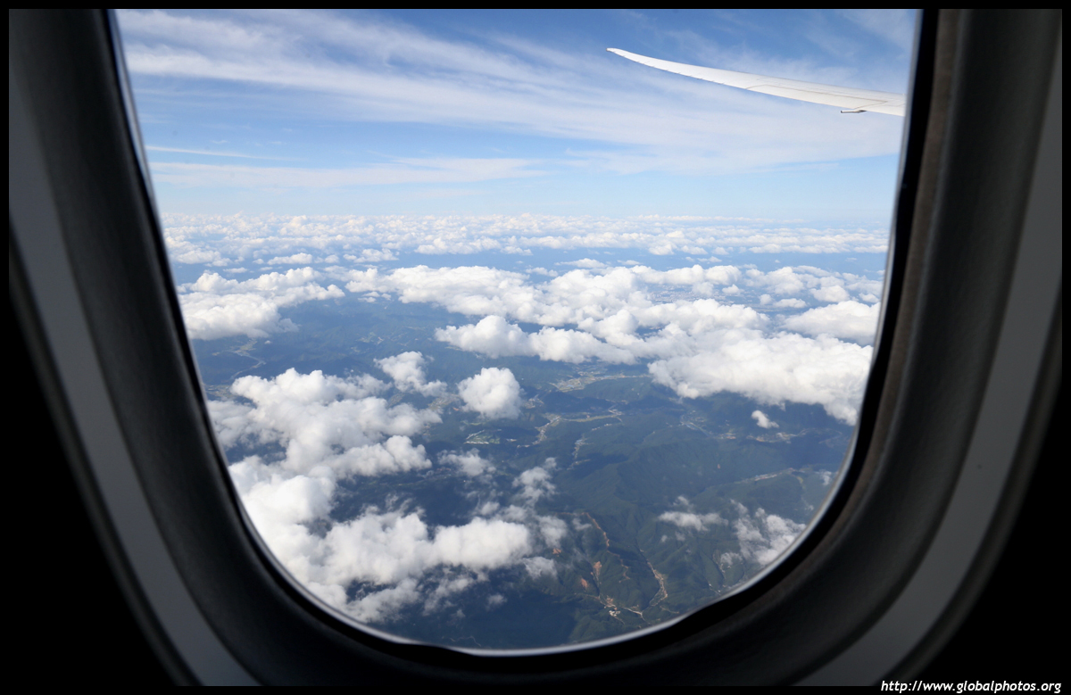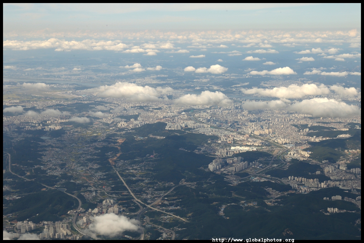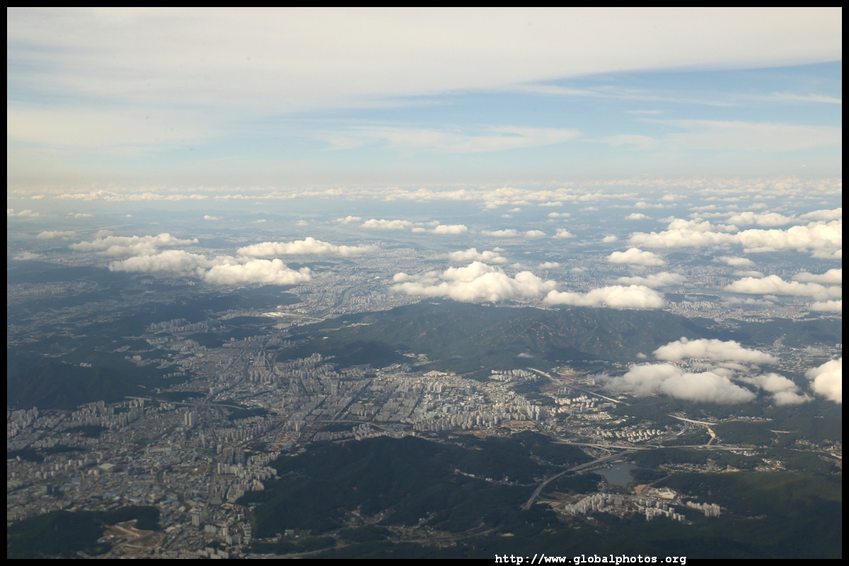 We flew across the Korean peninsula and spotted the ocean 25 minutes after take-off.