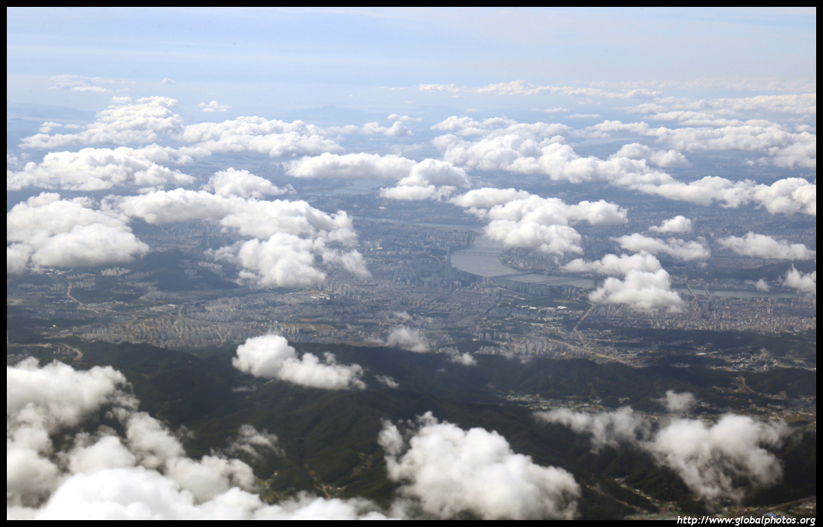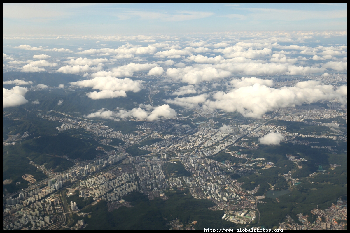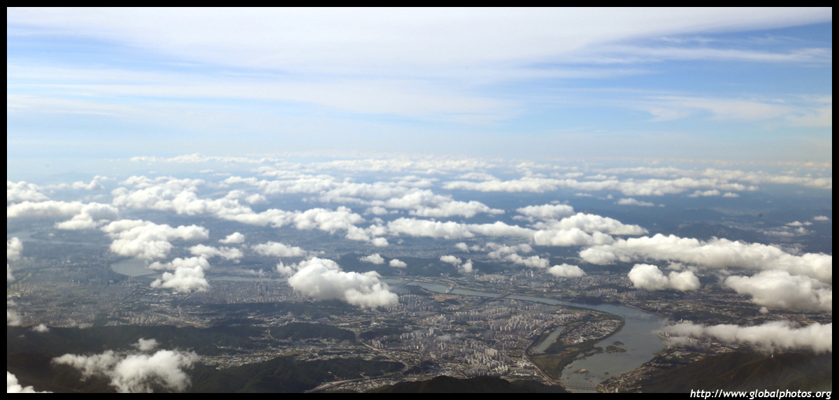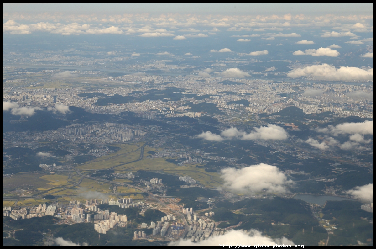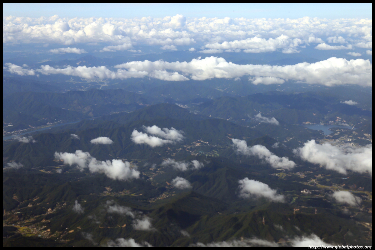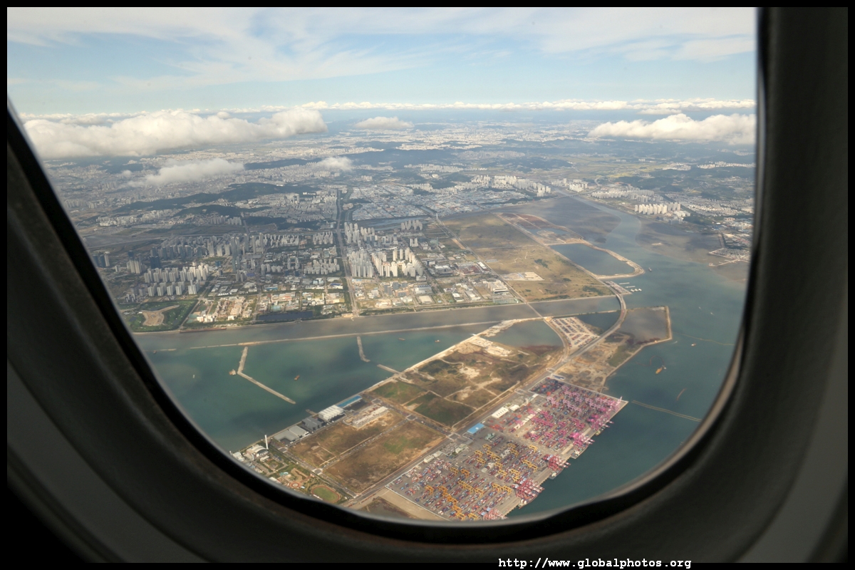 We flew across the Korean peninsula and spotted the ocean 25 minutes after take-off.