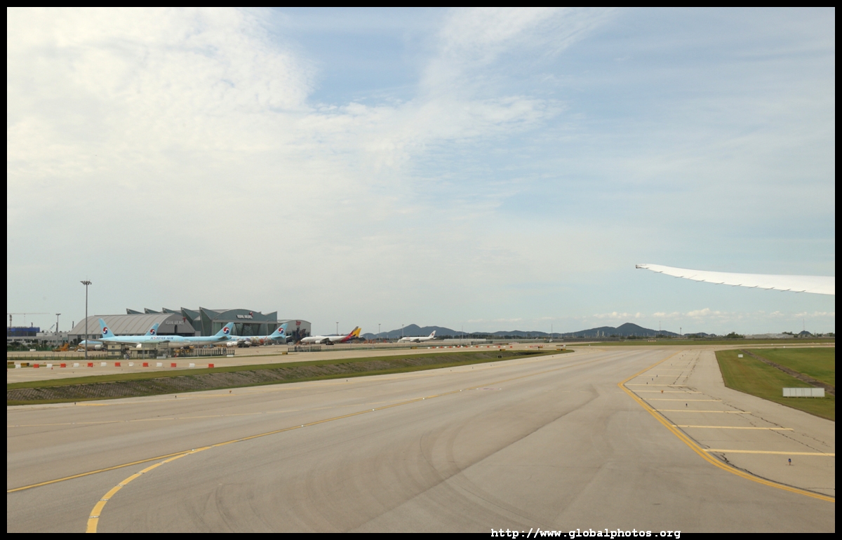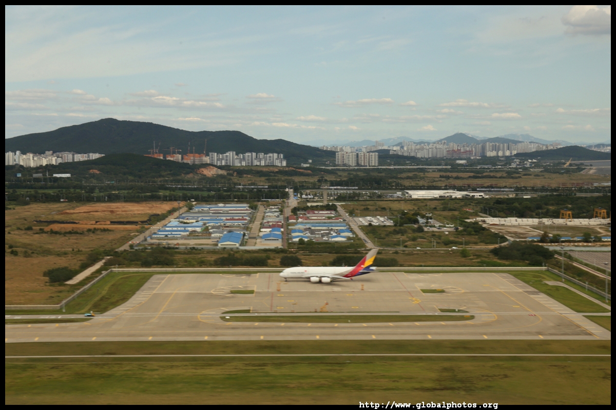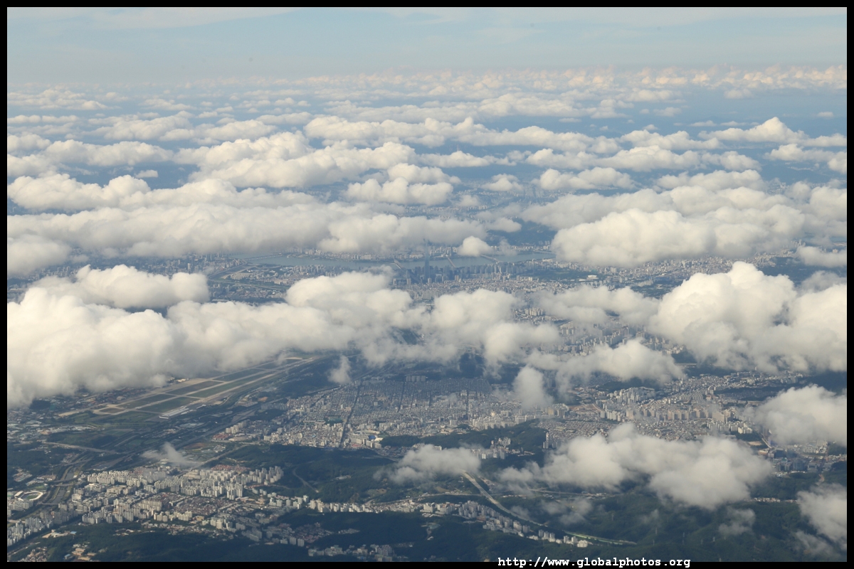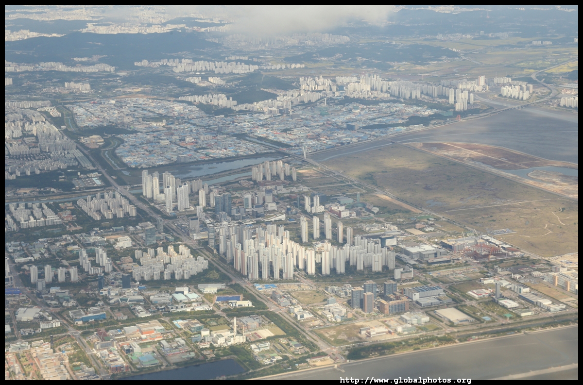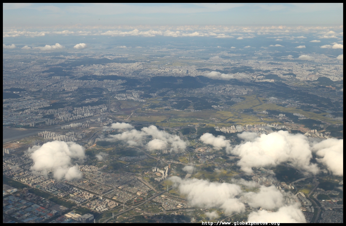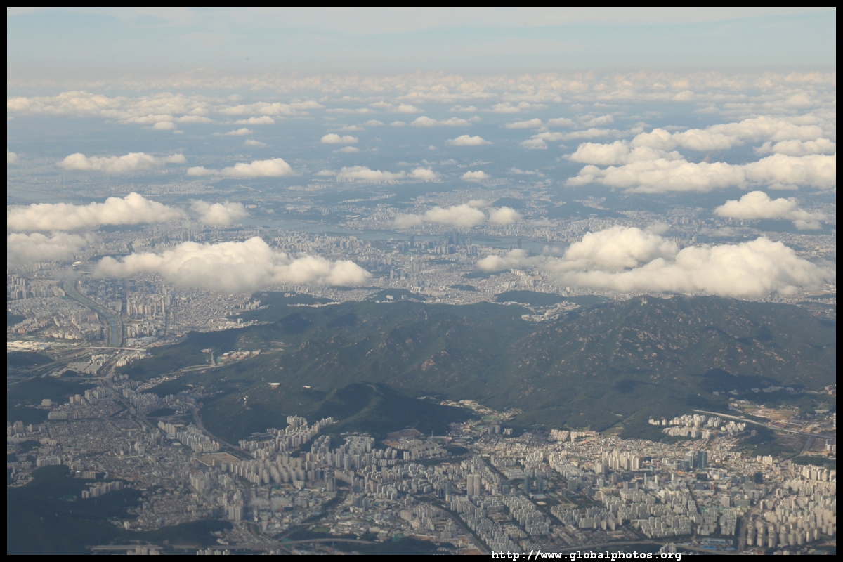 We took off towards the south at 2:35pm for the 9 and a bit hour flight across the Pacific. My left window seat was a wise choice with plenty of city views across Incheon and Seoul. The weather was quite good so there should be some decent aerials to take.
