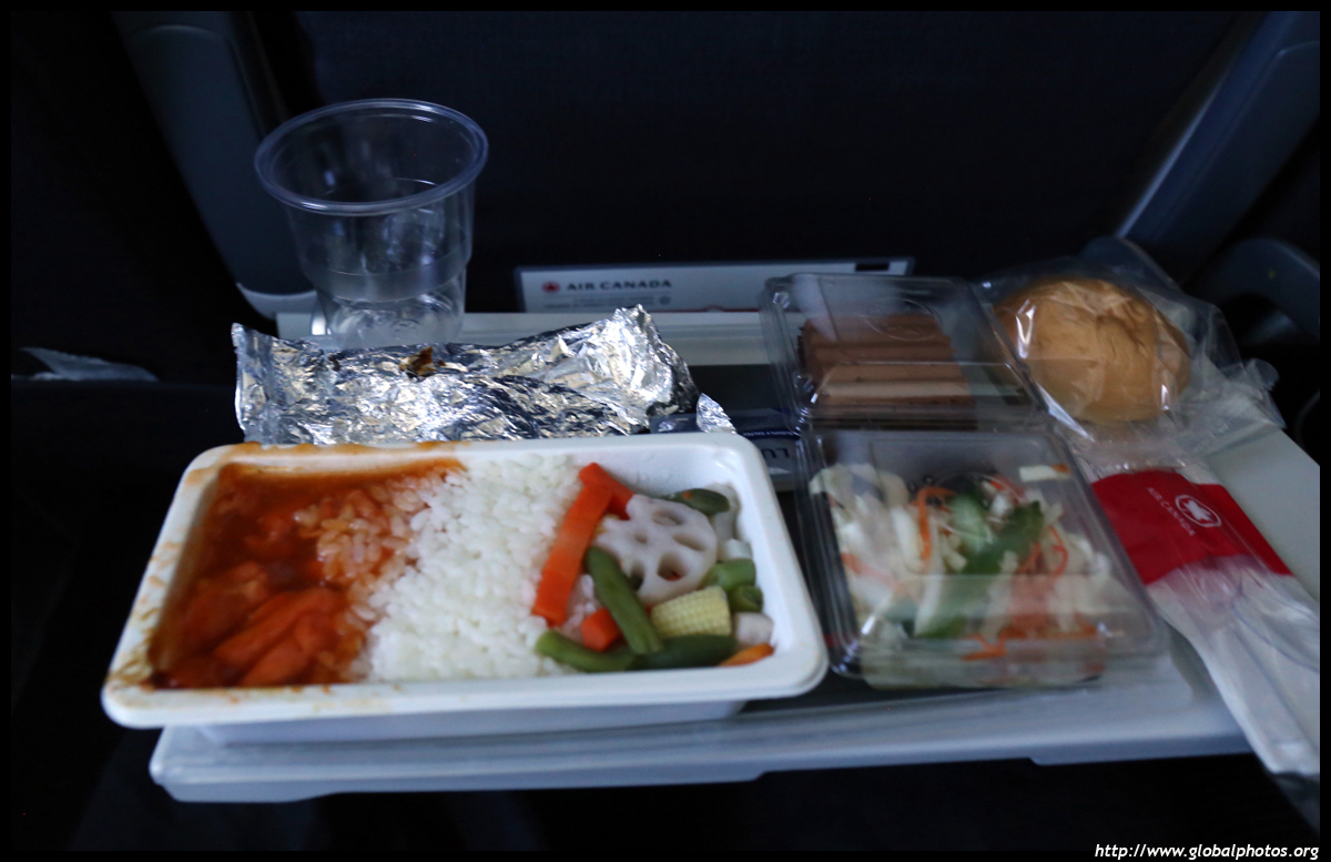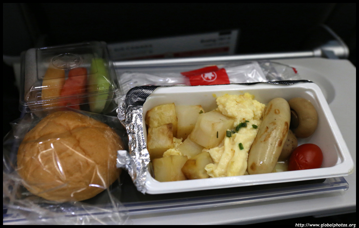 A full meal was served at the start of this long transpacific leg. As with my previous experience flying this airline, the food tasted all right but the portion was quite small.