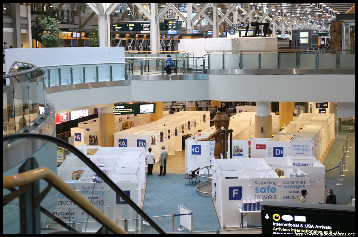 We were the only international flight arriving in Vancouver at this early hour. Even though I was at the back of the plane, there was barely a wait for the immigration kiosk. With receipt in hand, I waited only a little bit for the immigration officer, who acknowledged by ArriveCan documentation and explained I would not need to quarantine. However, I was selected for a random COVID test and would need to follow the signs heading out. Everything was smooth sailing and after a short wait for my luggage, I followed the signs out to the COVID testing station. There were 2 lines at the customs exit and there were plenty of staff around to direct traffic.