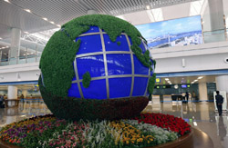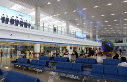 The new international terminal was not busy by any means. It was clean and tidy, probably because we were the only flight leaving. Notice all international flights were heading to China.