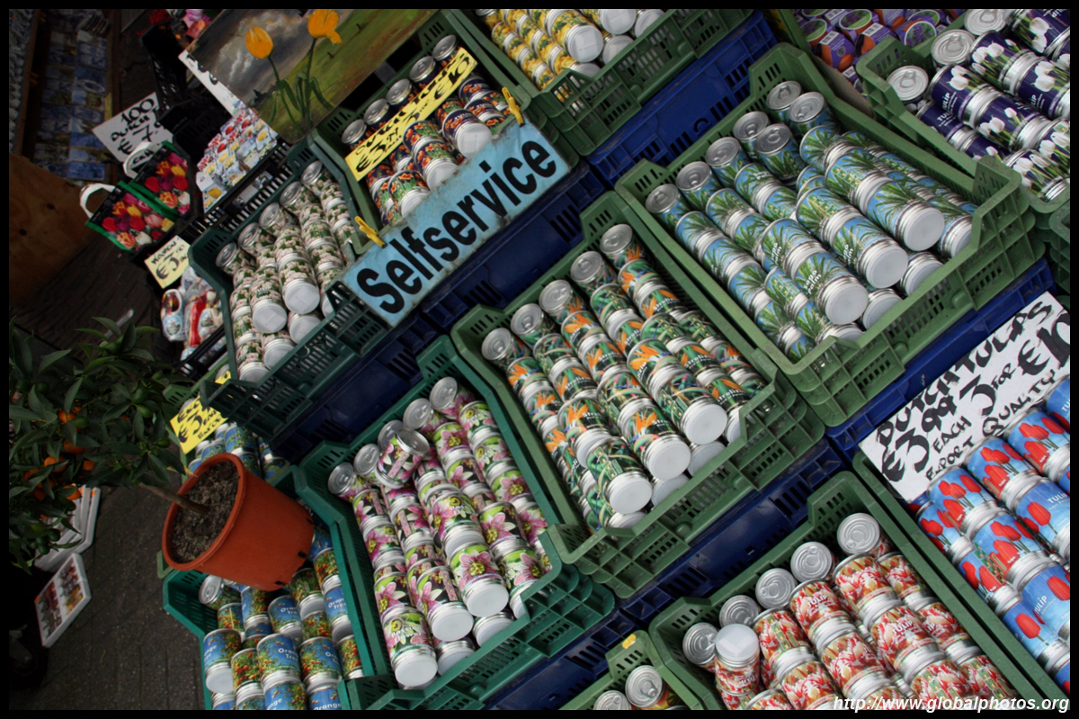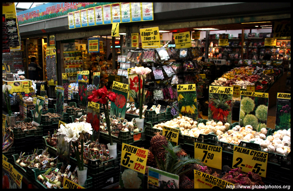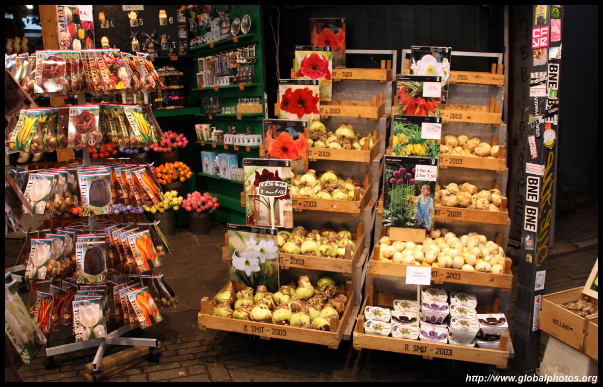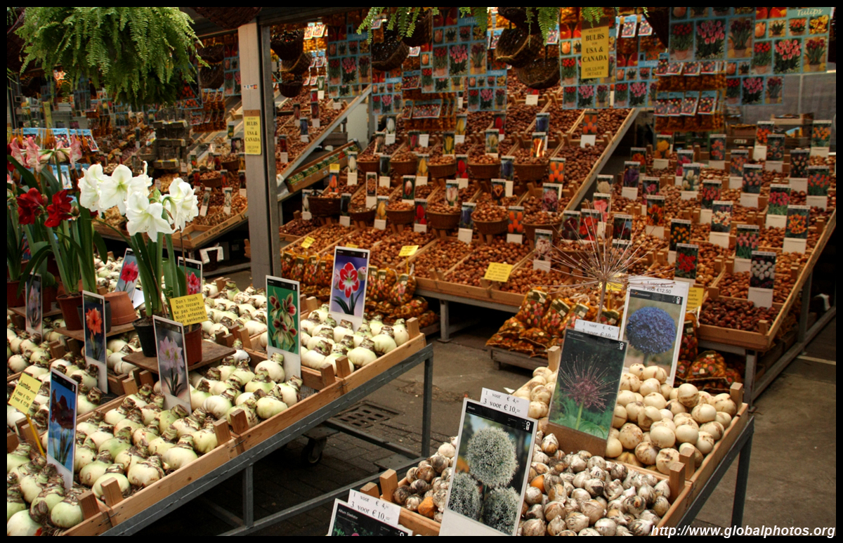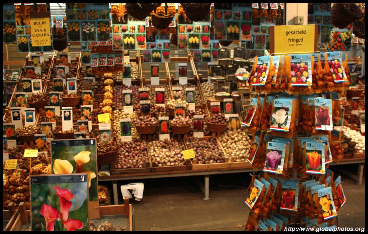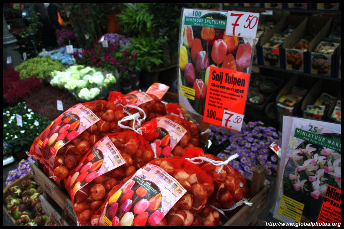 The tulip came from Turkey via Vienna and flourished in the Netherlands' sandy soil. It became a huge speculative commodity in the mid-1630s when a few rare bulbs costed as much as a house. This get rich quick frenzy came to a crashing end in 1637 when prices fell to just 10% of its previous value in 3 months. However, the tulip's importance as a flower and association with the country continued.