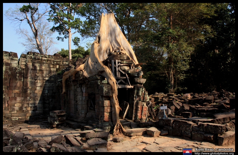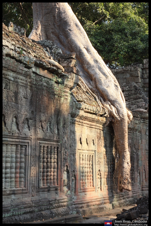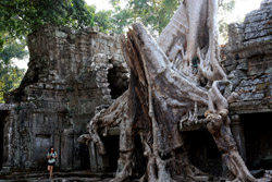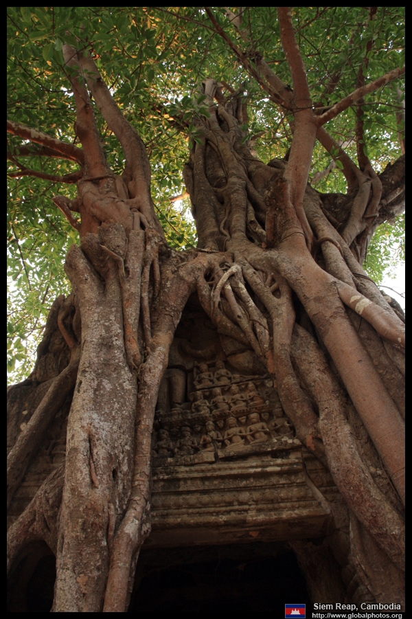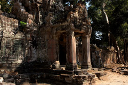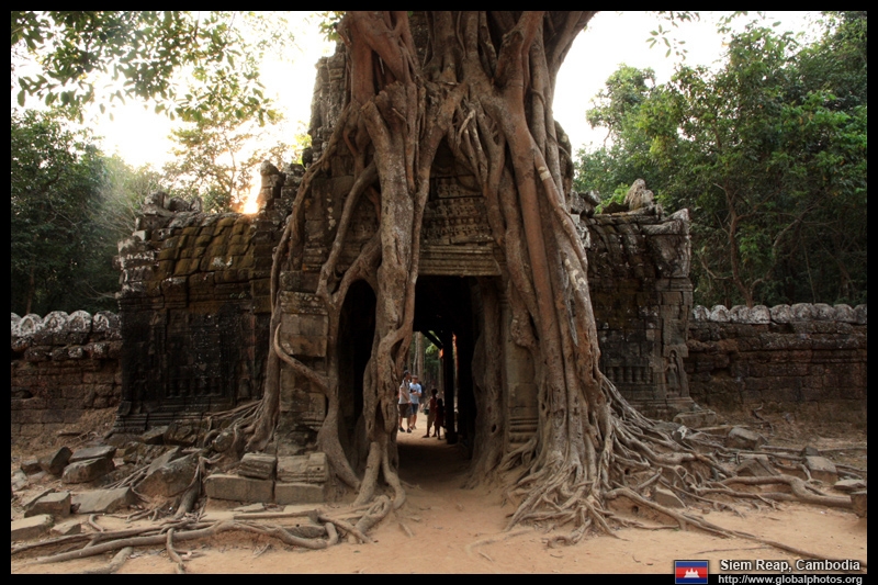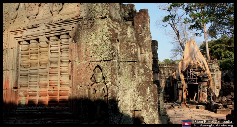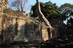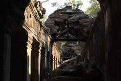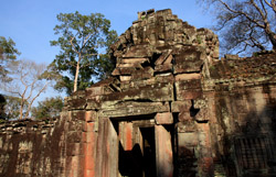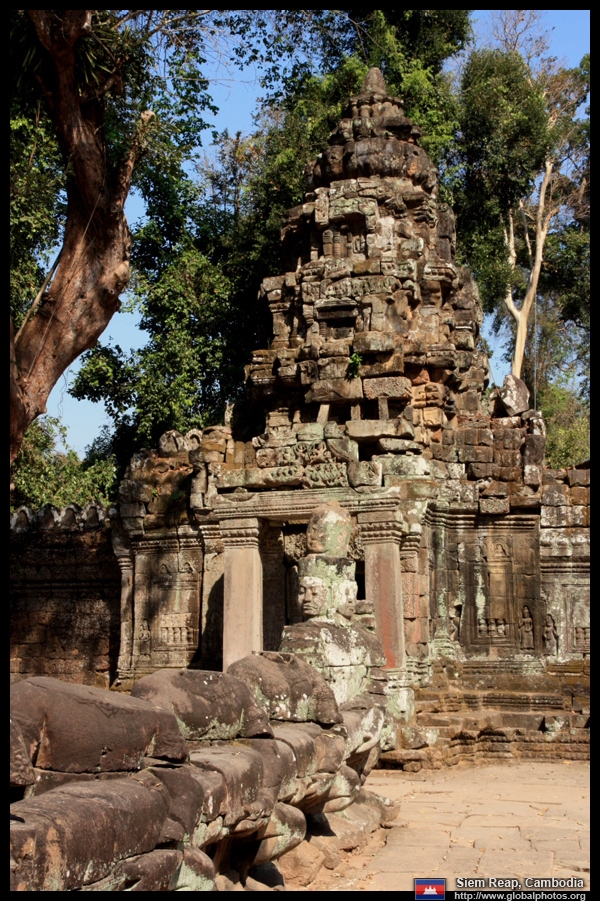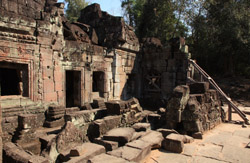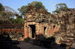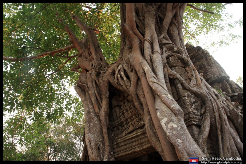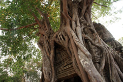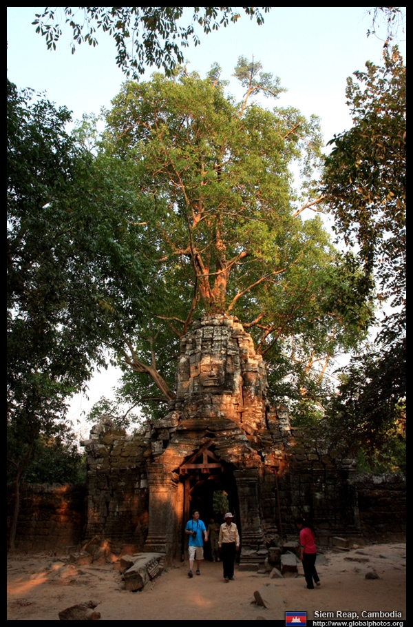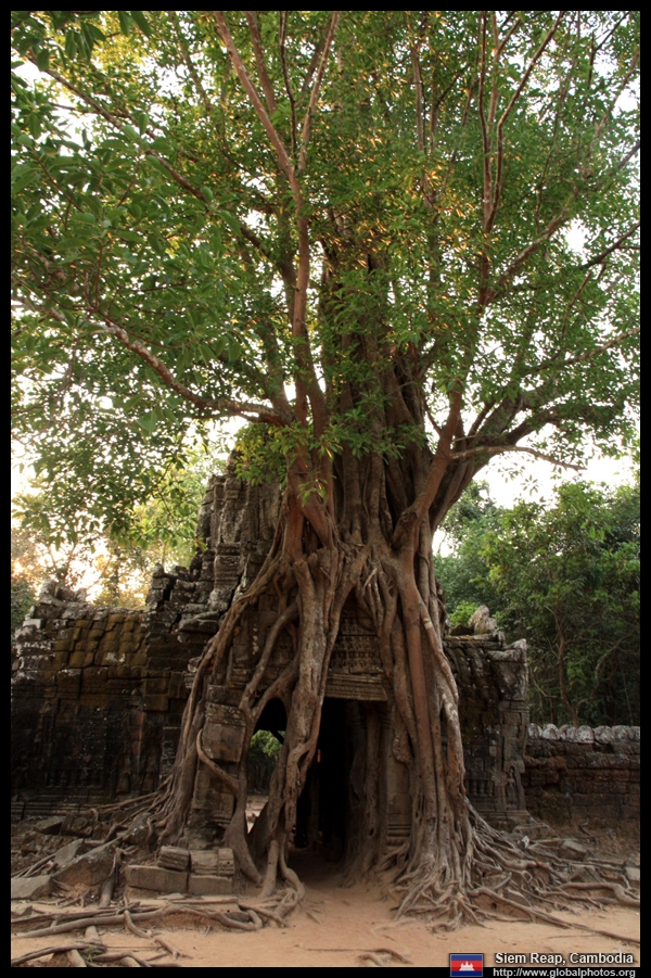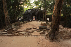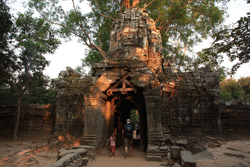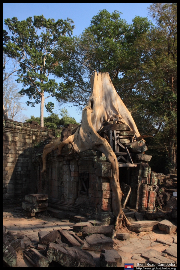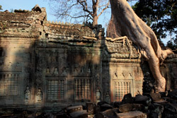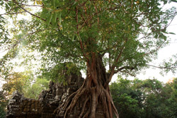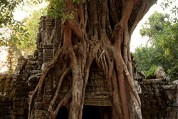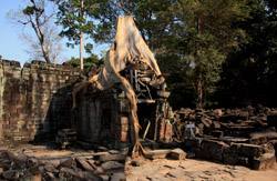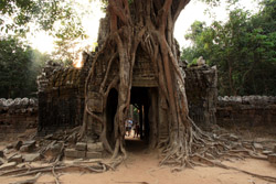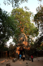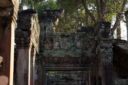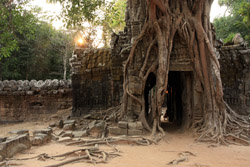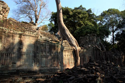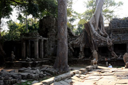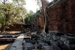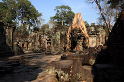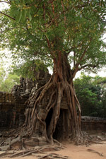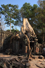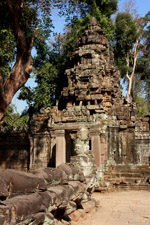 Ta Som - is a miniature version of Ta Prohm. With 3 concentric enclosures, the temple is famous for a tree that has enclosed one of the buildings.