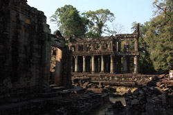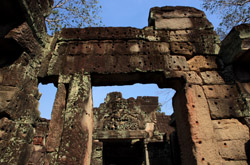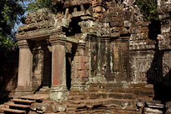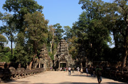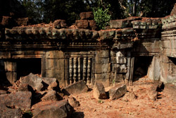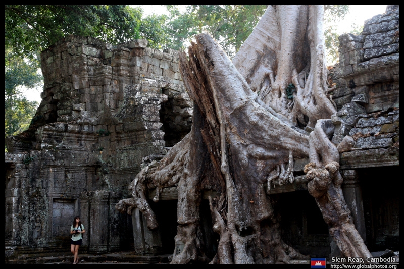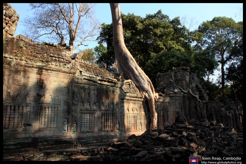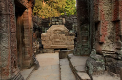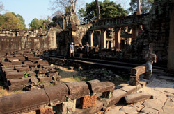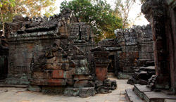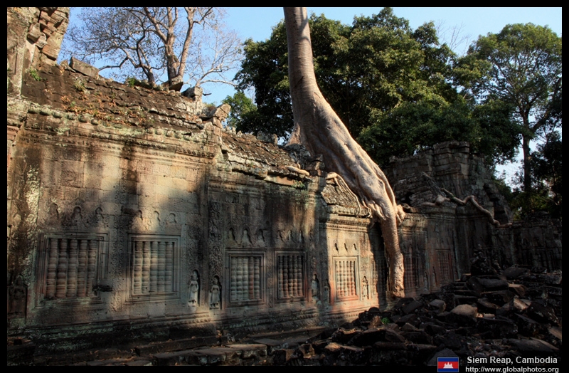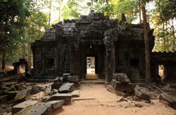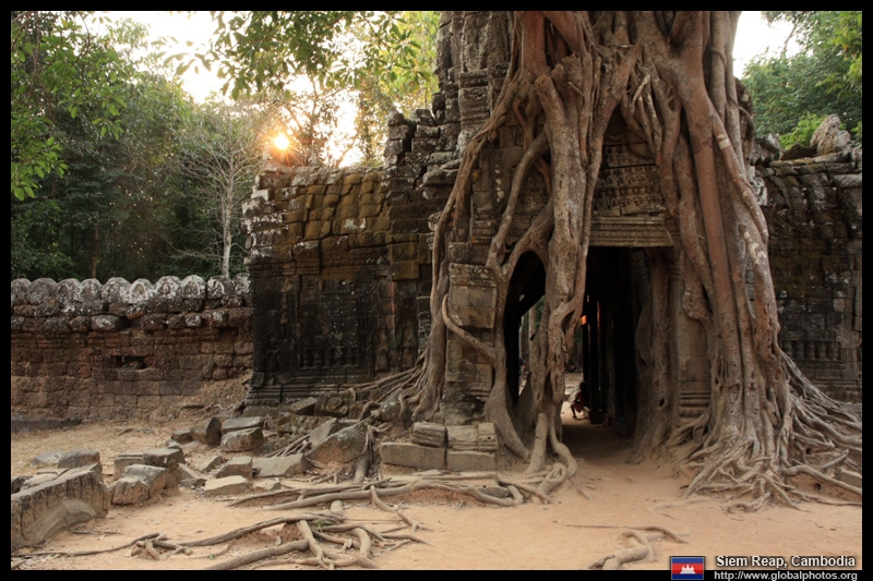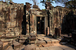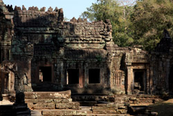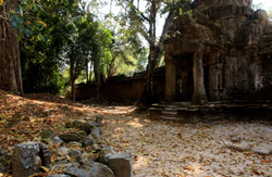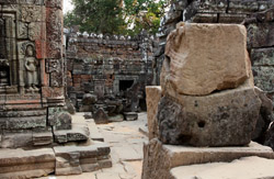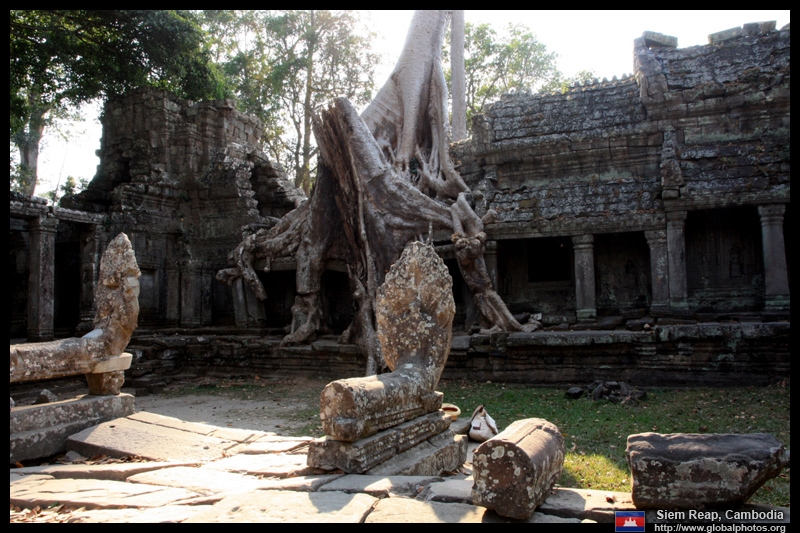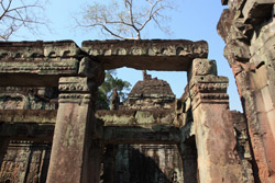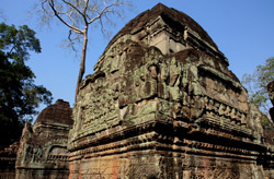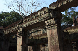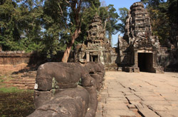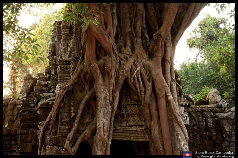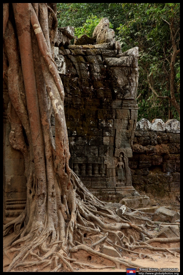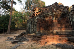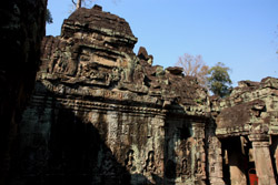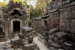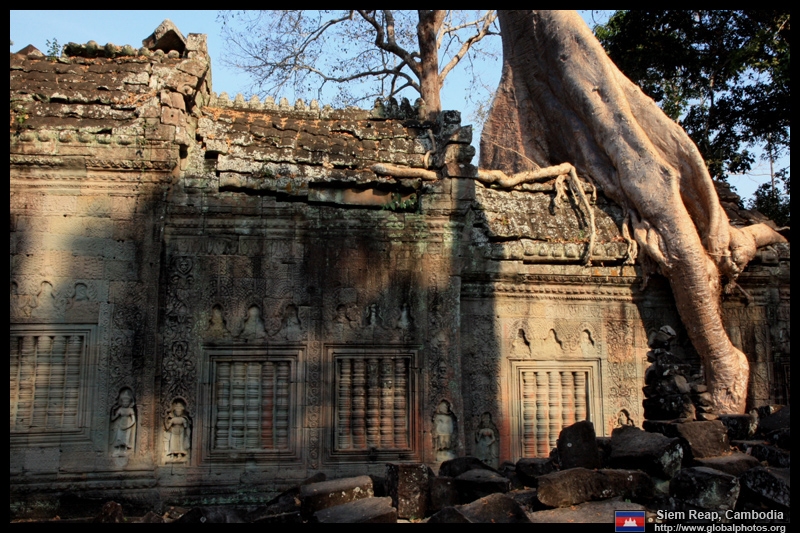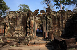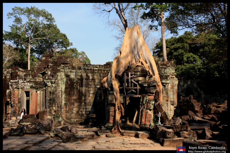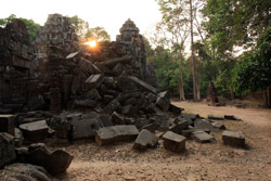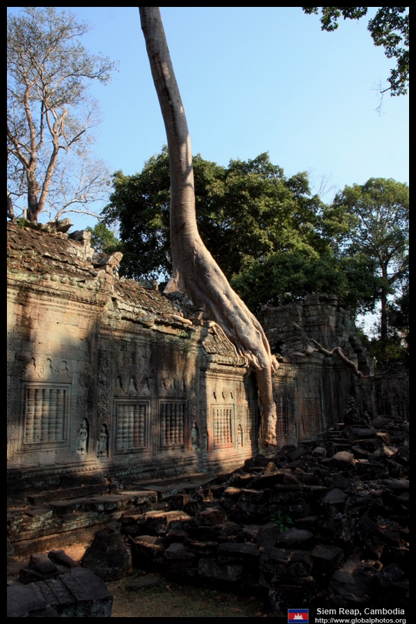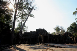 Ta Som - is a miniature version of Ta Prohm. With 3 concentric enclosures, the temple is famous for a tree that has enclosed one of the buildings.