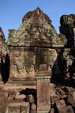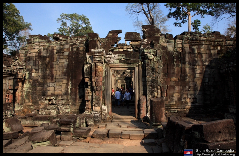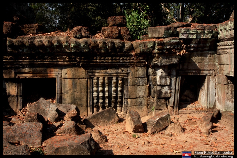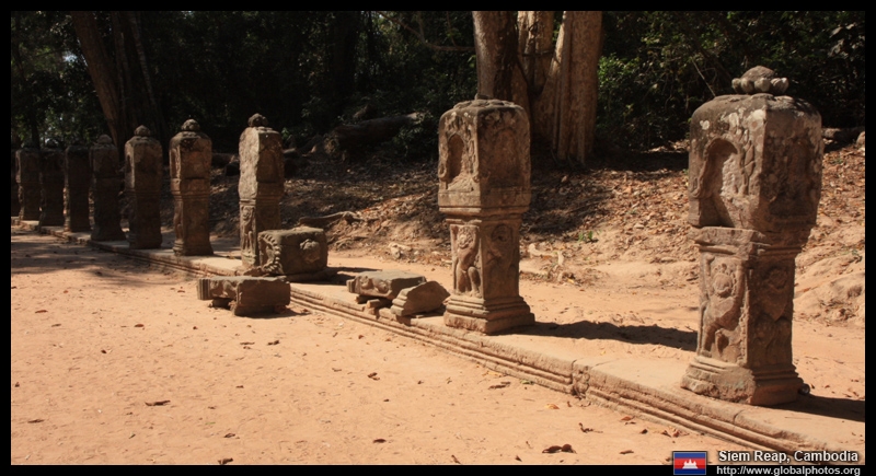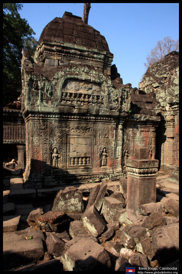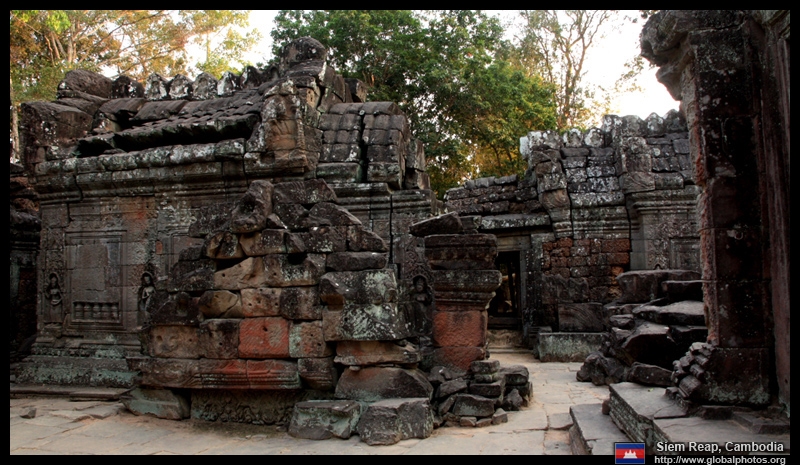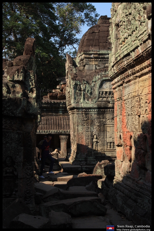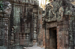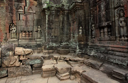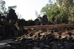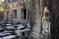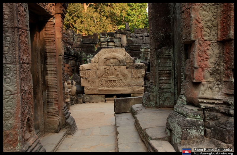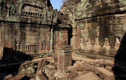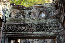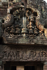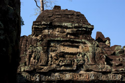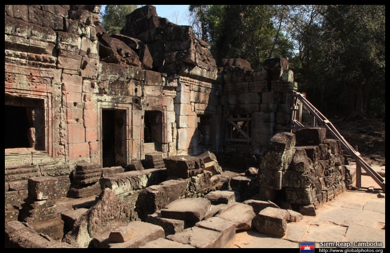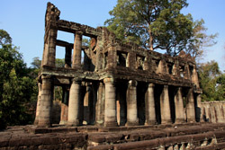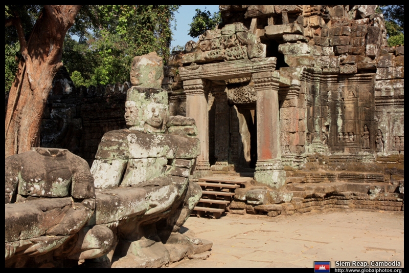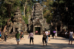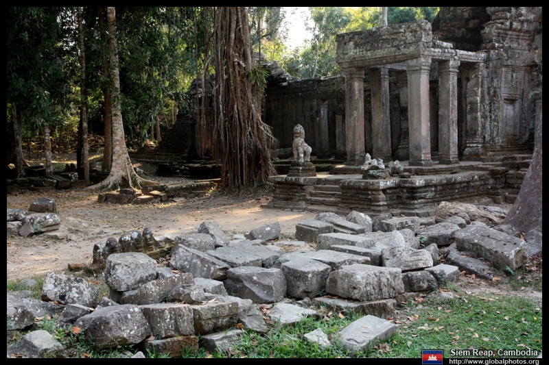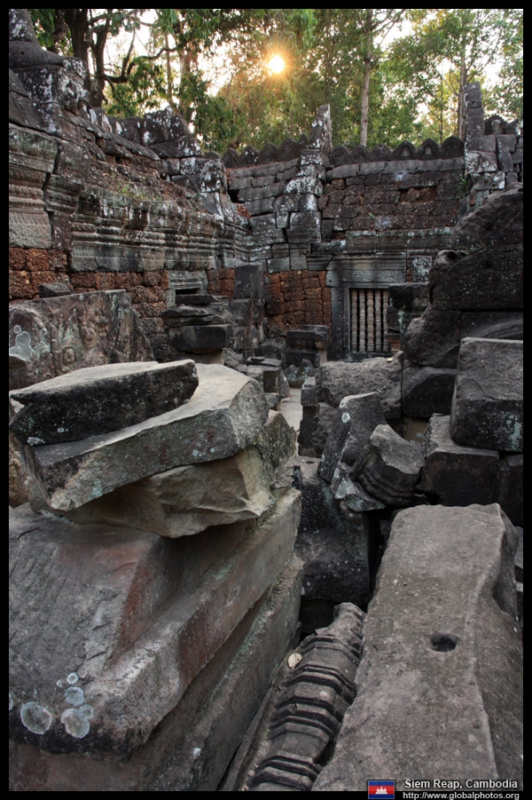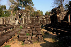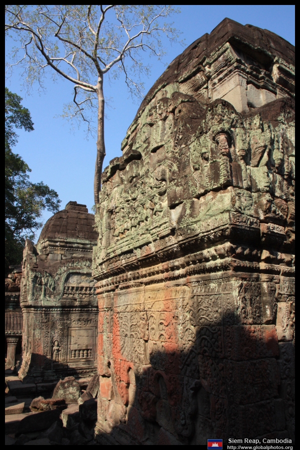 Ta Som - is a miniature version of Ta Prohm. With 3 concentric enclosures, the temple is famous for a tree that has enclosed one of the buildings.