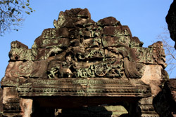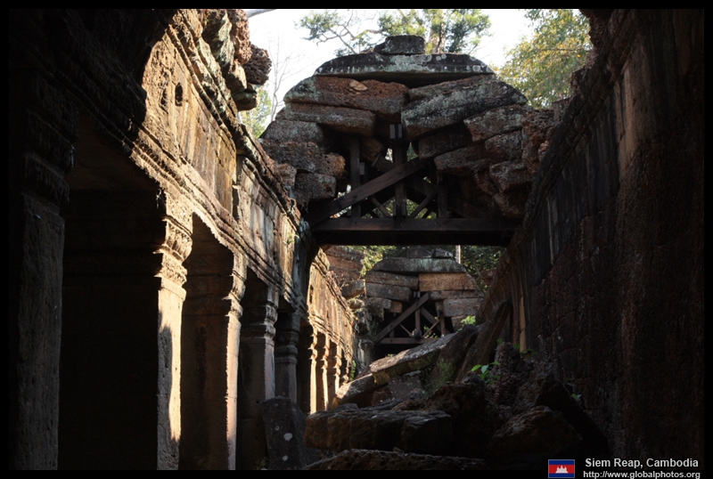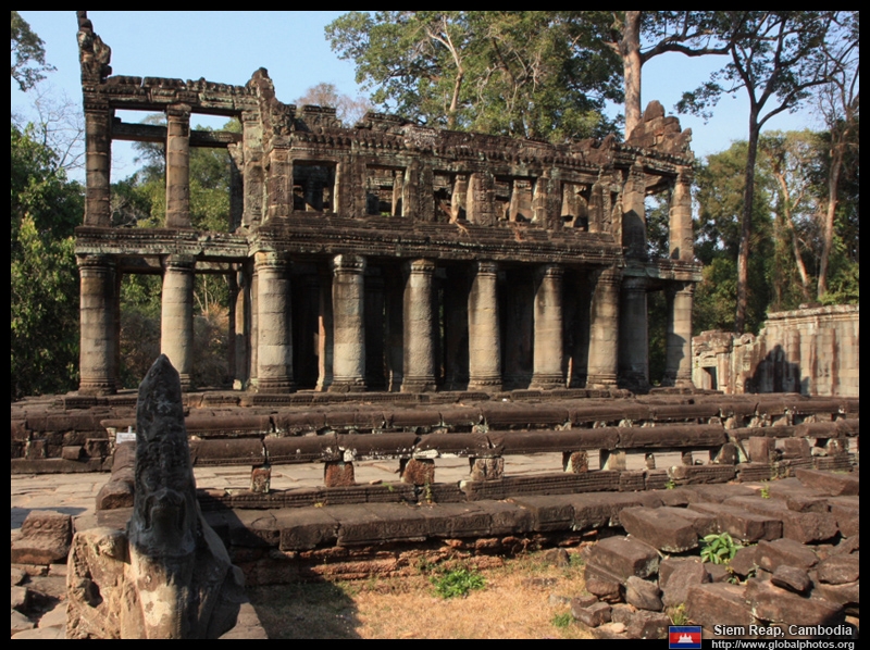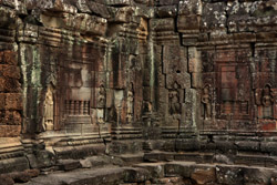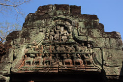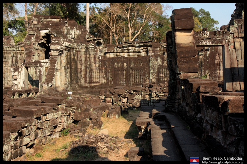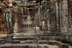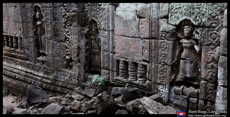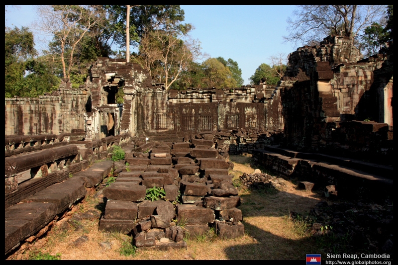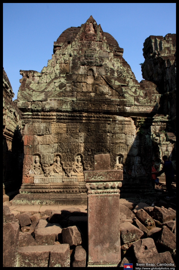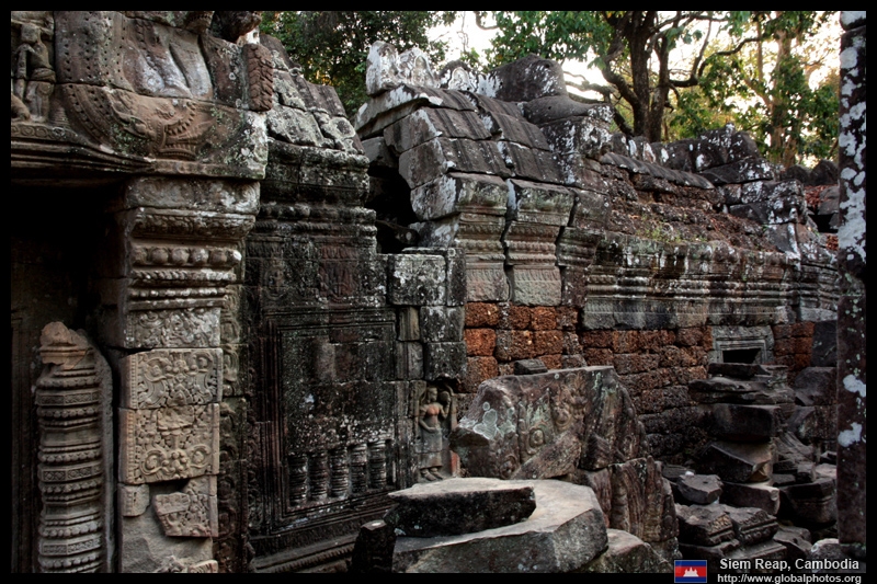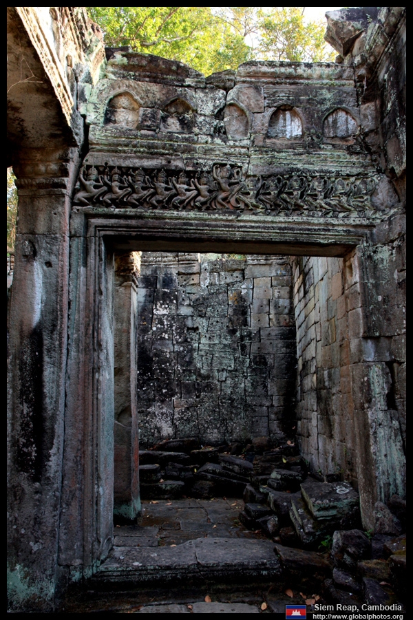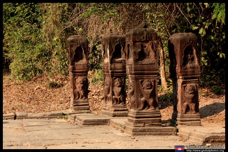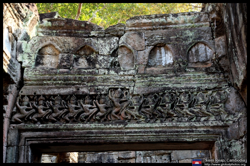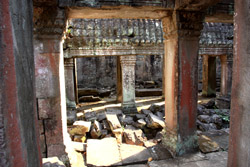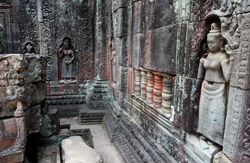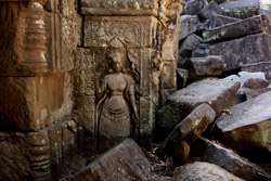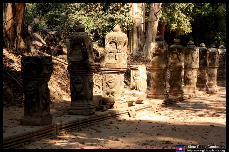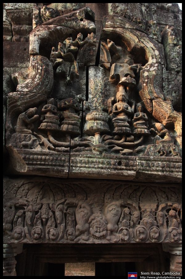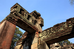 Ta Som - is a miniature version of Ta Prohm. With 3 concentric enclosures, the temple is famous for a tree that has enclosed one of the buildings.