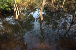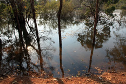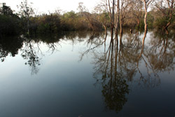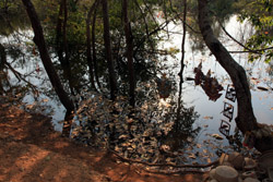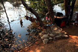 Dating from the late 12th century, the tower is set on a circular island in a pond. It is believed to symbolize a sacred Himalayan lake that had healing properties.