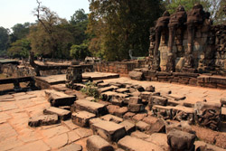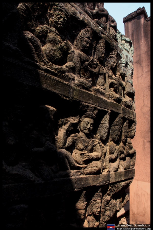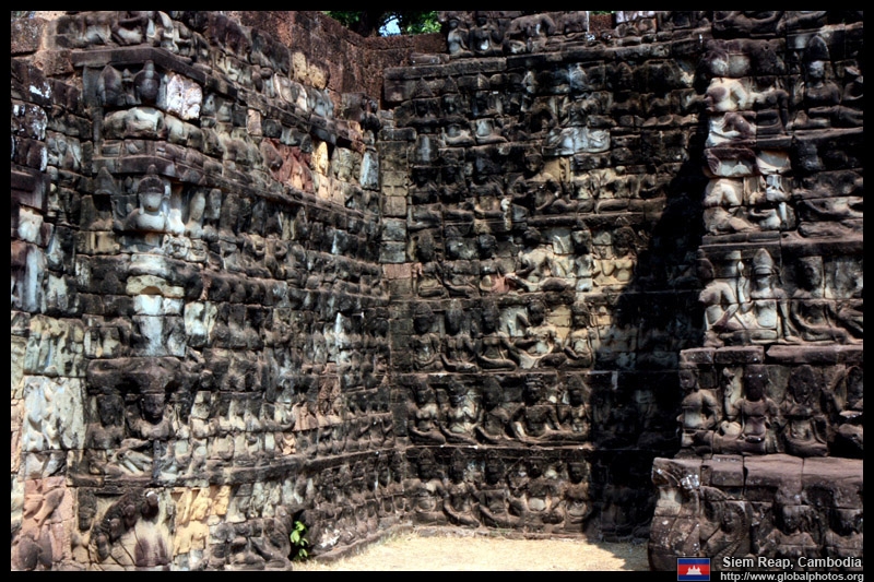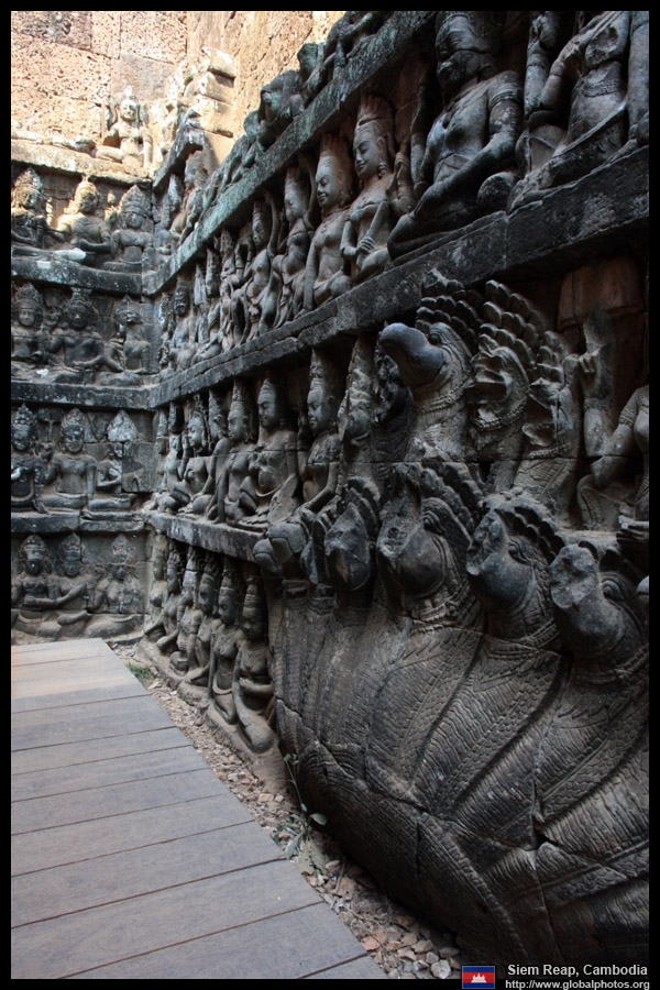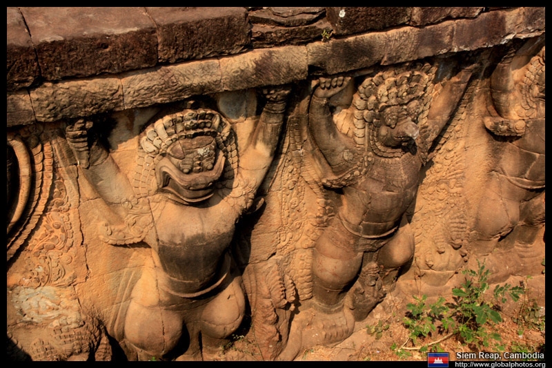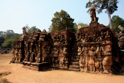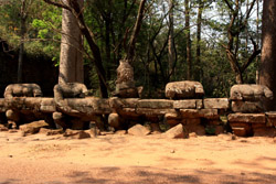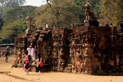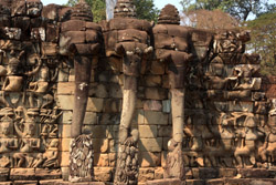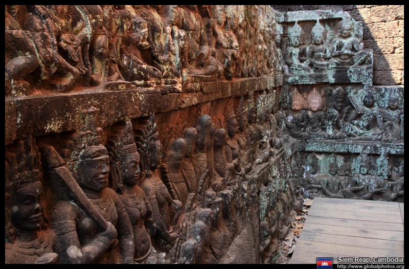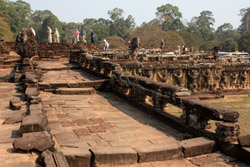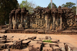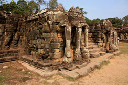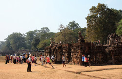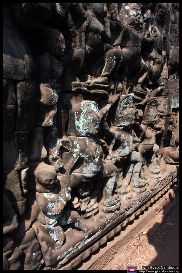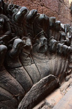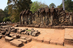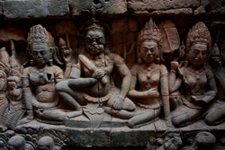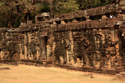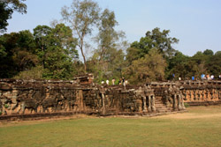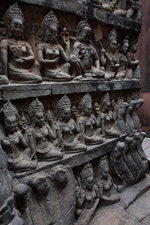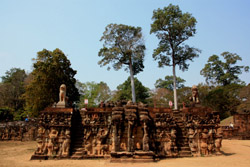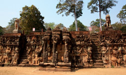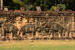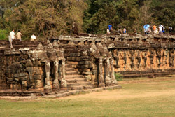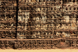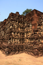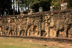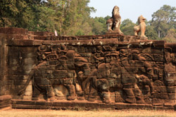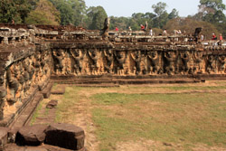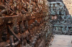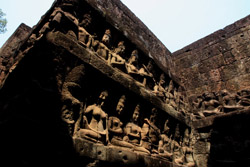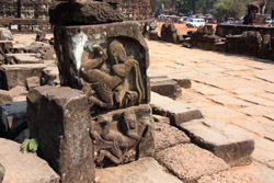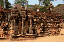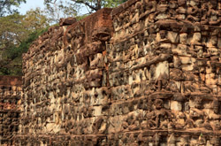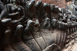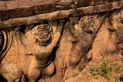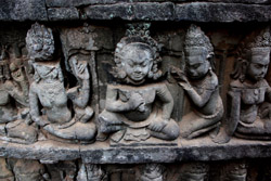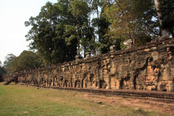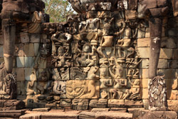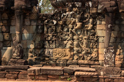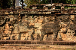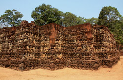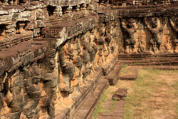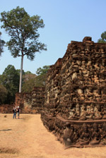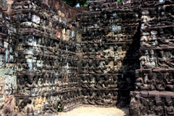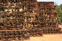 The Leper King Terrace is carved with many mythological scenes. Some of these are hidden so you need to access the trench via a narrow entrance