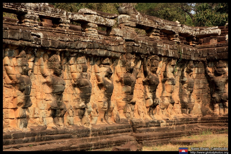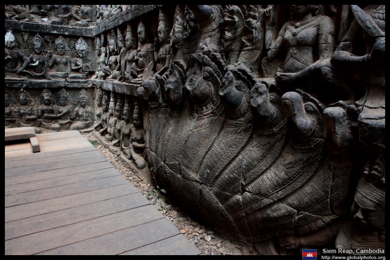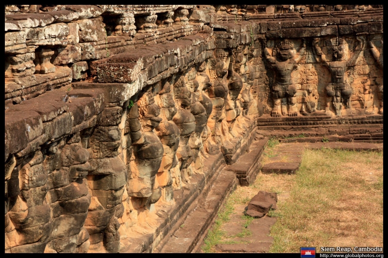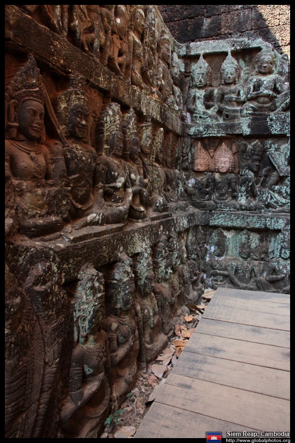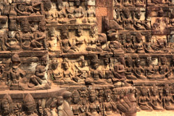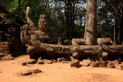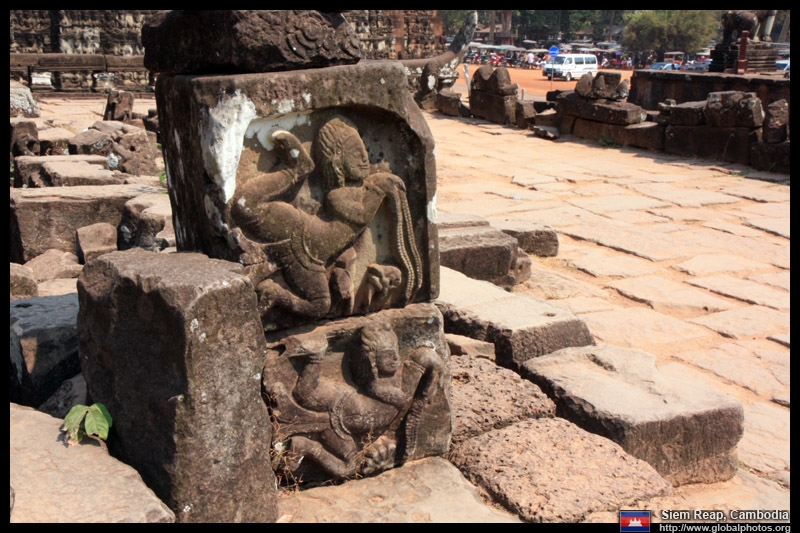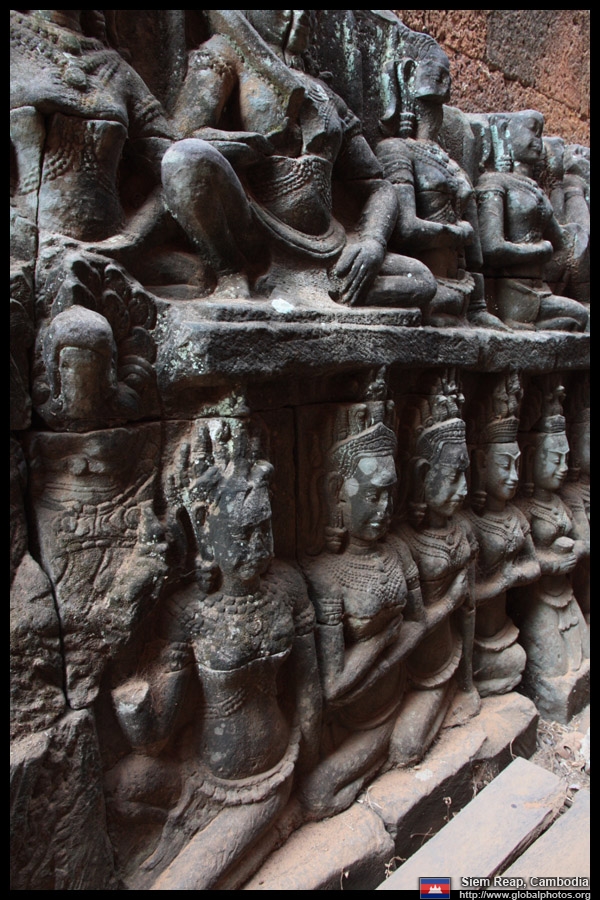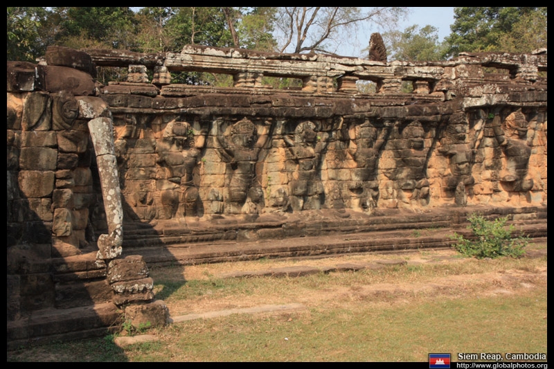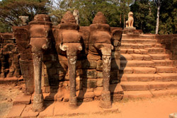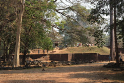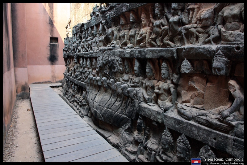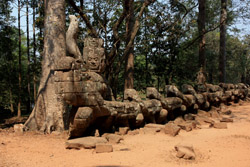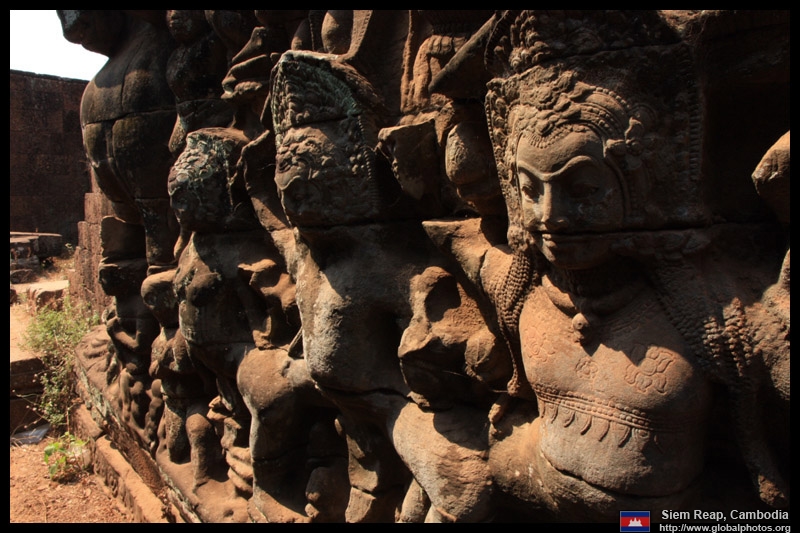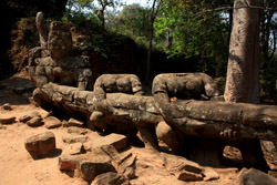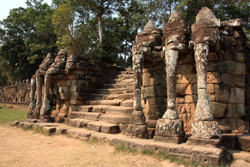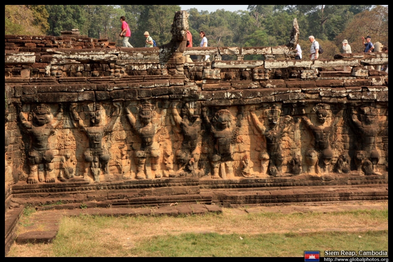 The Leper King Terrace is carved with many mythological scenes. Some of these are hidden so you need to access the trench via a narrow entrance