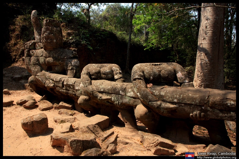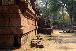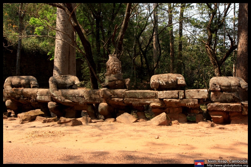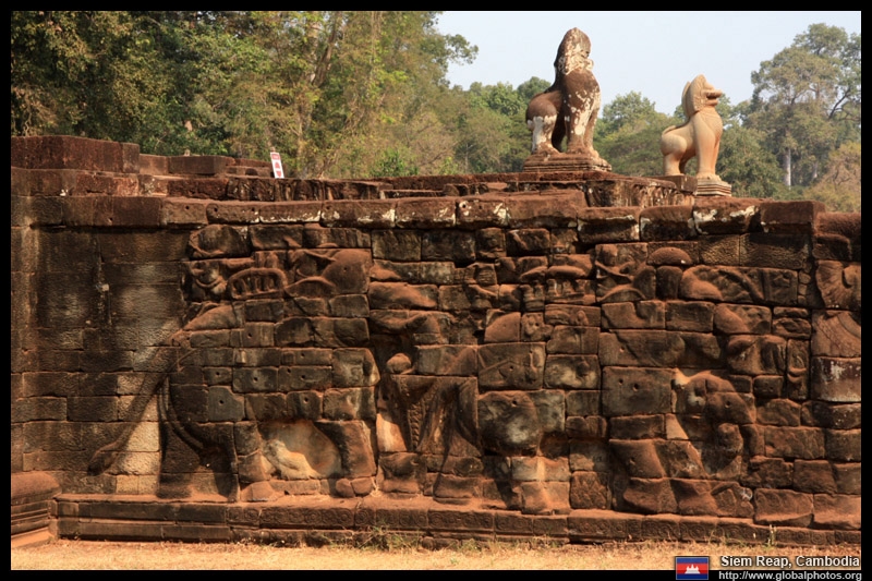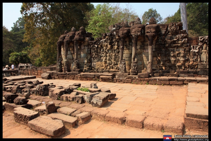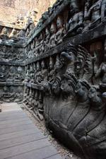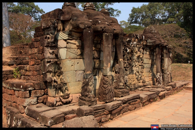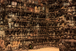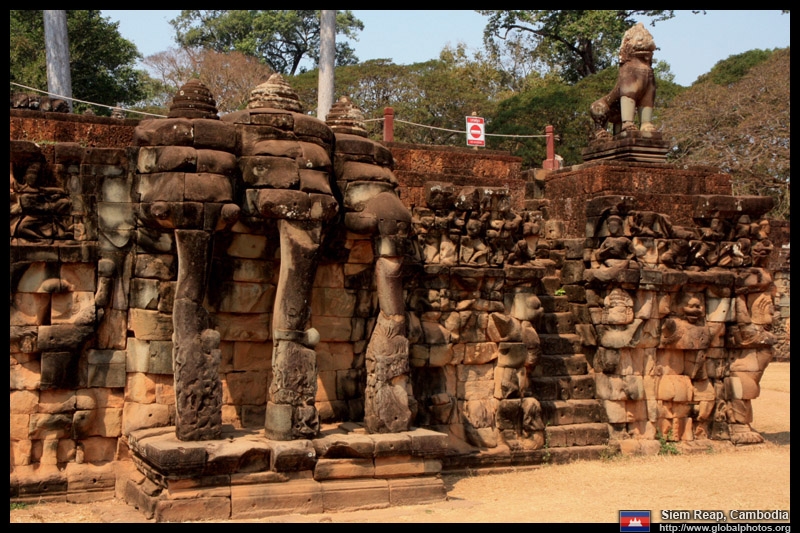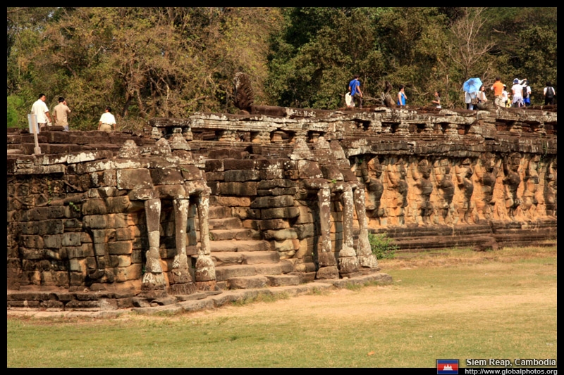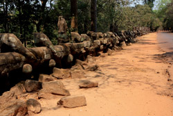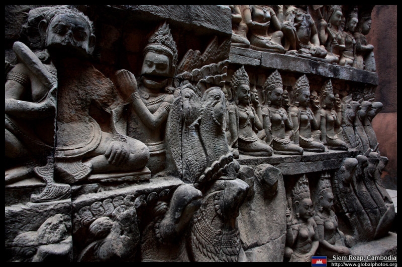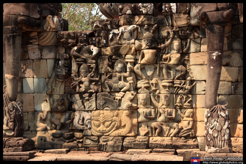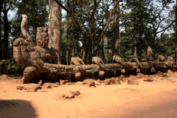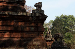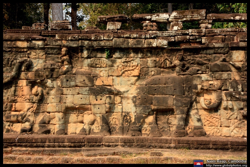 The Leper King Terrace is carved with many mythological scenes. Some of these are hidden so you need to access the trench via a narrow entrance