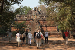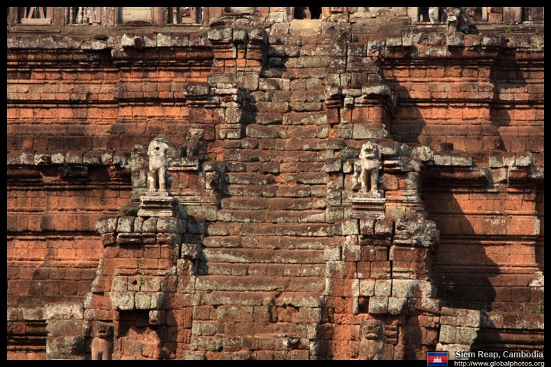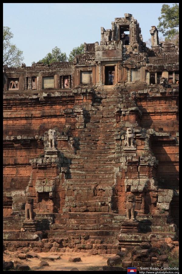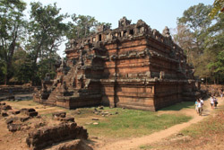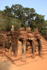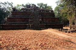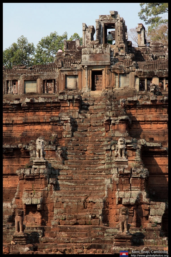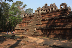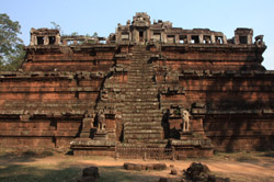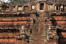 An entrance from the Elephant Terrace leads to the Phimeanakas, or the royal palace. Dating from as early as the late 10th century, the pyramid structure rises 3 levels of 12m each.
