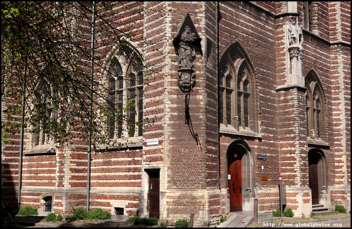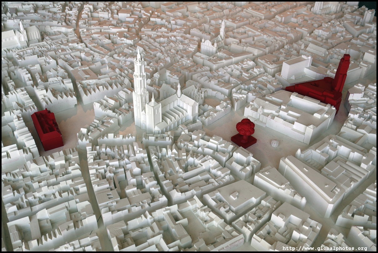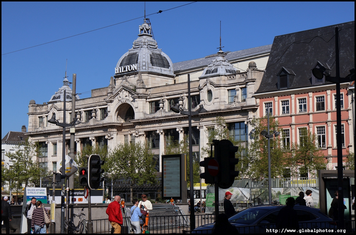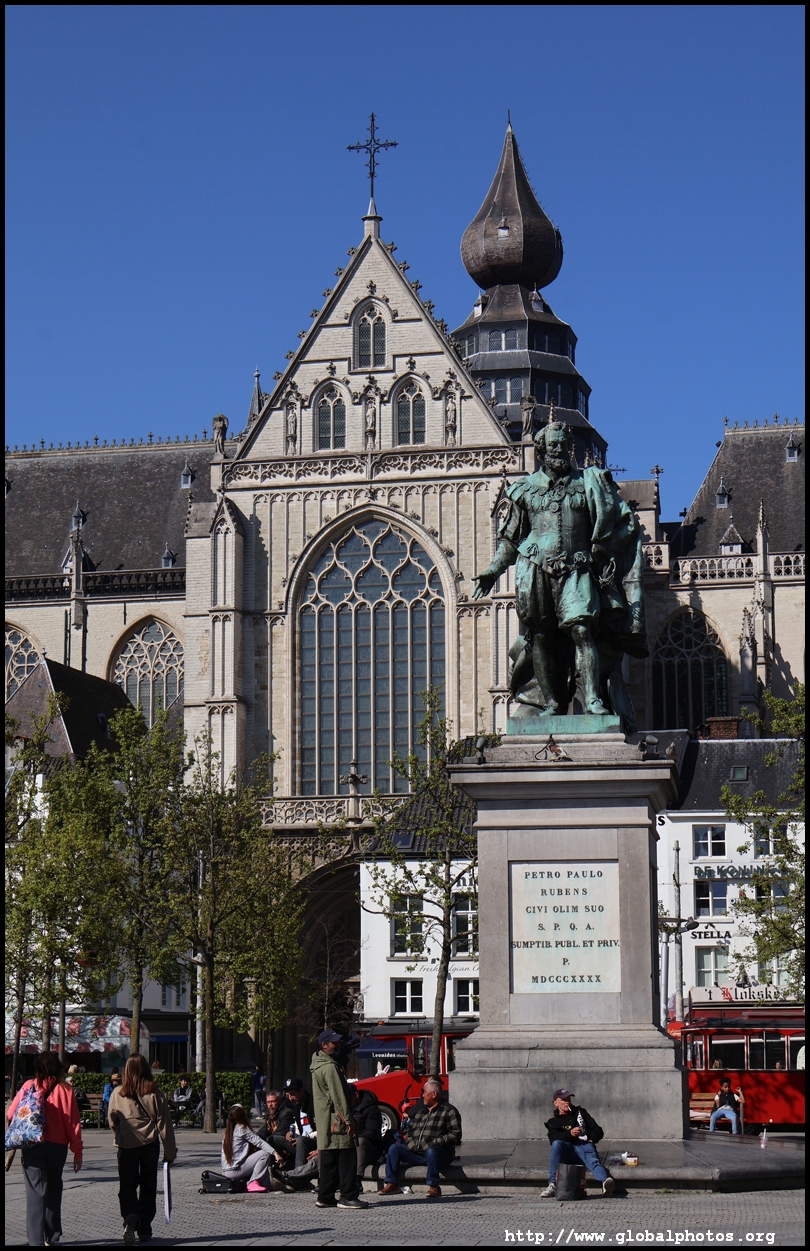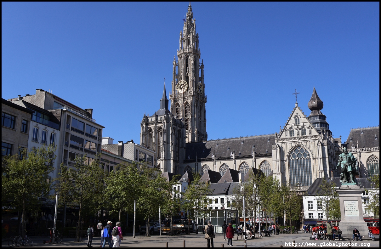 To the south of the cathedral is Groenplaats, a public space with a parking lot underneath that replaced a graveyard.