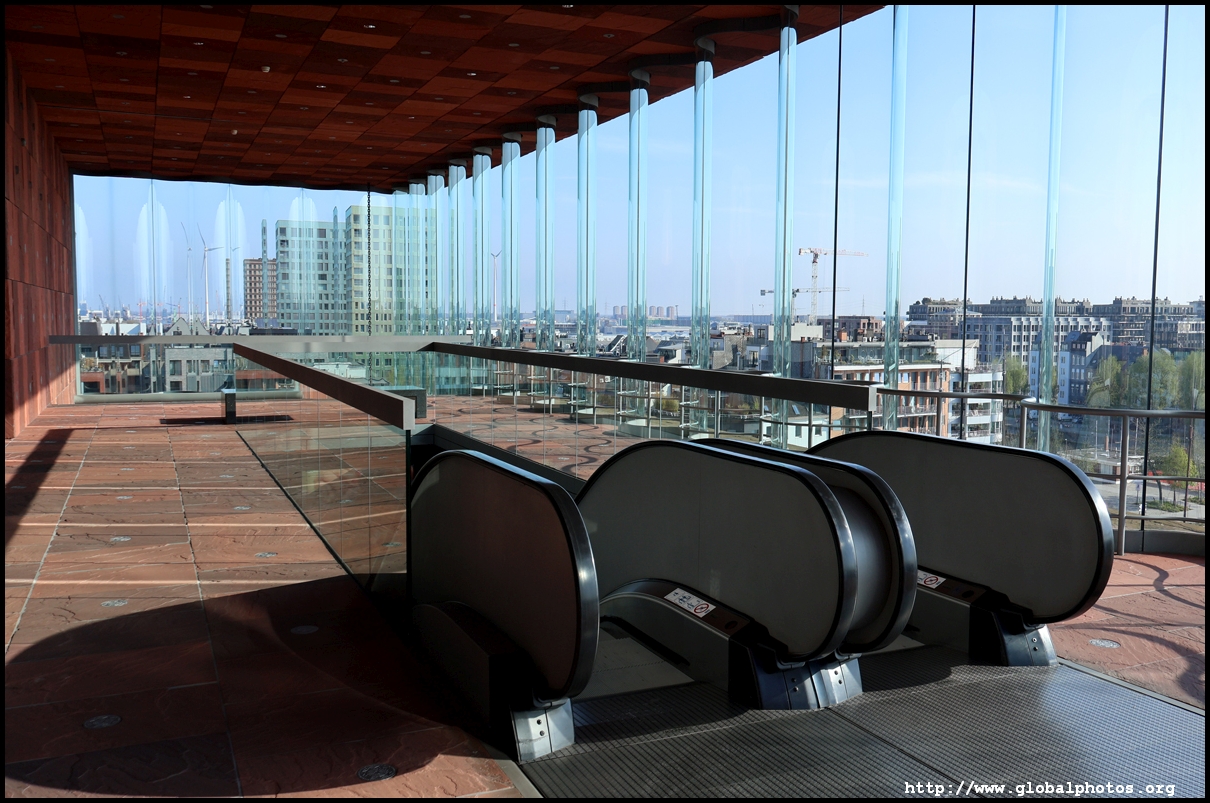 Having arrived first thing in the morning just before the museum opened, there was nobody at the ticket counters so I headed straight up the escalators to the roof. There are plenty of windows and seats as I headed up and the views got progressively better.