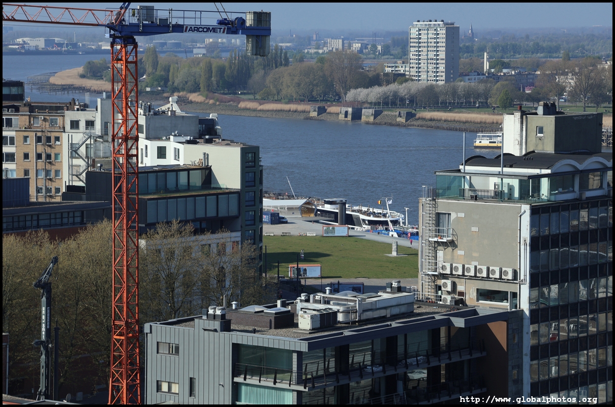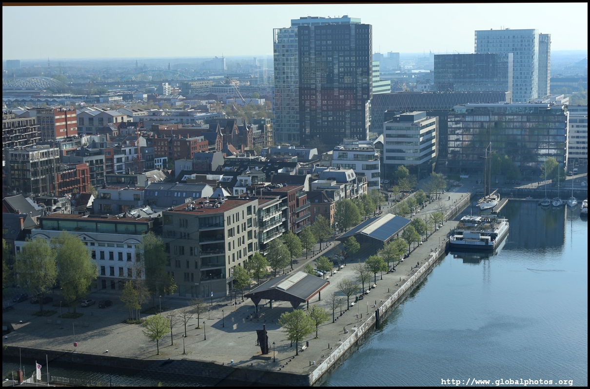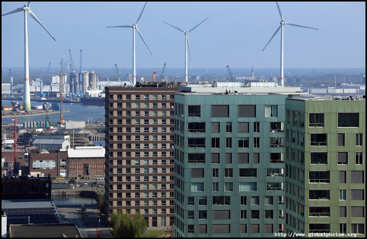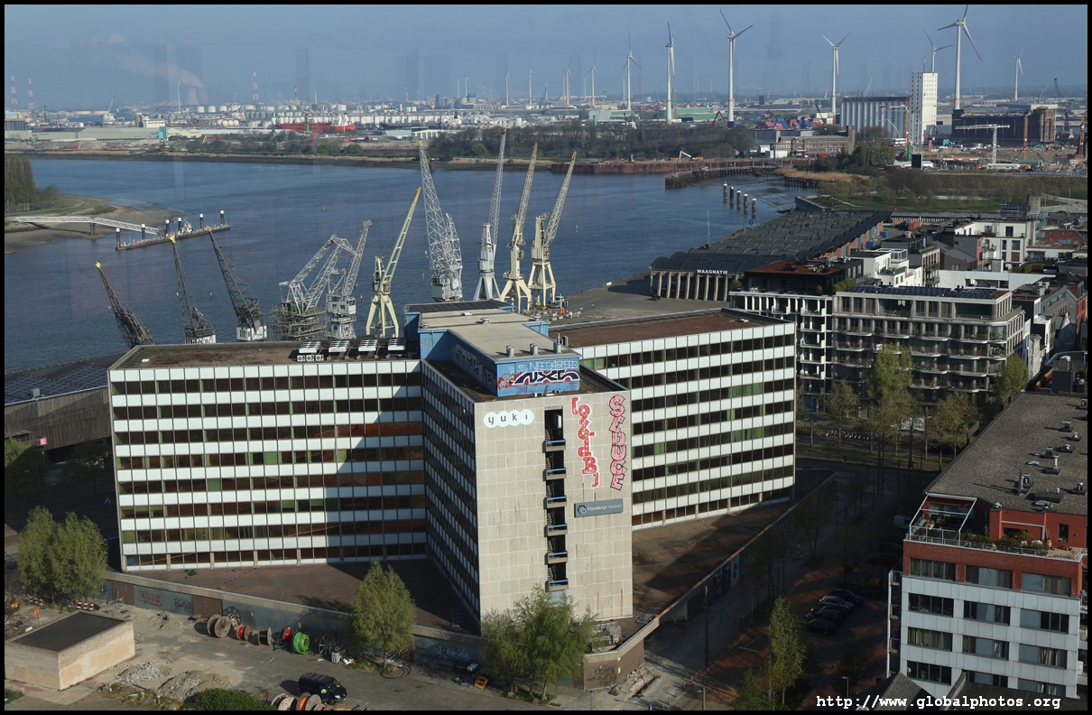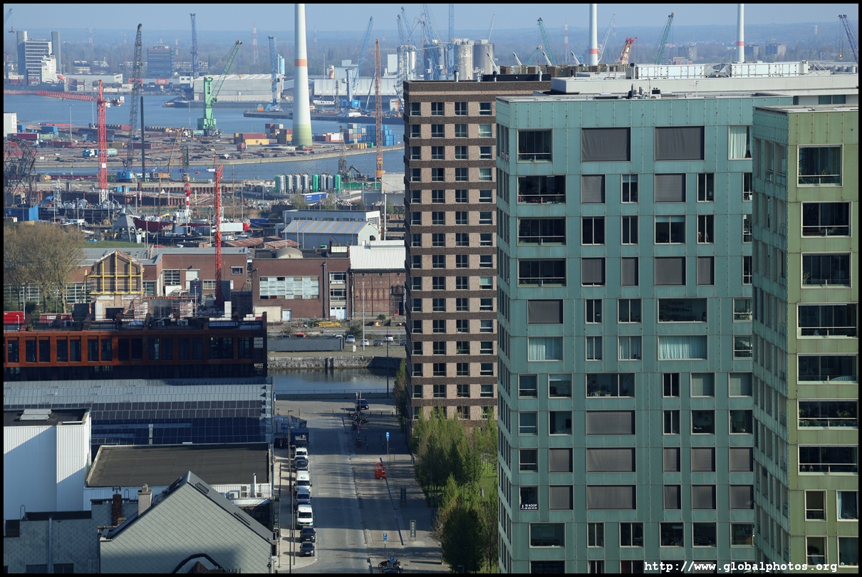 Het Eilandje now has a big residential community with the new port looming in the distance.