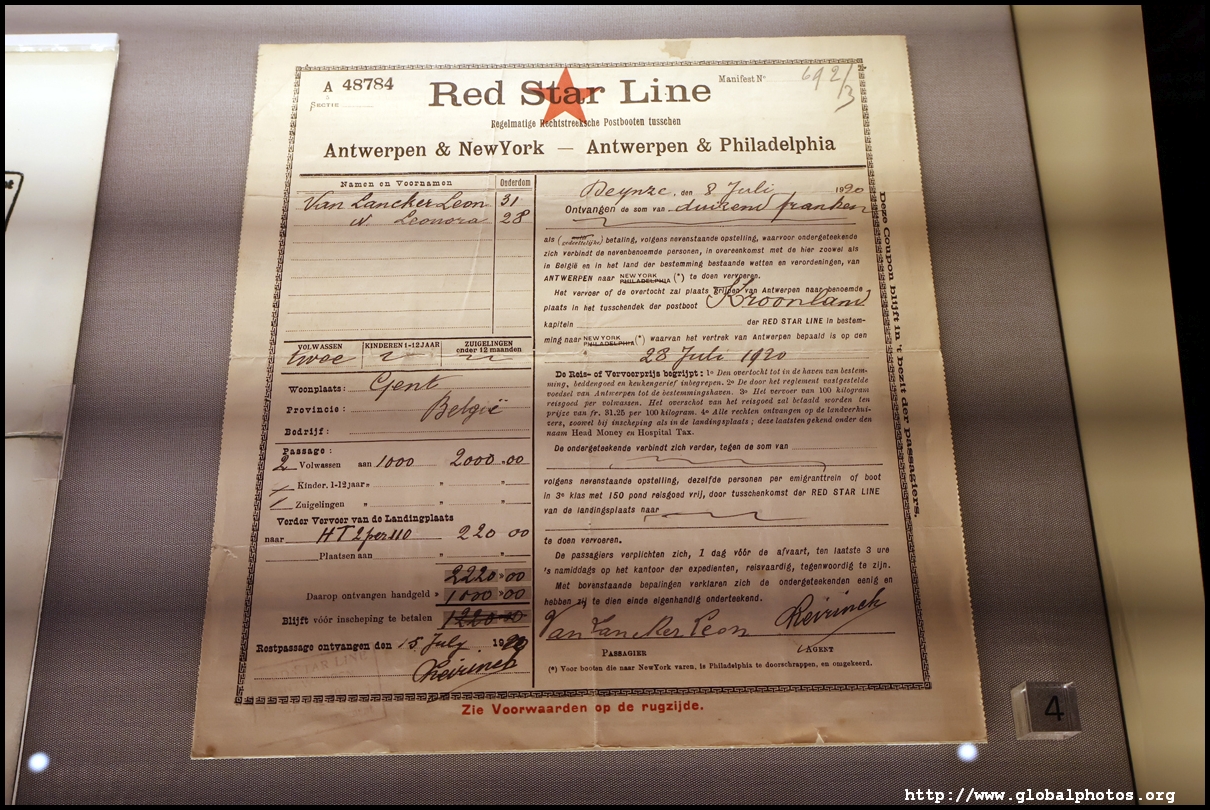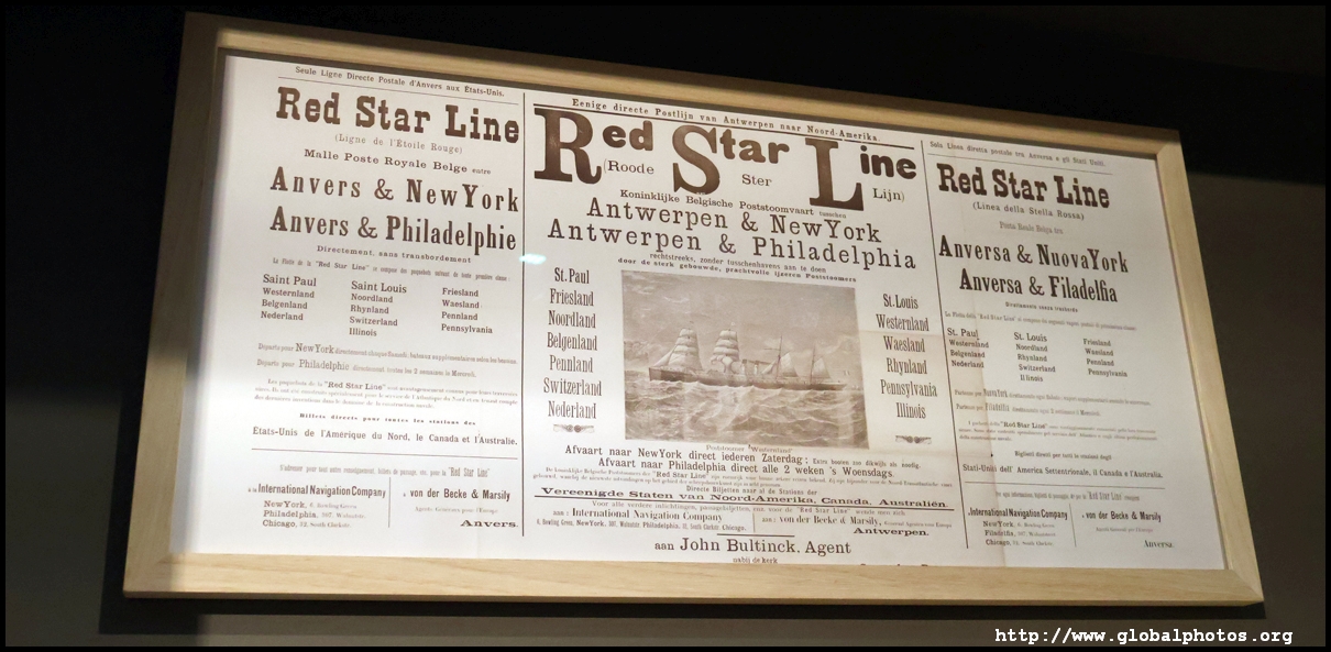 Sitting on Red Star Line's historic premises, a museum now showcases the company's history and how it transported 2 million Europeans longing for a better life in the Americas.The company was founded in 1872 with a business model of transporting cargo from the US to Europe and passengers on the return voyage. It was backed by the Pennsylvania Railroad Company, who saw the shipping industry as an extension of their railway network. The Red Star Line operated out of Antwerp's harbour area Eilandje with its ships moored along the Scheldt. The main wave of immigration took place from the 1870s up to the Great Depression, with each departing ship able to accomodate as many as 2500 passengers. Most of these people were not Belgian; Europeans from all over came to Antwerp for a trip across the Atlantic. Between 1815 and 1940, about 60 million people left Europe in search for a better life. Those who came through Antwerp were mainly destined for the US and originally lived in Germany and Eastern Europe and arrived by train. The Red Star Line operated to New York and Philadelphia. At the time, the US and Canada were booming, adding promise to a new life abroad.